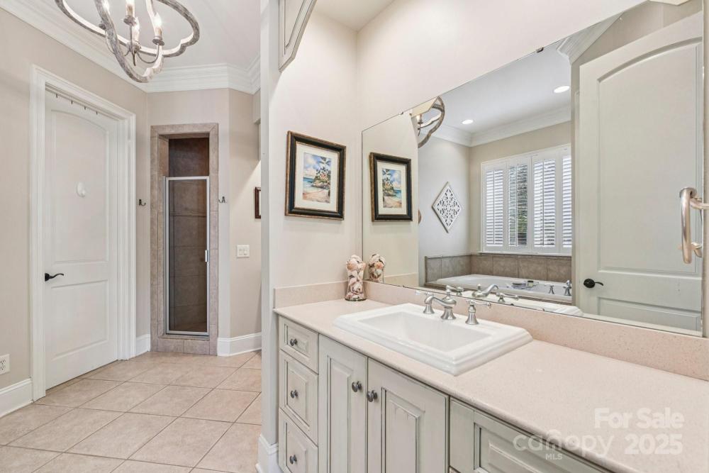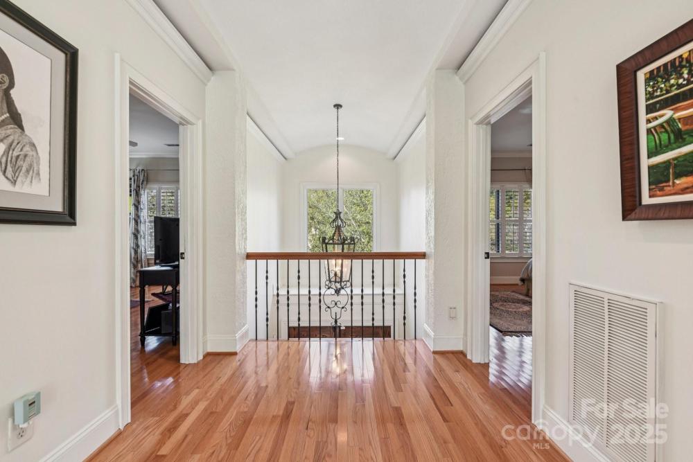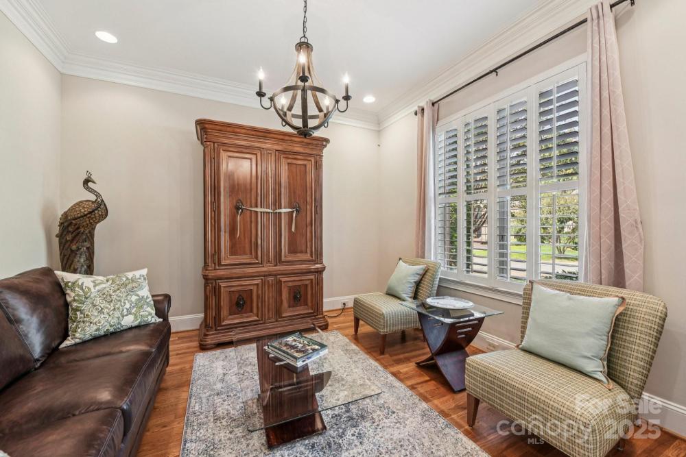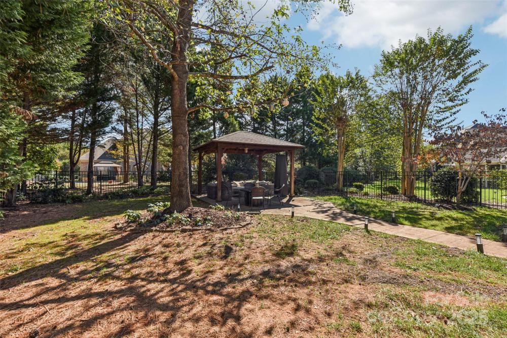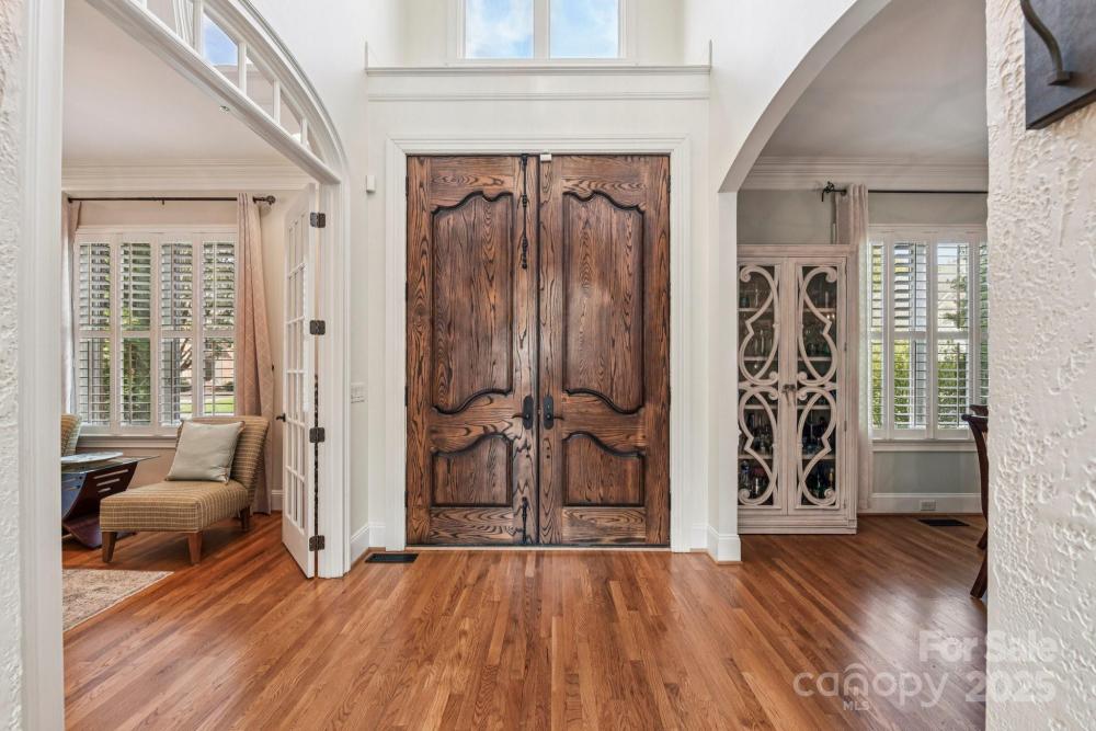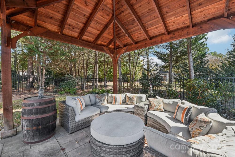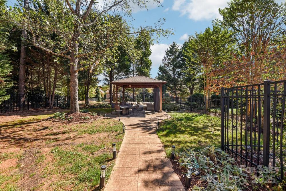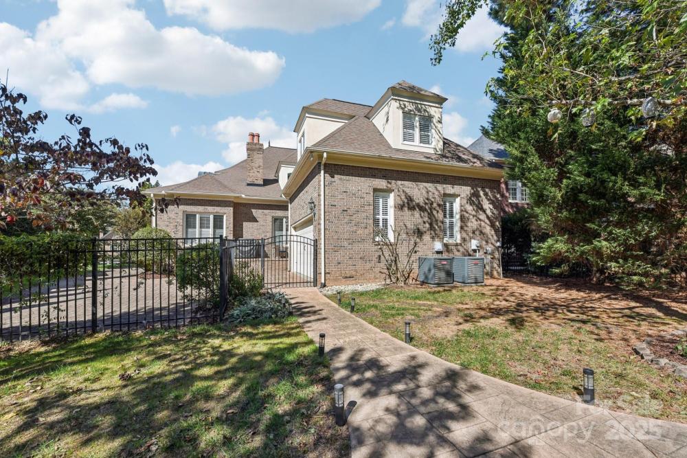 Exquisite European Custom Home Adjacent to Providence Country Club Welcome to this extraordinary European-inspired custom home in the coveted Vanderbilt neighborhood—just a short walk to Providence Country Club and minutes from Waverly, Rea Farms, and Blakeney. From the moment you arrive, the gas lanterns and hand-carved mahogany double doors set an unmistakable tone of elegance and craftsmanship. Step inside to discover detailed millwork, designer lighting, and architectural accents that define luxury throughout. The cozy dining room features built-in storage, while French doors lead to a flexible room that can serve as an office, wine room, or intimate sitting area. The grand two-story great room is filled with natural light from expansive windows and anchored by a gas fireplace flanked by custom built-ins. Graceful arched openings connect the great room to the gourmet kitchen and breakfast area, creating a warm and open flow perfect for entertaining or casual living. The kitchen features custom cabinetry, a stunning range hood, and high-end finishes designed for both function and beauty. The main-level primary suite offers serenity and style, highlighted by a dramatic tray ceiling with rope lighting. The spa-like ensuite bath includes dual vanities, a large jetted tub, separate shower, water closet, and spacious walk-in closet. Eight-foot doors and site-finished hardwood floors span the main level, complemented by a beautifully designed laundry room with custom built-ins and tile flooring. Ascending the staircase, you’ll find an open landing overlooking both the foyer and great room, filling the space with light and architectural presence. Two generous bedrooms on this level each offer ensuite baths, prefinished hardwood flooring, and walk-in closets. A secondary staircase leads to a versatile fourth bedroom or bonus suite complete with its own ensuite bath, pre-finished hardwood floors, and tile in the bath, plus a large walk-in storage area—ideal for guests, hobbies, or media use. Plantation shutters enhance both privacy and elegance. The backyard is an inviting outdoor retreat featuring a large gazebo—perfect for entertaining friends or enjoying quiet evenings at home. A fenced yard adds comfort and peace of mind. Recent updates reflect pride of ownership and thoughtful maintenance: two new compressors (2019), water heater (2025), plantation shutters (2019), dining room built-ins (2021), custom laundry cabinetry (2021), refinished downstairs hardwoods (2025), upstairs hardwoods added (2019), kitchen refrigerator (2020), and crawl space vent coverings (2019). Exterior details include decorative synthetic stucco accents applied over brick, enhancing the home’s European aesthetic and timeless curb appeal. This exceptional home combines architectural beauty, quality craftsmanship, and modern updates in one of South Charlotte’s most desirable locations—steps from Providence Country Club, dining, and shopping, yet nestled in an intimate, distinguished community.