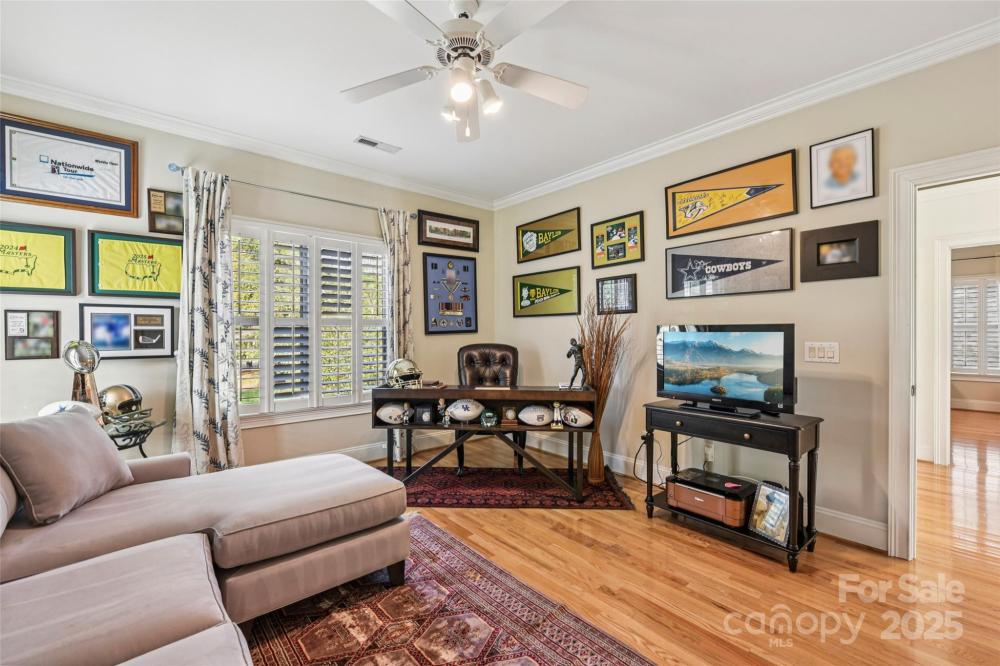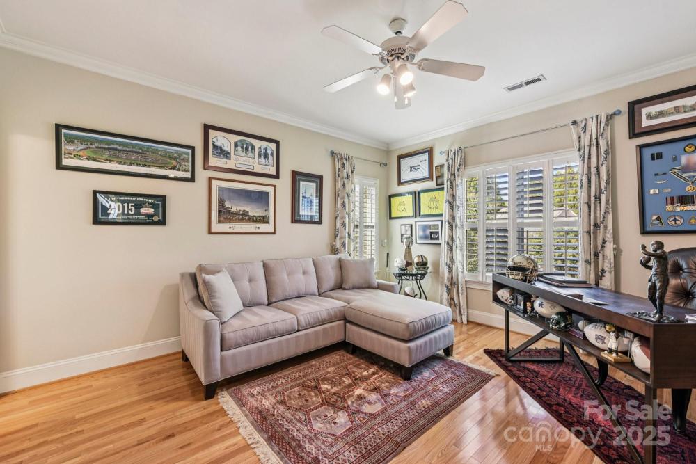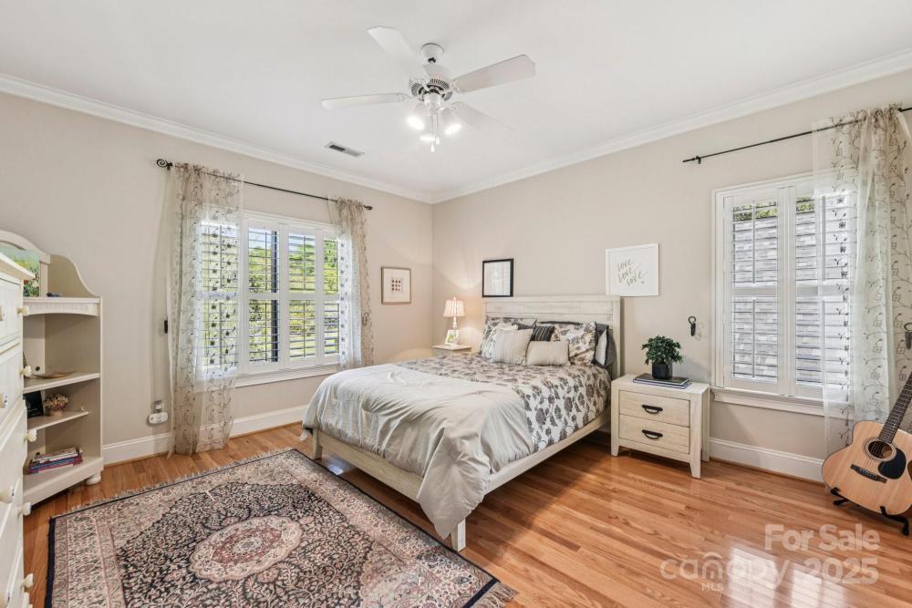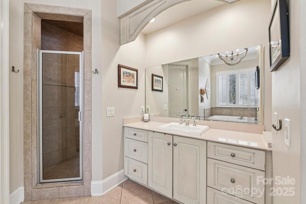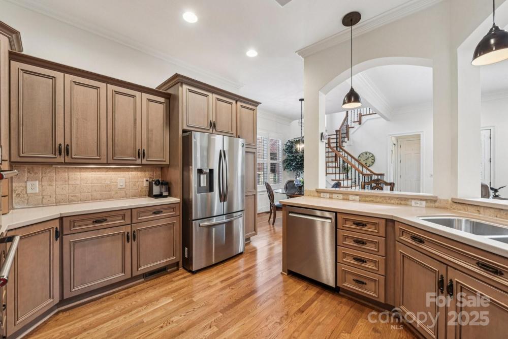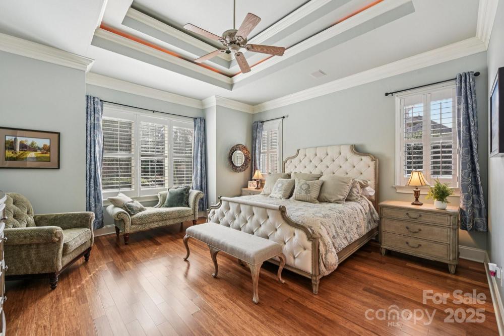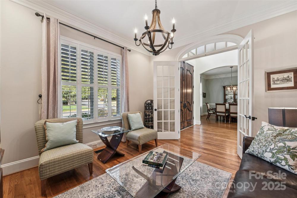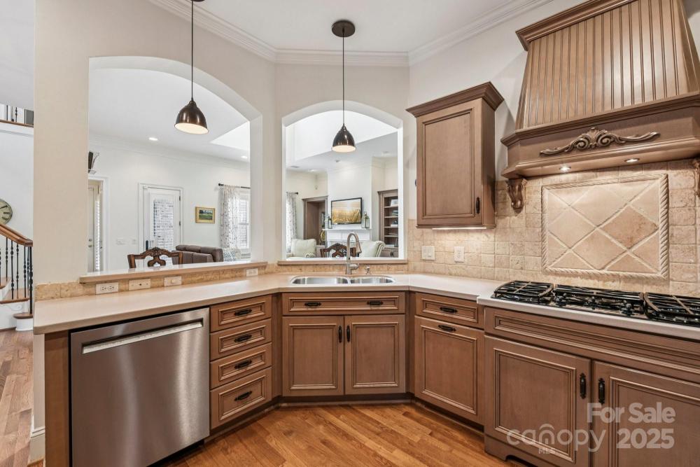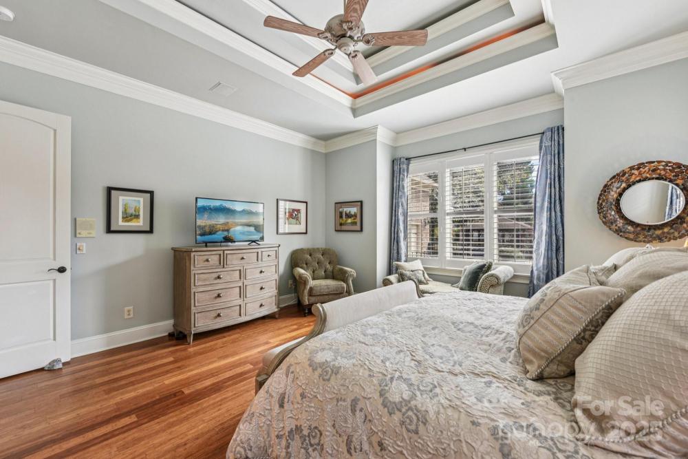 Exquisite European Custom Home Adjacent to Providence Country Club Welcome to this extraordinary European-inspired custom home in the coveted Vanderbilt neighborhood—just a short walk to Providence Country Club and minutes from Waverly, Rea Farms, and Blakeney. From the moment you arrive, the gas lanterns and hand-carved mahogany double doors set an unmistakable tone of elegance and craftsmanship. Step inside to discover detailed millwork, designer lighting, and architectural accents that define luxury throughout. The cozy dining room features built-in storage, while French doors lead to a flexible room that can serve as an office, wine room, or intimate sitting area. The grand two-story great room is filled with natural light from expansive windows and anchored by a gas fireplace flanked by custom built-ins. Graceful arched openings connect the great room to the gourmet kitchen and breakfast area, creating a warm and open flow perfect for entertaining or casual living. The kitchen features custom cabinetry, a stunning range hood, and high-end finishes designed for both function and beauty. The main-level primary suite offers serenity and style, highlighted by a dramatic tray ceiling with rope lighting. The spa-like ensuite bath includes dual vanities, a large jetted tub, separate shower, water closet, and spacious walk-in closet. Eight-foot doors and site-finished hardwood floors span the main level, complemented by a beautifully designed laundry room with custom built-ins and tile flooring. Ascending the staircase, you’ll find an open landing overlooking both the foyer and great room, filling the space with light and architectural presence. Two generous bedrooms on this level each offer ensuite baths, prefinished hardwood flooring, and walk-in closets. A secondary staircase leads to a versatile fourth bedroom or bonus suite complete with its own ensuite bath, pre-finished hardwood floors, and tile in the bath, plus a large walk-in storage area—ideal for guests, hobbies, or media use. Plantation shutters enhance both privacy and elegance. The backyard is an inviting outdoor retreat featuring a large gazebo—perfect for entertaining friends or enjoying quiet evenings at home. A fenced yard adds comfort and peace of mind. Recent updates reflect pride of ownership and thoughtful maintenance: two new compressors (2019), water heater (2025), plantation shutters (2019), dining room built-ins (2021), custom laundry cabinetry (2021), refinished downstairs hardwoods (2025), upstairs hardwoods added (2019), kitchen refrigerator (2020), and crawl space vent coverings (2019). Exterior details include decorative synthetic stucco accents applied over brick, enhancing the home’s European aesthetic and timeless curb appeal. This exceptional home combines architectural beauty, quality craftsmanship, and modern updates in one of South Charlotte’s most desirable locations—steps from Providence Country Club, dining, and shopping, yet nestled in an intimate, distinguished community.