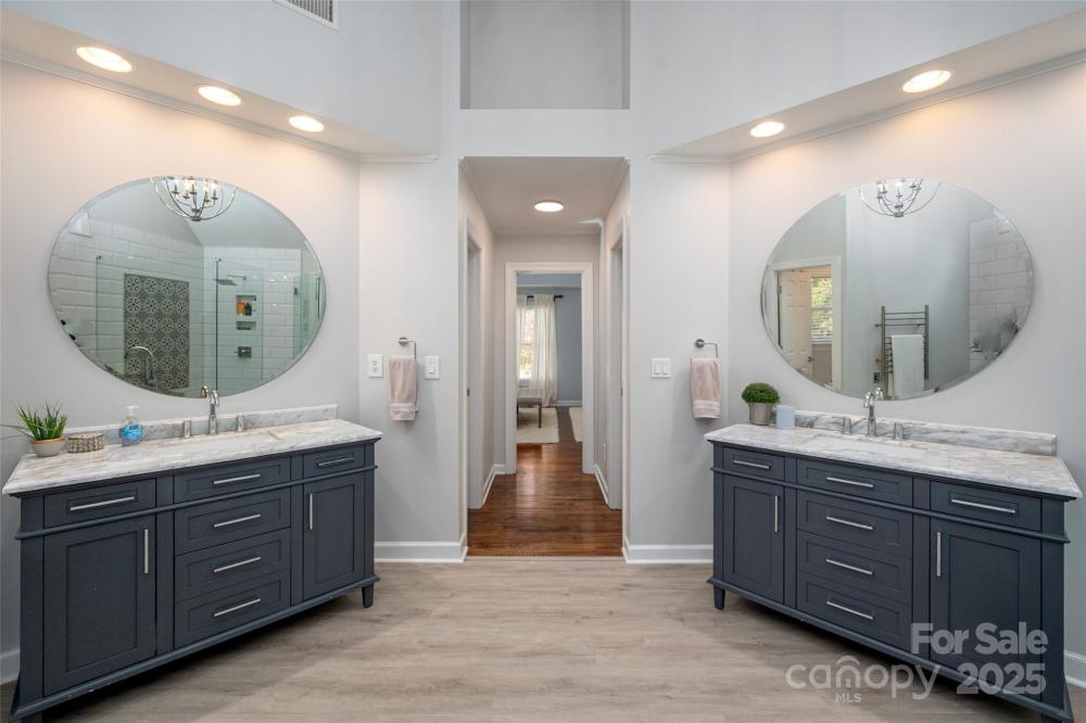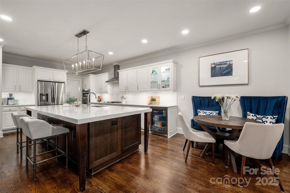 Welcome to this stunning home in the highly desirable Bridgehampton neighborhood! This beautifully updated residence offers an ideal blend of luxury, comfort, and functionality. The gorgeous white kitchen is the heart of the home, featuring a spacious , custom island that is perfect for entertaining, quartz countertops, and an open floor plan that flows seamlessly into the family room with elegant coffered ceilings. A main-floor guest bedroom with a remodeled full bath offers flexibility for guests or makes a great home office. Enjoy outdoor living on the screened porch or the paver patio as well as an elevated area—perfect for extra outdoor entertaining or just unwinding. This all brick home is situated on a quiet cul-de-sac lot with a 3 car garage. Upstairs, the large primary suite impresses with a gorgeous renovated bath showcasing a stand-alone tub, new cabinetry, flooring, and a tiled shower with seamless glass. Hardwood floors extend throughout the first two levels, adding warmth and continuity throughout. The third floor is designed with a complete media and recreation space with a kitchenette (including dishwasher, sink, refrigerator), bedroom, full bath, workout room, and walk-in storage. This level functions beautifully as a secondary living area or teenage suite. Bridgehampton residents enjoy fabulous amenities including a pool with a new splash zone, playground, clubhouse, basketball court, walking trails, and tennis and pickleball courts.