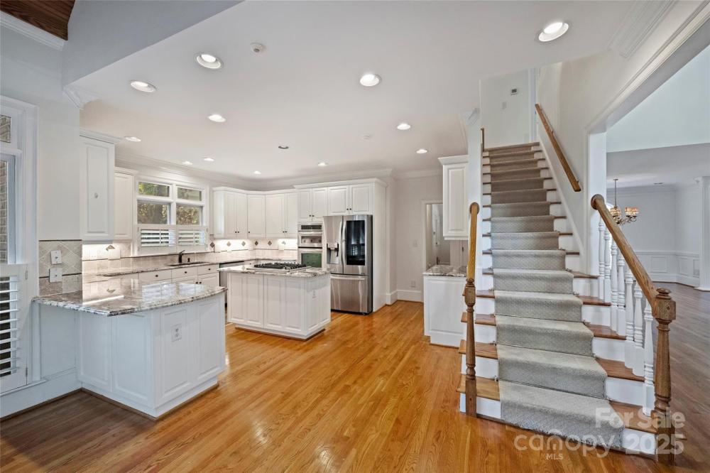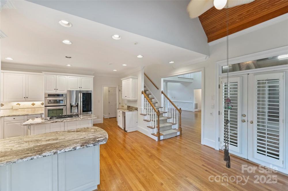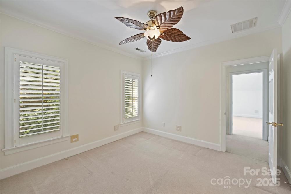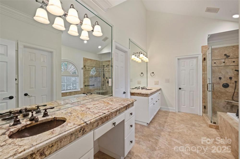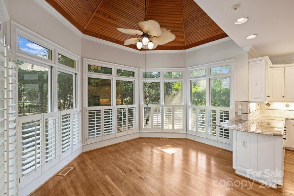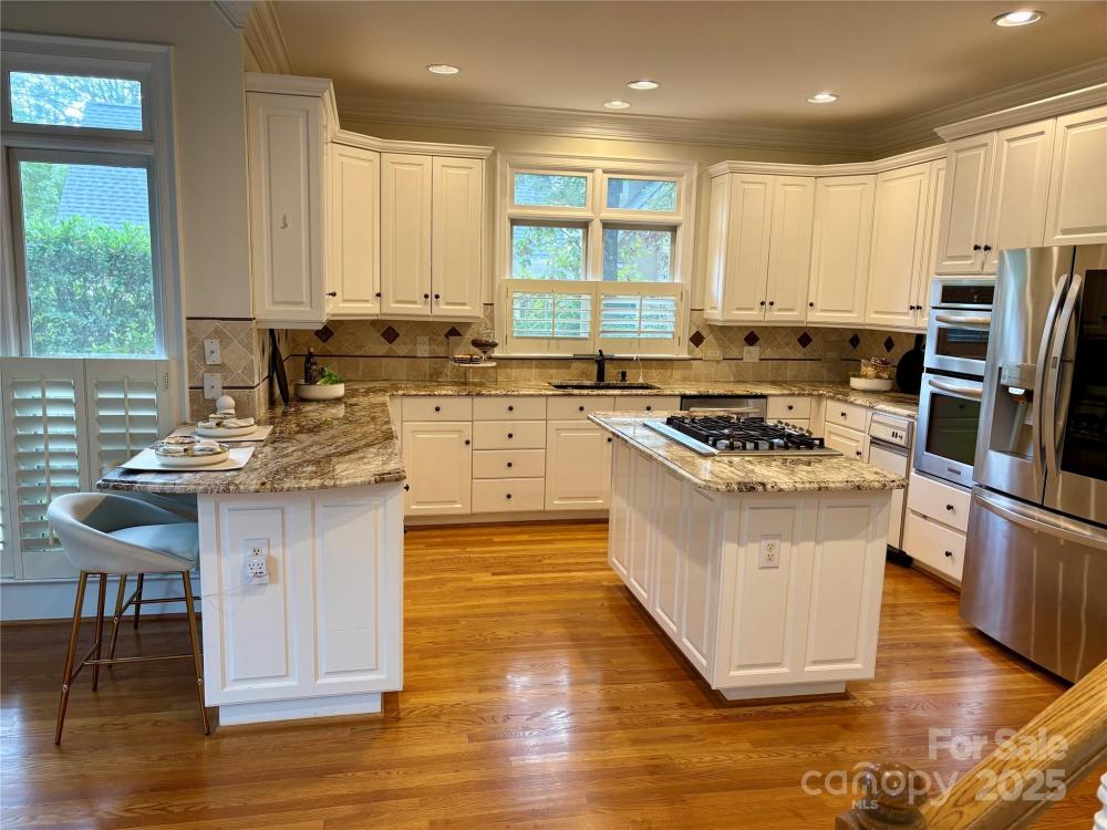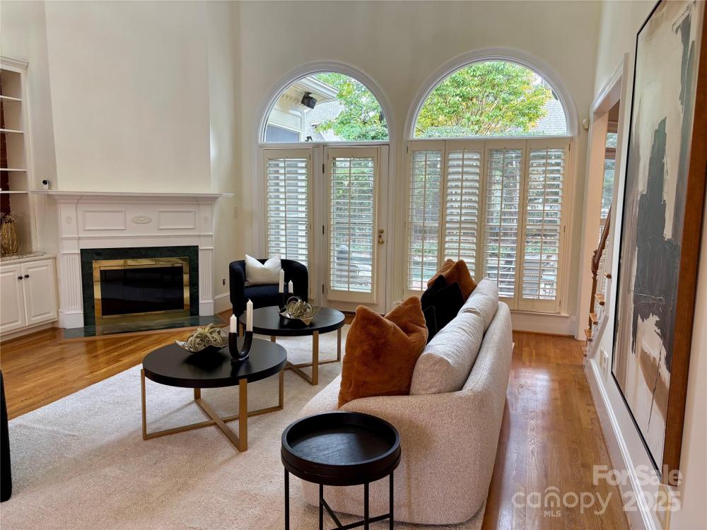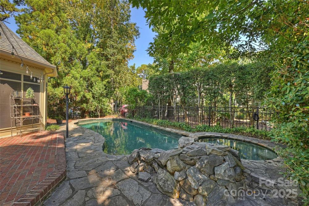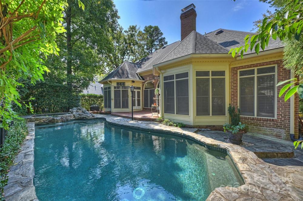 Welcome to a home where timeless elegance meets thoughtful details in a sought after section of Piper Glen in Linkside Village! From the moment you arrive, you’ll notice the care and craftsmanship that make this home special. Step inside and you’re immediately greeted by a soaring 2-story great room with a cozy gas fireplace—a perfect spot to gather with family and friends. Daube crown molding and plantation shutters run throughout the home, adding charm and refinement at every turn. Built-in book shelving with cabinets and granite countertops provide both beauty and function. The first-floor primary suite is a true retreat. Relax by the glass-enclosed fireplace in the sitting area, or unwind in the spa-inspired bath featuring a frameless shower with dual spray heads and a built-in seat. The kitchen is a chef’s delight with granite countertops, a gas cooktop with disappearing exhaust fan, and a refrigerator with glass door. Enjoy casual meals under the vaulted Pecky Cypress ceiling in the breakfast nook—a unique touch that adds warmth and character. Upstairs, the secondary bedrooms are spacious and connected by a Jack & Jill bath with separate sinks and a tub, offering both convenience and privacy. Outside is where this home truly shines. Entertain or unwind in your own private oasis featuring a 30-foot pebble sheen pool with spa, waterfall, and seating areas, all surrounded by stone coping. A brick patio, gas grill, and gas lanterns set the perfect backdrop for outdoor living, while speakers let you set the mood. The fenced backyard offers both beauty and function with brick and stone pathways leading from the front to the back. The exterior also boasts gutter guards for easy upkeep. This home is as inviting as it is impressive—perfectly designed for both relaxing and entertaining.