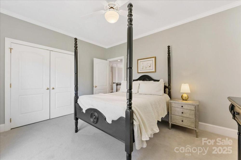 Stately Piper Glen home perfectly situated on the 3rd Green with sweeping views of the golf course as well as mature landscaping for privacy. This 2 story home has been beautifully updated with natural stone countertops in the Kitchen, newer white cabinetry, KitchenAid appliances including a 5 burner gas range, an island prep sink as well as butler’s pantry, walk-in pantry, custom wine bar area & a bright, inviting breakfast nook with banquette seating. The Keeping area centers around a cozy fireplace with stone surround, while custom millwork, designer lighting, & hardwood floors tie the main level together. The Front Office flows into the Family Room with a wall of glass windows that open to a travertine grilling terrace. A Dry bar area is tucked between the Office & Family Room where you can step through French doors from either room onto the covered side veranda. Upstairs, the 4th Bedroom sits apart from the others making it an ideal Guest Suite. Spacious Primary Suite with trey ceiling, 2 walk-in closets & updated bathroom. Bonus Room features a vaulted ceiling & floating built-in media cabinet. Don’t miss the permanent walk-up attic which makes holiday storage a breeze. Living in Piper Glen not only provides convenience to TPC Piper Glen, if you choose to join, the home is also just minutes from shopping, restaurants and the McAlpine Greenway.