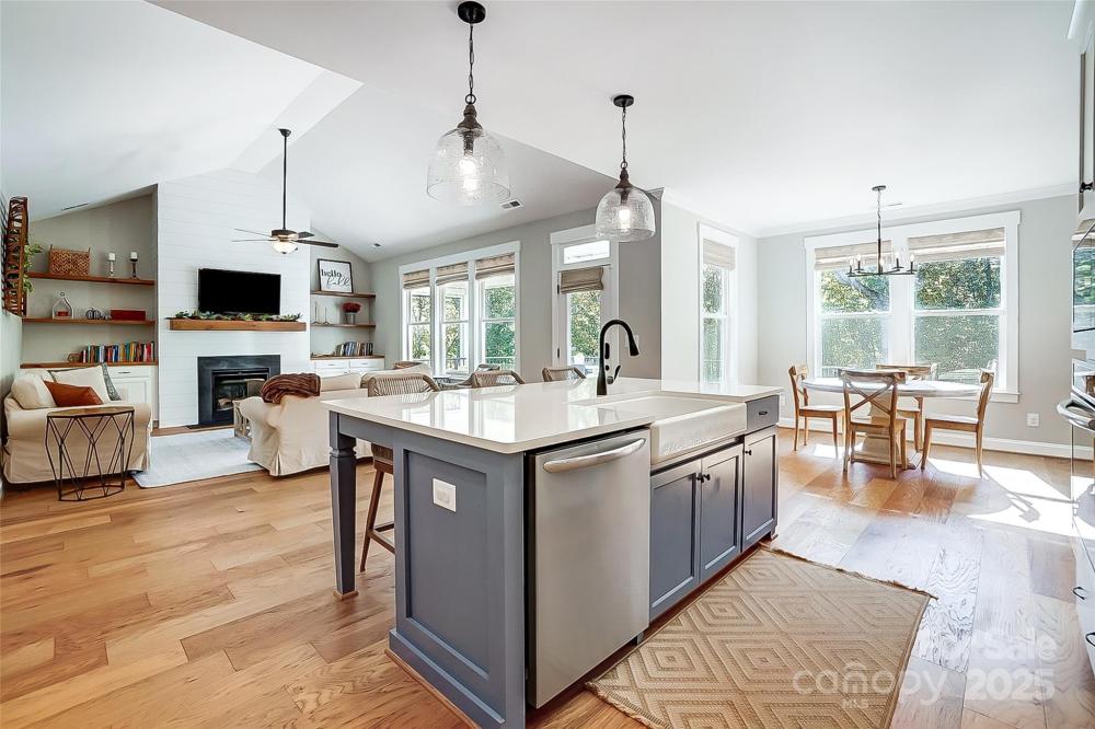 Discover the joys of waterfront living in this stunning 1 story home in McLean Overlake. Step into a welcoming foyer adorned with rich moldings and beautiful flooring, setting the stage for the refined interior that follows. The open-concept design seamlessly connects the gourmet kitchen—complete with stainless steel appliances, gas cooktop, and large island—to the dining area and vaulted great room featuring a gas fireplace and custom built-ins. The primary suite offers a serene retreat with a tray ceiling and a spa-inspired bathroom. A dedicated office with French doors provides a quiet workspace for remote work or reading. Outdoor living shines here: unwind on the covered porch with remote-controlled screens, entertain guests on the paver patio, enjoy the spacious fenced yard, or gather around the firepit on cool evenings. Cool off at the community pool—or head to your private floating dock for boating, paddleboarding, and watersports. This better than new home is the perfect blend of elegance, comfort, and lakefront fun.