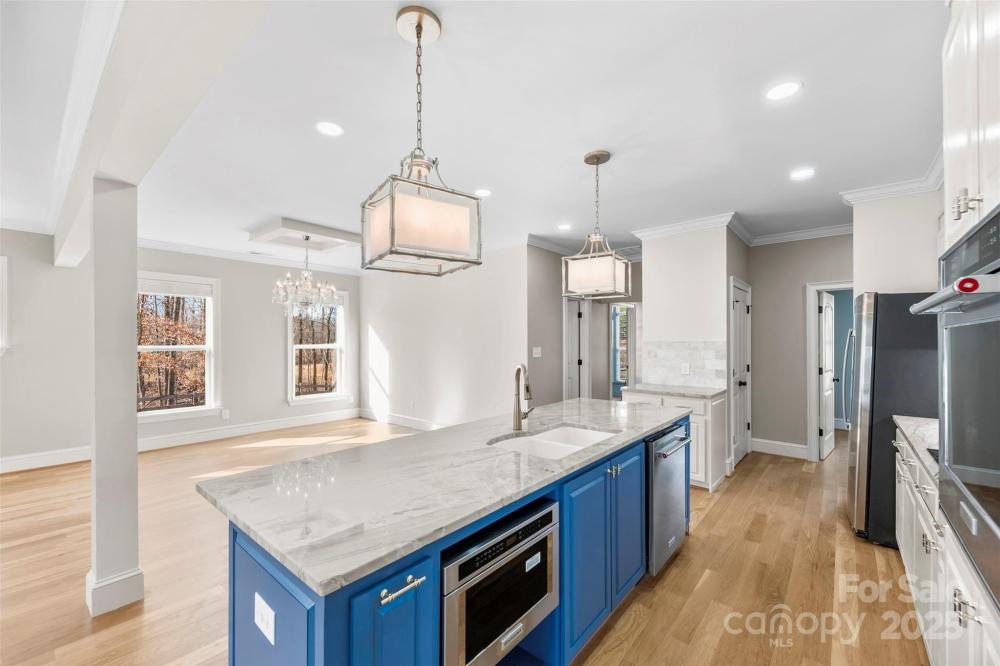Welcome to 516 Lands End Trail, a stunning new construction home that perfectly blends luxury finishes with a peaceful, private setting just minutes from downtown Belmont. Enjoy close proximity to the lake and easy access to the interstate, offering both relaxation and convenience. This thoughtfully designed residence features an open-concept main level with beautiful engineered hardwood floors, high-end lighting fixtures, a cozy living room fireplace, and abundant natural light throughout. The gourmet kitchen showcases a large island with quartz countertops, brand-new stainless steel appliances, and elegant finishes—ideal for both everyday living and entertaining. Mahogany add a rich, sophisticated touch. The primary suite is conveniently located on the main level and offers a spacious, spa-like bathroom with a generous turn radius for added comfort and accessibility. A dedicated office on the main level provides the perfect work-from-home space. With three bedrooms, three full bathrooms, walk-in closets and a flex area this home offers both functionality and livability. Take in year-round views from the tiled screened-in porch or unwind on the tiled patio while enjoying the serene surroundings. Offering a private, country feel while being just minutes from Belmont’s charming shops and restaurants, this exceptional property delivers luxury, comfort, and location in one remarkable home.
