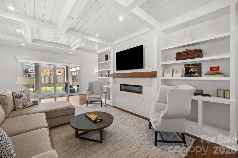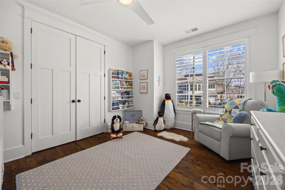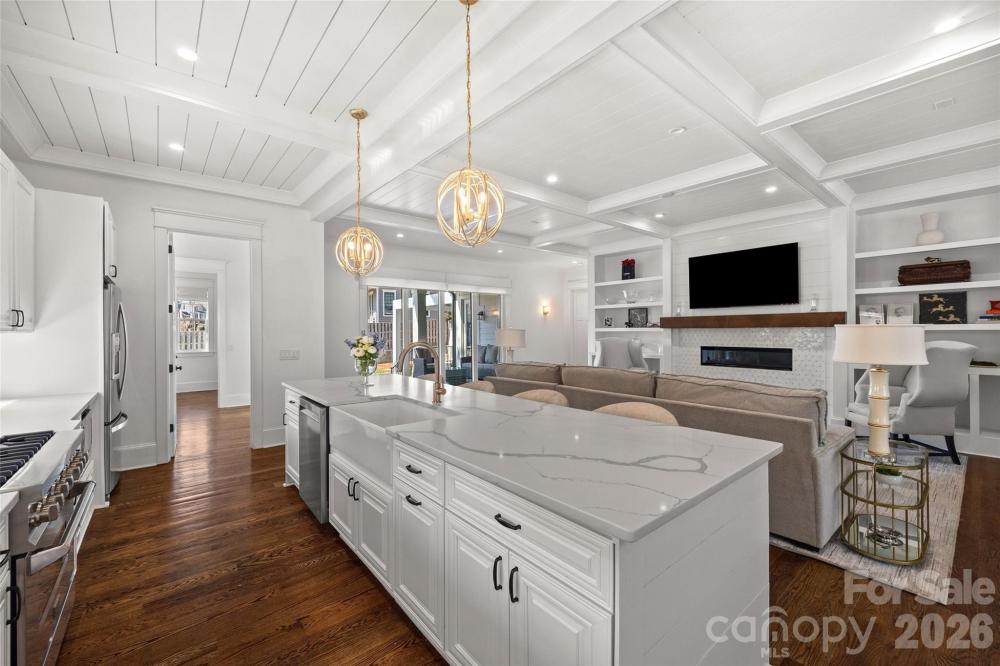 Stunning 5 bed /4 bath luxury home in the heart of Dilworth with inviting front porch and timeless curb appeal. This home offers a wonderful floorplan with seamless flow and elevated finishes. Wide-plank hardwood floors throughout the home, plantation shutters, amazing abundant natural light, 10 foot ceilings on main and 9 foot ceilings on upper level. The gourmet kitchen features an expansive quartz island and gas range, pot filler and custom hood, beautifully appointed butler’s pantry, equipped with a beverage refrigerator and bar sink connects to the kitchen through a walk-through pantry with built-in cabinetry, additional counterspace and floating shelves. Formal Dining and a sophisticated family room featuring coffered ceilings and tongue-and-groove detail. Gas fireplace enhanced by custom built-in shelving and an oversized sliding glass door that opens to a large covered rear porch—perfect for indoor-outdoor living. Two luxurious owner’s suites provide unparalleled flexibility, with one on the main level and a second on the upper level. Each suite features vaulted ceilings, designer lighting, large custom walk-in closets with built-in shelving systems and spa-inspired baths with dual vanities, freestanding soaking tubs, large tile surround walk-in showers. The main level primary suite features an ensuite laundry closet and the upper primary suite opens to a private covered terrace and offers dual walk-in closets. Spacious secondary bedrooms with walk in closets. Large hall bathroom with an oversized double vanity and a tile surround shower/tub combo. Great storage and closets throughout home. The third-floor offers endless possibilities for a home theater, executive office or large bonus room. Outdoor living is remarkable with paver patio, covered electronic retractable pergola with ceiling fan and built-in gas grill area with countertop and beverage refrigerator. Outdoor fireplace with custom built-in niches for storing wood. Dual parking pads - front and rear with electronic gate. Fantastic, flat corner lot. Excellent location with convenient access to SouthEnd and Uptown. Walking distance to shops, dining and parks. Subdivision is Sunset Hills in tax record but is commonly known as Dilworth. Construction began and tax year built date is 2018 but House Completion/CO date is 5/12/2020. Move-in ready and a wonderful opportunity!