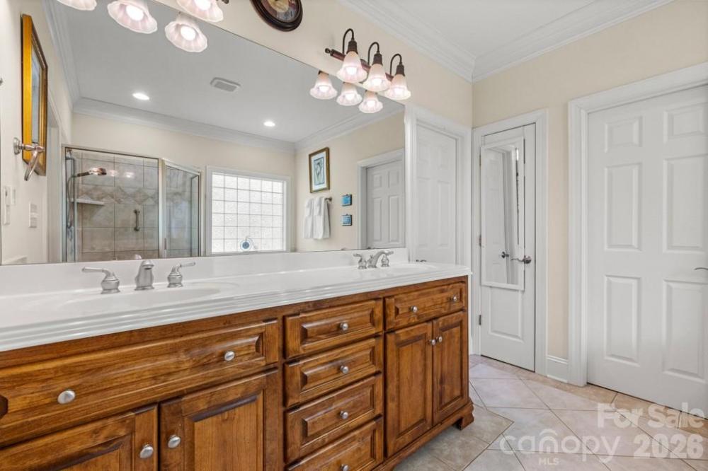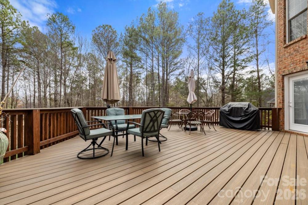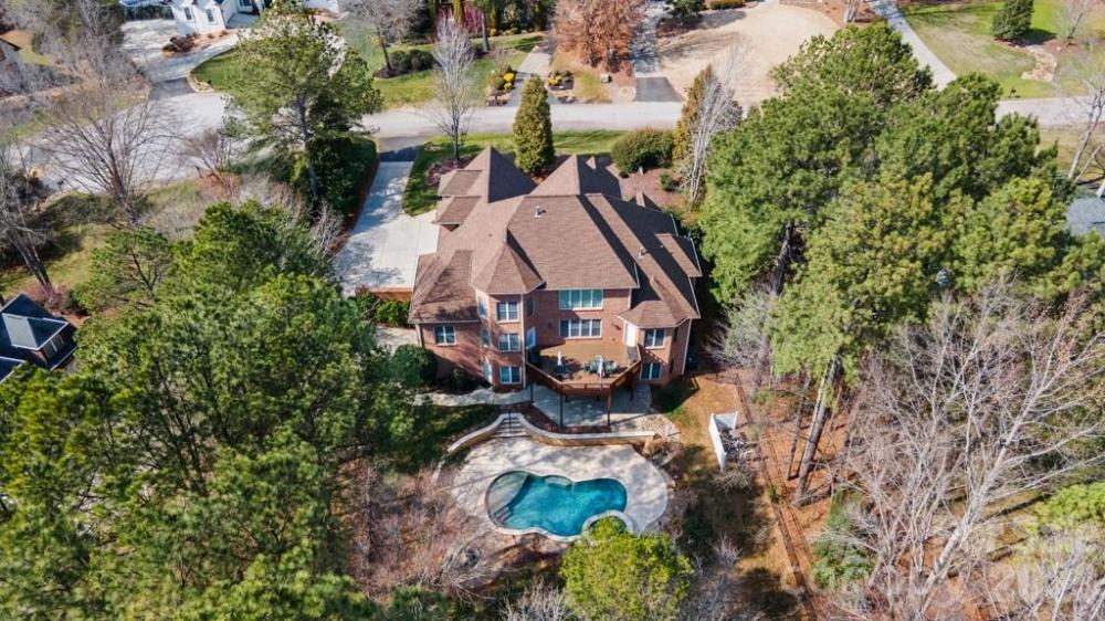 Refined luxury meets resort-style living in this exceptional five-bedroom, five-and-a-half-bath residence in the highly sought-after Huntington Farms community. Privately positioned on a wooded cul-de-sac lot, this expansive estate offers more than 5,900 square feet of thoughtfully curated living space, including a finished basement and a stunning in-ground pool with spa. The main level showcases a spacious primary suite with tray ceiling and a beautifully appointed ensuite bath, along with a private guest suite—ideal for multigenerational living or long-term guests. A dedicated office, formal dining room, and elegant great room create a sophisticated yet inviting atmosphere, highlighted by hardwood floors, crown molding, tray ceilings, custom wainscoting, and a gas fireplace. The well-appointed kitchen blends function and style with granite countertops, double wall ovens, an electric cooktop, tile backsplash, and abundant cabinetry, flowing seamlessly into the main living areas for effortless entertaining. Plantation shutters throughout much of the home add timeless architectural character. Upstairs, additional guest bedrooms and full baths accompany an expansive, flexible bonus space perfect for a media room, fitness studio, or playroom. The finished lower level further extends the home’s versatility, offering a private guest retreat with bedroom and full bath, generous recreation space, a second gas fireplace, and extensive storage. Outdoor living is equally impressive. A spacious main-level deck constructed with low-maintenance materials overlooks the fenced backyard, where an in-ground pool with spa, stone decking, and mature landscaping create a serene, resort-inspired setting designed for both relaxation and entertaining. Additional highlights include a three-car garage, large walk-up attic space, laundry room with cabinetry and utility sink, custom built-ins, and a decorative front door entry with high ceilings. A rare opportunity to enjoy privacy, timeless finishes, and resort-caliber amenities in one of Fort Mill’s most desirable neighborhoods.