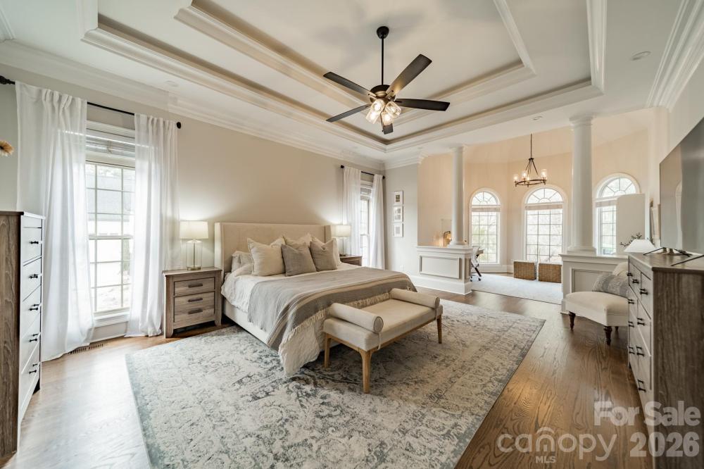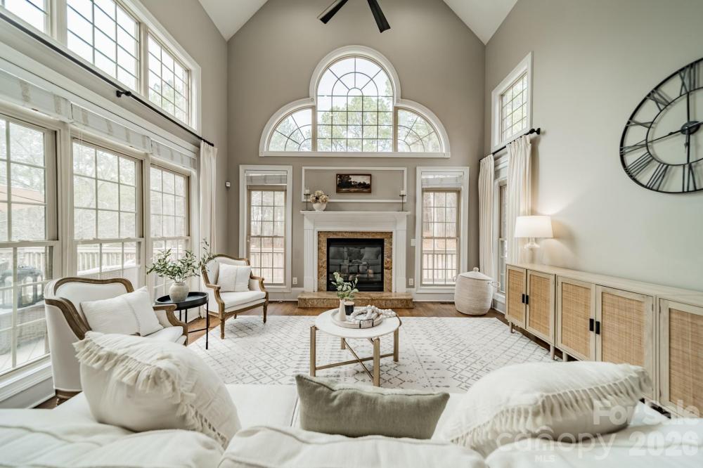 Experience the privacy and luxury of the Huntington Farms neighborhood in Fort Mill, SC. Positioned near the end of a quiet cul-de-sac and set back for seclusion, this 1.22-acre property is the one you've been waiting for. Upon entry, a dramatic two-story foyer sets a tone of refined elegance. The nearly 5,000 sq ft floor plan flows seamlessly from the formal dining room into the heart of the home: a large custom kitchen with a butler's pantry and built-in wine storage. Featuring two distinct living spaces: a cozy family room with a gas fireplace and glass doors leading to the oversized deck, and the charming two-story great room, also featuring its own fireplace and open views of the backyard. The main-level primary suite is an owner's dream featuring a private sitting area for quiet mornings, two walk-in closets providing ample wardrobe space, and a large bath with a walk-in tile shower, deep soaking tub, and dual vanities. The second floor offers three spacious secondary bedrooms and three full baths, plus a large bonus room perfect for a home office or cinema. An open loft overlooks the great room, maintaining an airy, connected feel and additional room for work or play. Perhaps best of all, the exterior offers a massive wrap-around deck overlooking a sprawling backyard framed by mature privacy trees. Imagine a future pool, spa, or continue to enjoy the space for its natural beauty. Home features 3 car garage with side entry. Residents enjoy Fort Mill's award-winning school district and close proximity to all that Charlotte has to offer.