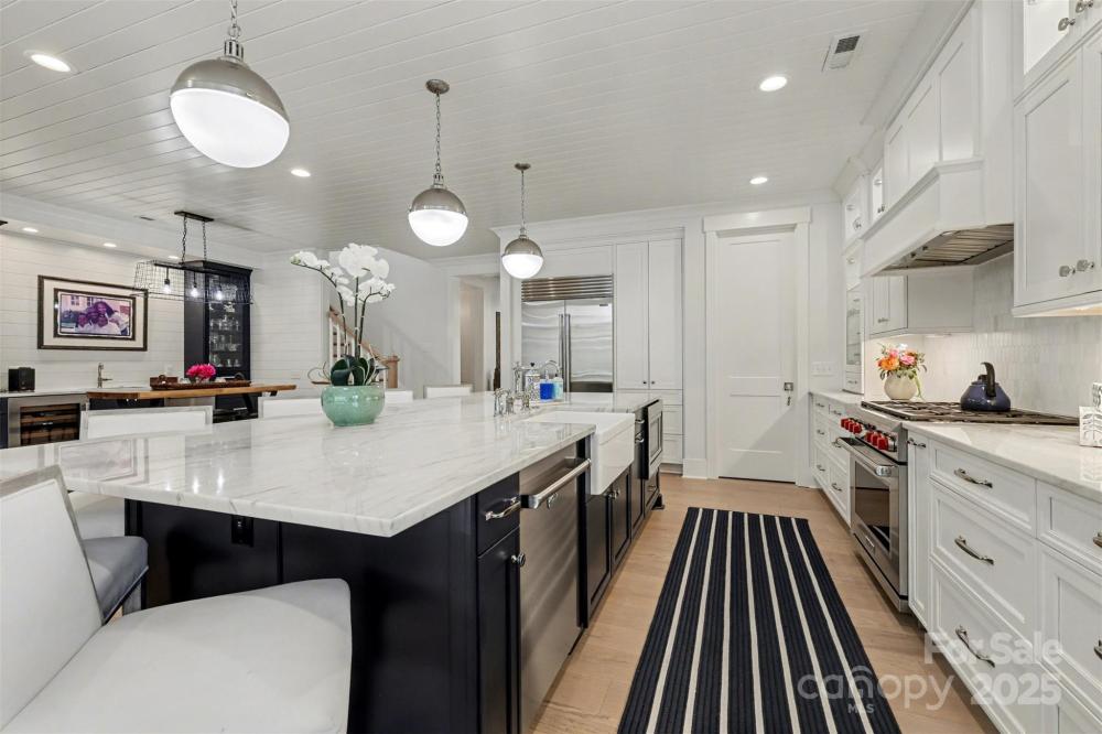 An exceptional custom residence by Classica Homes, ideally situated on a private cul-de-sac lot in one of Fort Mill’s most sought-after communities, Arden Mill. Originally built as the builder’s personal home, this residence showcases the highest level of craftsmanship, design, and bespoke luxury throughout. Every detail has been thoughtfully curated, beginning with a show-stopping chef’s kitchen featuring a private scullery, 36” Wolf range, 42” Sub-Zero refrigerator, wine refrigerator, two dishwashers, and exquisite custom cabinetry accented by Brizo fixtures and marble countertops, along with a walk-in pantry designed for both elegance and function. The main-level owner’s suite is a serene retreat, offering a spa-inspired bath with marble counters, heated marble floors, an oversized walk-in spa shower, and an expansive custom-designed primary closet with integrated laundry. Additional highlights include a first-floor guest suite, formal and open living spaces, and refined architectural details such as V-groove wood ceilings, shiplap accents, designer lighting, plantation shutters, and custom closets throughout. Designed for seamless indoor-outdoor living, the great room features 16-foot accordion-style stacked sliding doors that open to an oversized covered terrace with stone gas fireplace, travertine flooring, electric drop-down screens, and four ceiling-mounted outdoor heaters, creating an inviting year-round entertaining space. The professionally landscaped backyard is complete with architectural uplighting and a stone fire pit—perfect for relaxing evenings under the stars. Additional premium amenities include laundry facilities on both levels with two washer/dryer sets, a family room TV with sound bar, smart home technology, Sonos sound system, Rinnai on-demand water heater, and EV charger. This is a rare opportunity to own a truly one-of-a-kind luxury home, where timeless design meets modern comfort in an exceptional setting.
