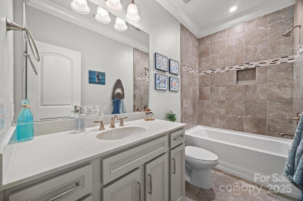 One of Bridgemill's finest! Don't miss out on this gorgeous former model home. Designed for entertaining & luxurious living featuring amazing architectural details throughout this 5BR & 7BA home! This truly exceptional home will exceed expectations. You’ll love the beautiful flooring, three-story stairwell, rich moldings, plus tray & coffered ceilings. The covered front porch invites you into a bright & airy 2-story foyer flanked by formal dining room & office (currently used as a playroom) w/ French doors. Spacious great room features exquisite stone fireplace opening to a dining area and Gourmet kitchen w/ ss appliances, gas range, large granite island, butler's pantry, & computer niche/office. Main floor guest suite with private full bath. Upper level of this dream home provides luxurious Owner's suite w/ tray ceiling, sitting area, & spa-like bathroom. 3 additional BRs each w/ private bath, & family/flex room. The third floor offers a spacious family/media room w/ 1/2 bath. Relax and entertain on the spacious patio overlooking the private backyard, or head down to the community clubhouse, tennis courts, or pool to cool off! Newer plantation shutters, Nest home system, and wired ADT Security system convey!