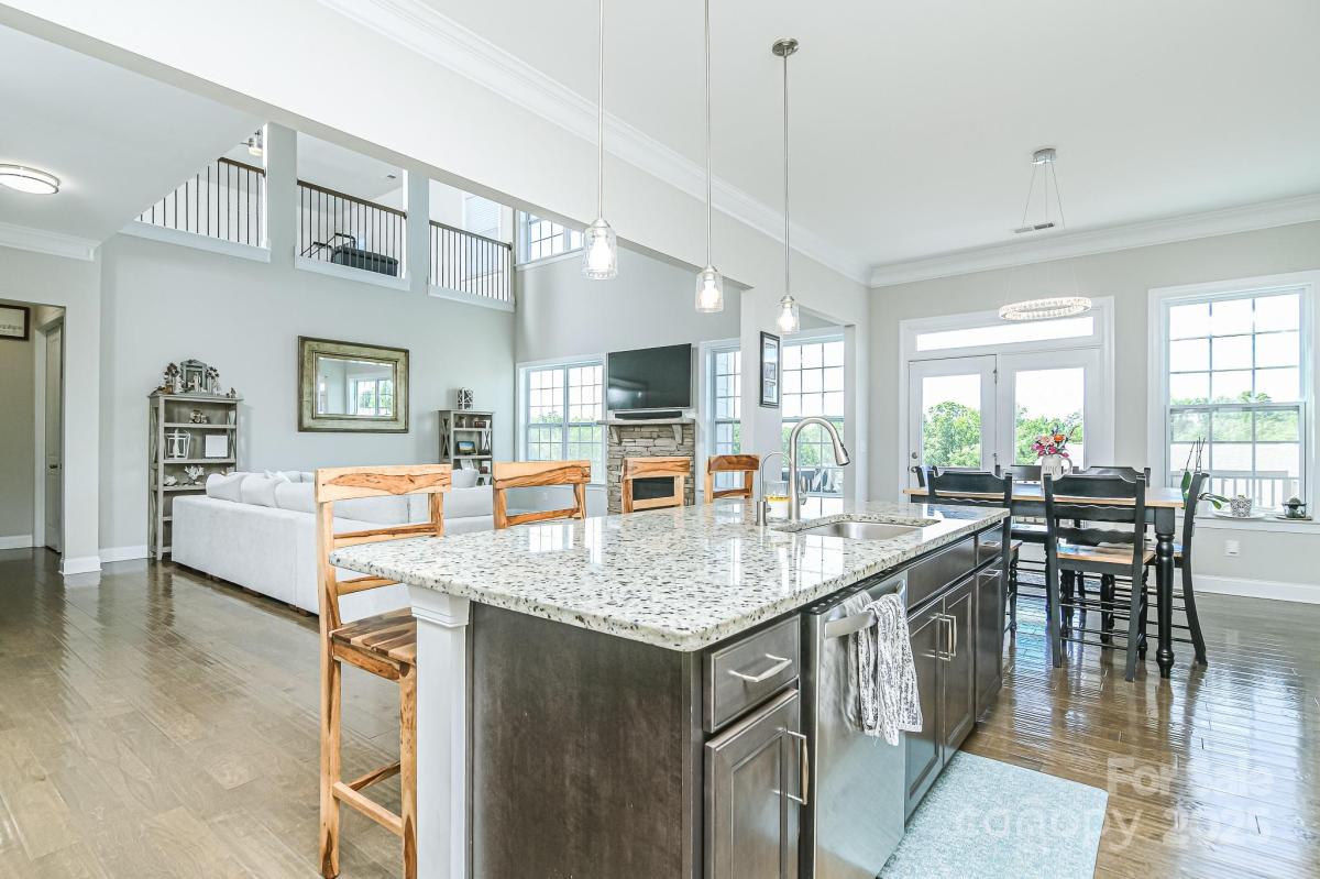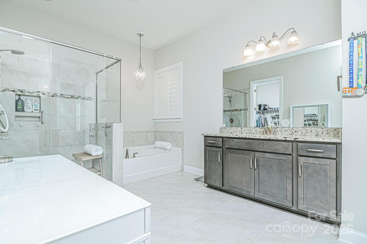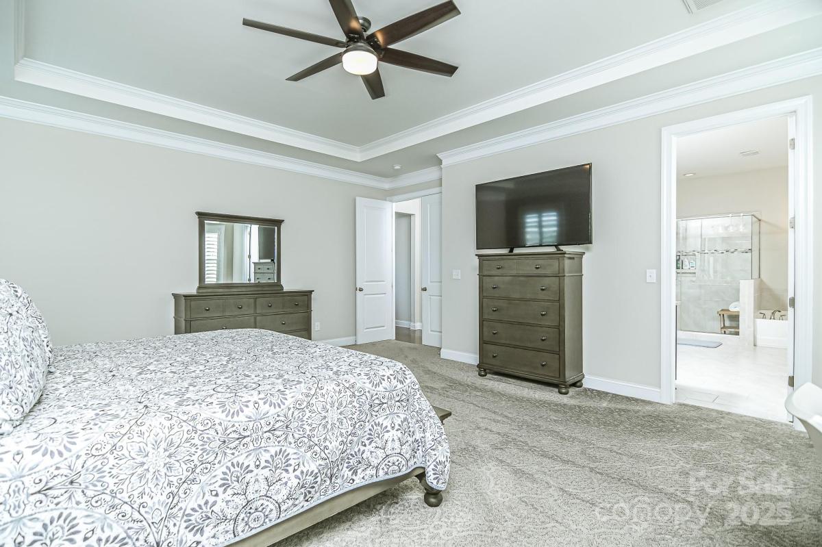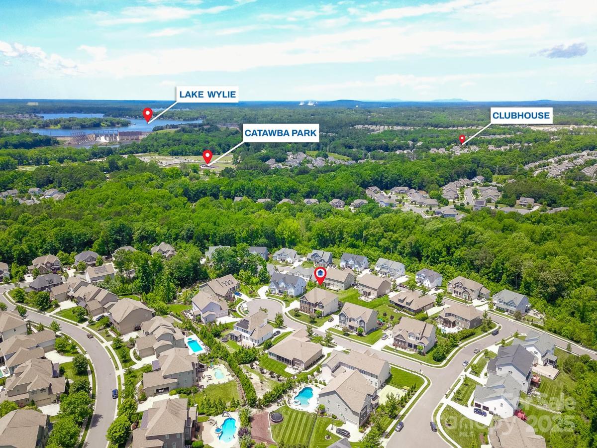 Discover your luxury dream home in a highly desirable community! This magnificent 6-bedroom, 5.5-bath residence is designed for sophisticated living and multi-generational comfort. It features two primary bedrooms, one conveniently located on the main floor and the other in the finished basement. The high-end kitchen, seamlessly connects to the great room, offering stunning views of the second floor—perfect for both family gatherings and entertaining. Elegant plantation shutters adorn the windows. The second floor boasts large bedrooms, each with an en-suite bathroom. This multi-generational home extends into a finished walk-out basement, complete with a movie theater, gym, game room, and the second primary bedroom featuring a large en-suite spa bathroom. Situated on a cul-de-sac outdoor features include a versatile pickleball/basketball court, a deck on the main level and a covered patio at the basement level. Award winning Fort Mill school district. Community Pool.