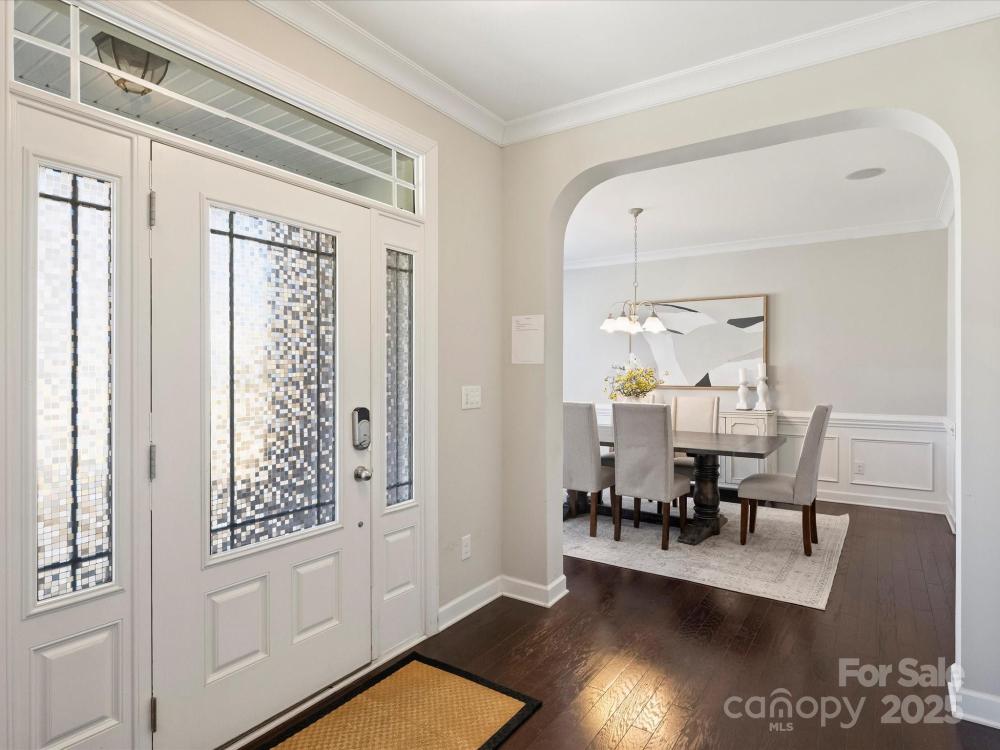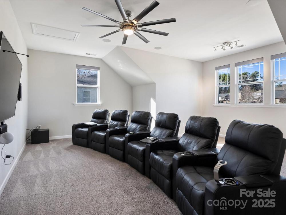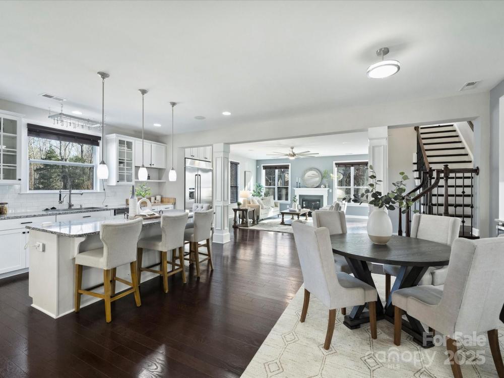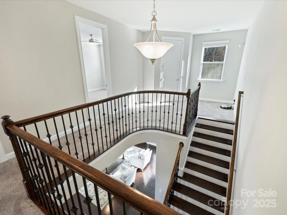 Smart home technology conveniences combined with upgrades galore in a scenic setting complete this desirable home in popular Shelly Woods! The open floor plan and chef's kitchen are an entertainer's delight featuring top of the line appliances: Samsung gas cooktop w/auto vent/hood,42"JennAir counter depth fridge, center island, roll out and soft close drawers w/custom silverware compartments. Granite dry bar has wine fridge and beverage fridge,TV with soundbar, subwoofer, and undercabinet lighting. Owner also added coffee bar w/maple butcher block countertop. Upgrades continue in primary suite on main level w/voice activated lighting, window shades,ceiling fan. Custom closet system. Renovated bath boasts Carrara marble basketweave tile,double vanity w/granite, Grohe & Moen fixtures, programmable huge shower. Entertainment continues outdoors on 3-tiered Trex deck overlooking woods w/steel and metal support system, gas line to Firemagic built in grill and side burner, gas line for fire pit in seating area, outdoor dining area w/lighting and fans. Upper level w/8 foot doors and high ceilings provides 3 bedrooms; full bath; bonus room w/theater seating, surround sound,75"TV. Samsung washer & dryer with pedestals convey. Unfinished basement has additional potential 1700 sq.ft. Owner also added drainage system outside, 8 zone irrigation, programmable outdoor lighting with color feature, driveway lighting. No detail was missed! Close proximity to 521 with many shopping and restaurant options! Don't miss this beautiful home and fantastic value!