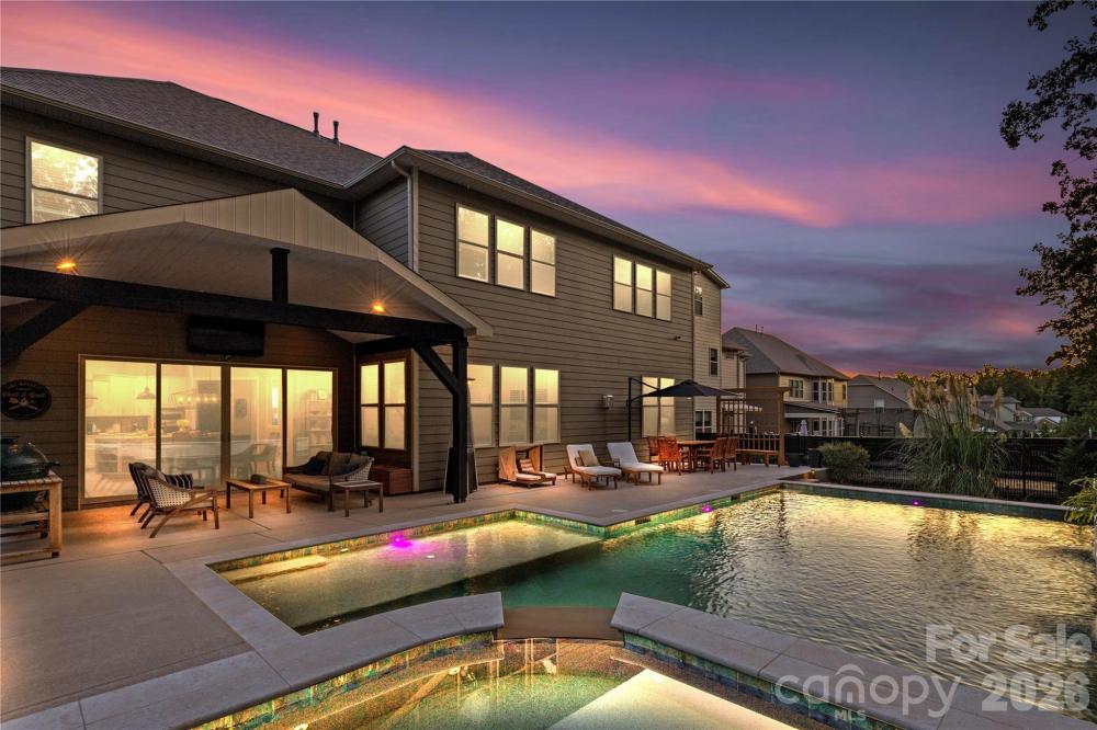 Welcome to this exceptional 5-bedroom, 4.5-bath home in Indian Land, offering over 5,000 sq. ft. of beautifully designed living space and thoughtful upgrades throughout. Enjoy resort-style outdoor living with an inground pool featuring a tanning shelf, relaxing hot tub, covered patio, and fully fenced backyard. Inside, the gourmet kitchen impresses with a large quartz island, extended café area with additional storage, walk-in pantry, butler’s pantry with wine fridge, and farmhouse sink. The main level includes a formal dining room, guest suite with private ensuite, cozy living room with fireplace and shiplap accent wall, convenient drop zone, and first-floor laundry. Upstairs, you’ll find spacious secondary bedrooms, a loft, a Jack-and-Jill bathroom, and a soundproof bonus room that’s perfect for movie nights, a playroom, or added storage. The garage features epoxy flooring and a custom car lift, allowing for 3-car capacity—ideal for car enthusiasts.