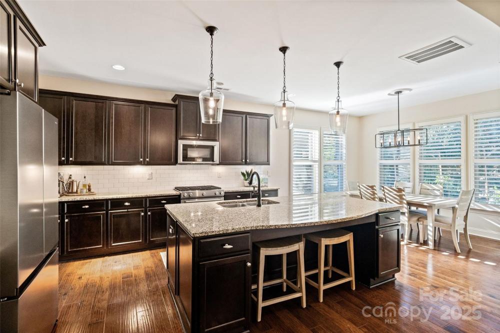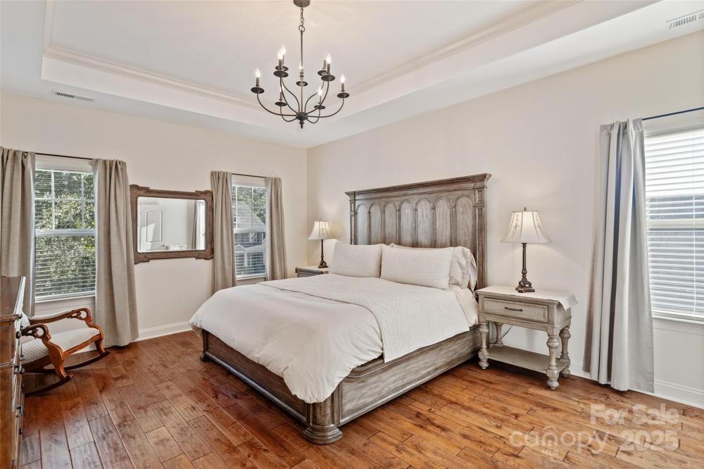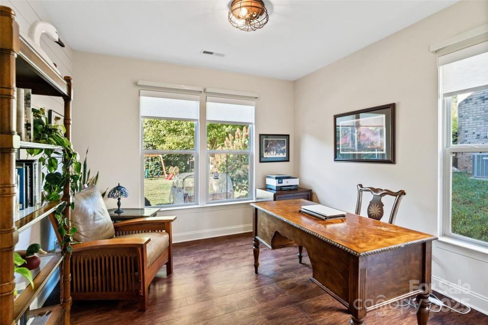 Beautiful home with upgrades throughout in desirable Barber Rock! This stunning home features a covered porch and a stamped-concrete patio, offering the perfect blend of indoor–outdoor living. The main level is filled with natural light and showcases neutral paint, plantation shutters, crown molding, wainscoting, arched doorways, and hardwood floors throughout. The kitchen boasts a huge island with custom bar-seating cutout, stainless steel appliances, gas range, tile backsplash, and a walk-in pantry with custom shelving. A dedicated office space provides the ideal work-from-home setup. Upstairs, the spacious primary suite includes a generous walk-in closet with a custom closet system. The exterior is just as impressive, featuring a large, flat, private backyard, a stamped concrete patio, and garden beds—perfect for entertaining or relaxing. Barber Rock offers an unbeatable location, conveniently situated between Indian Land, Ballantyne, and Fort Mill, giving you easy access to top-rated schools, shopping, dining, and commuter routes.