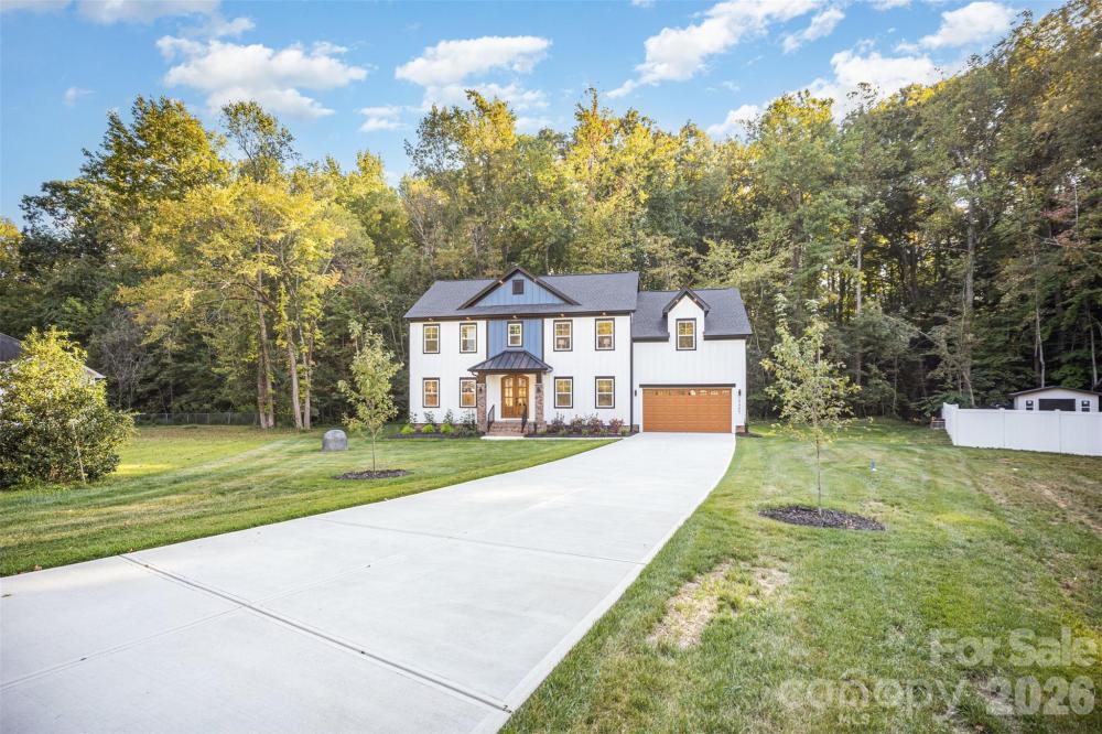 Seller offering up to $15,000 toward a rate buy-down or closing costs, reducing monthly payments by hundreds. Located in desirable Mint Hill with no HOA, this newly built smart home sits on a private lot with a natural stream providing a peaceful wooded backdrop. A mahogany front door opens to a welcoming foyer, a dedicated office, and a private guest suite with full bath. The open-concept kitchen features quartz countertops, premium GE appliances, shaker cabinetry, and a Bluetooth-enabled cooktop, flowing into the family room with a coffered ceiling and modern fireplace. Additional smart features include an electric vehicle charging connection and pre-wiring for security cameras. Elegant finishes, integrated technology, and meaningful seller incentives make this a compelling opportunity in a sought-after location.
