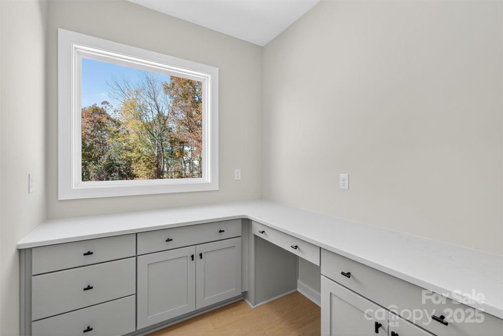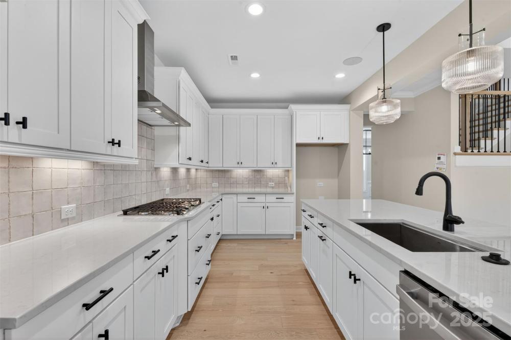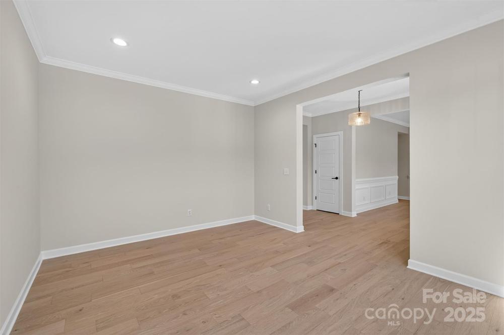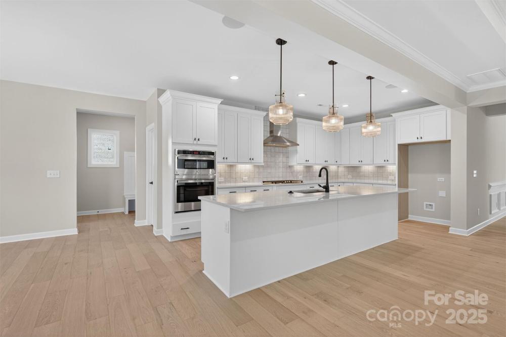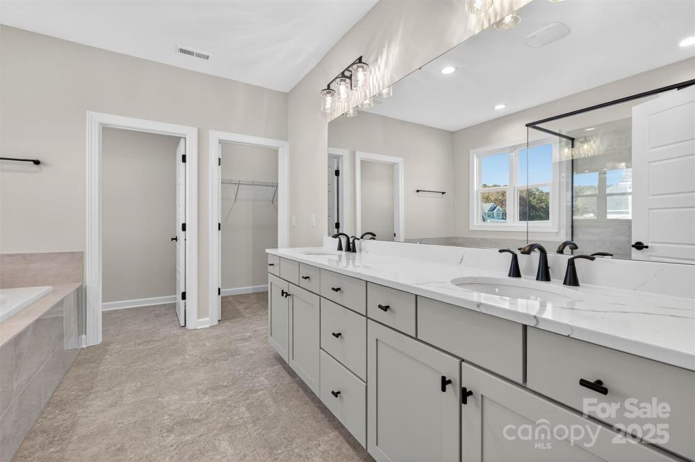 Welcome to this stately home in Mint Hill, where surprises await. The .46 acre homesite backs up to mature trees. 3-car grg has extra storage space. Family rm has tray clg & double-sided fp w/ marble surround and media cabinet + 2 floating shelves; fp is shared with the Sunroom. KT has 42" white cabs, soft-close doors/drawers, GE Profile SS split cooking app w/ 36" gas cooktop, extraction hood vented outside, quartz counters. Breakfast room leads to the rear covered porch. Off the KT is a walk-in pantry & mudroom w/ drop zone & separate office w/ built-in desk. Upstairs, 2 bedrooms share Jack & Jill bath; 3rd bedroom has a private bath. Lrg Rec rm! Generous Premier Suite w/ tray clg & 2 WIC. Bathroom has quartz counters, painted cabinets, soaking tub & large tiled shower. Secondary baths include quartz counters and stained cabinets, with tiled floors. 6.5" French Oak hardwoods are in the main living areas, with oak treads and iron balusters on the stairs. Convenient to I-485.