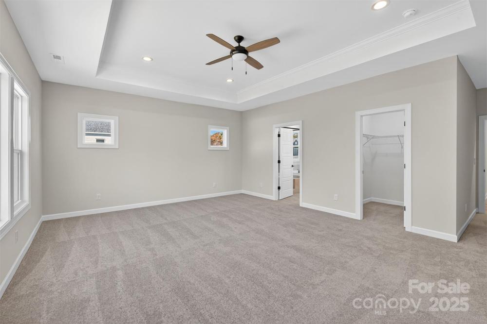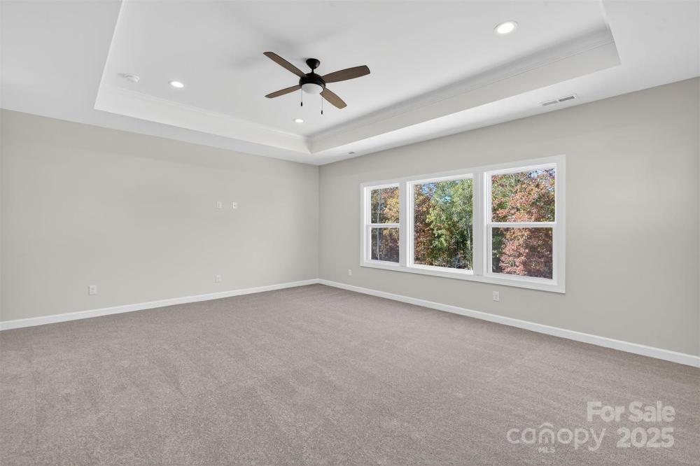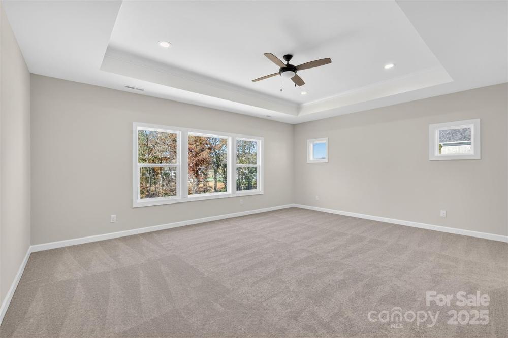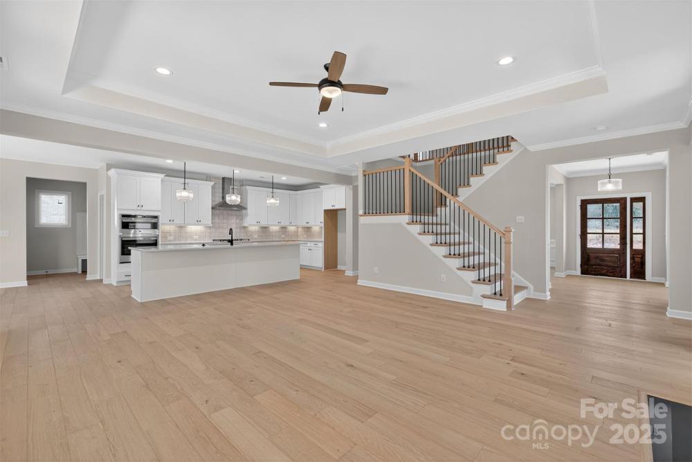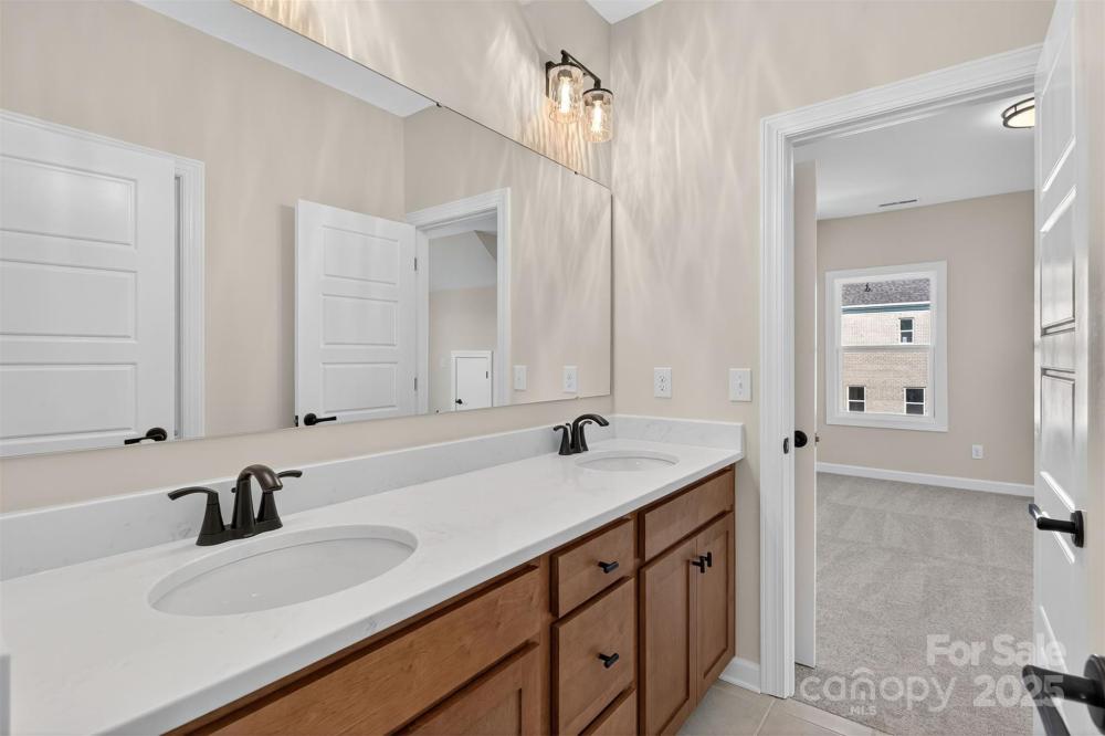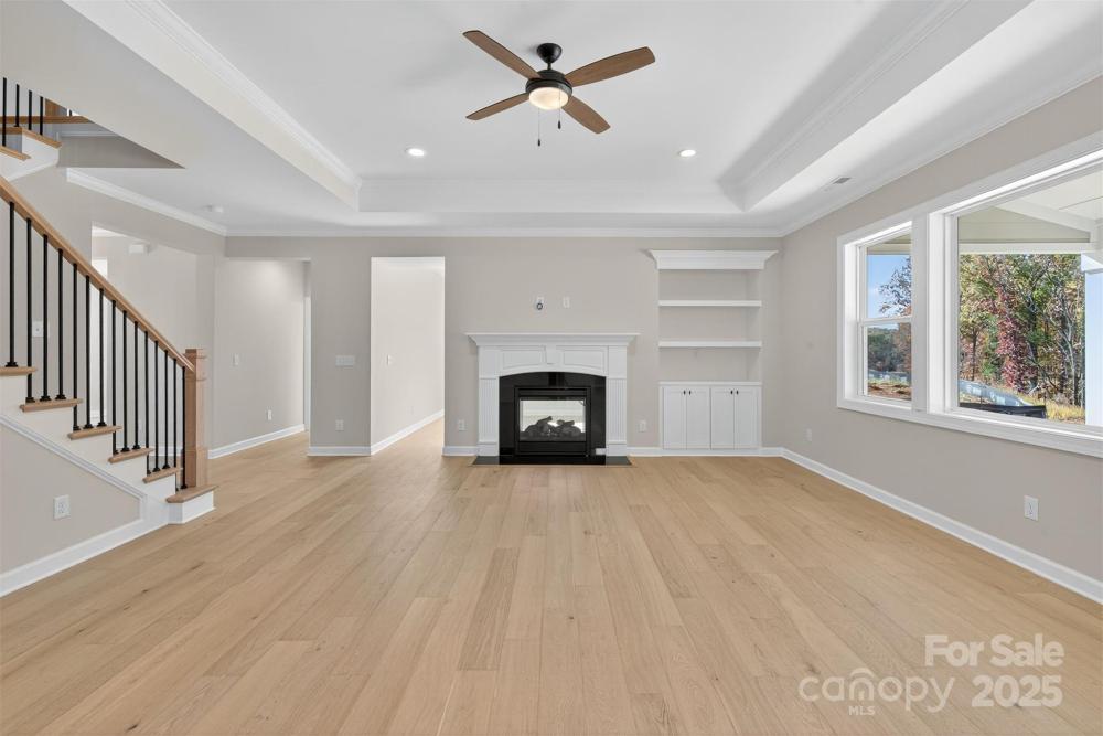 Welcome to this stately home in Mint Hill, where surprises await. The .46 acre homesite backs up to mature trees. 3-car grg has extra storage space. Family rm has tray clg & double-sided fp w/ marble surround and media cabinet + 2 floating shelves; fp is shared with the Sunroom. KT has 42" white cabs, soft-close doors/drawers, GE Profile SS split cooking app w/ 36" gas cooktop, extraction hood vented outside, quartz counters. Breakfast room leads to the rear covered porch. Off the KT is a walk-in pantry & mudroom w/ drop zone & separate office w/ built-in desk. Upstairs, 2 bedrooms share Jack & Jill bath; 3rd bedroom has a private bath. Lrg Rec rm! Generous Premier Suite w/ tray clg & 2 WIC. Bathroom has quartz counters, painted cabinets, soaking tub & large tiled shower. Secondary baths include quartz counters and stained cabinets, with tiled floors. 6.5" French Oak hardwoods are in the main living areas, with oak treads and iron balusters on the stairs. Convenient to I-485.