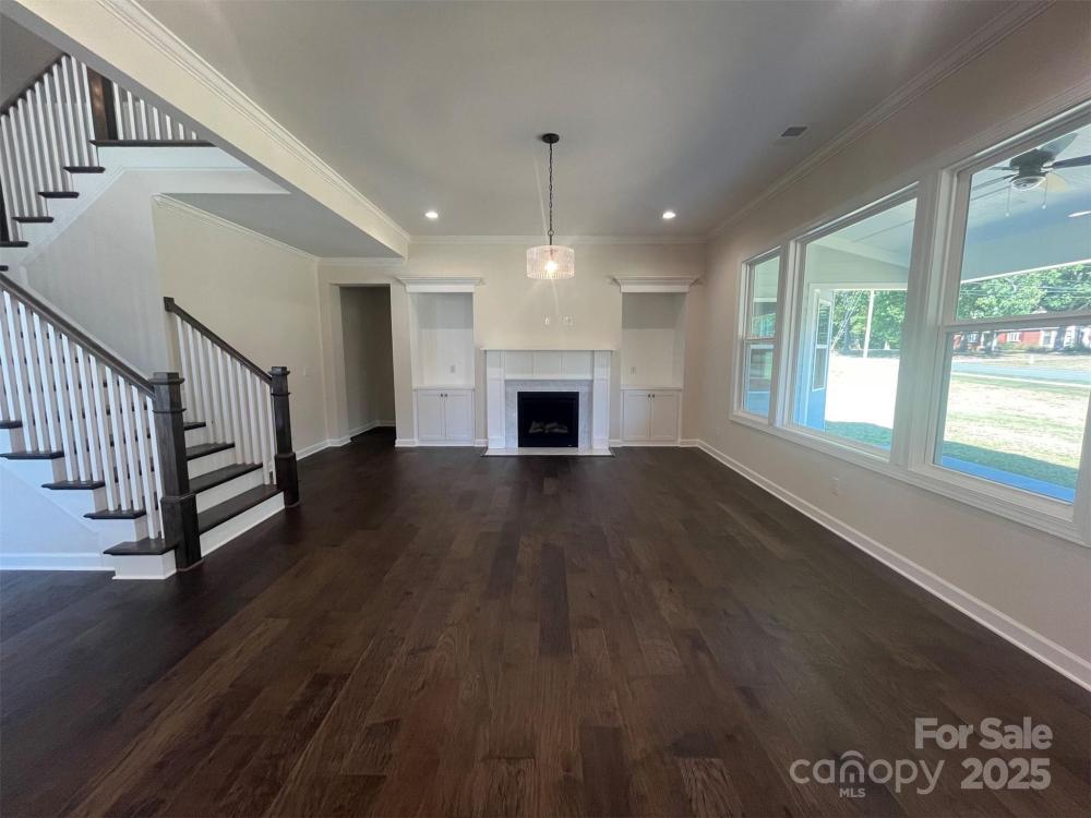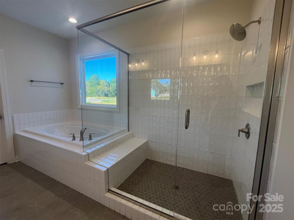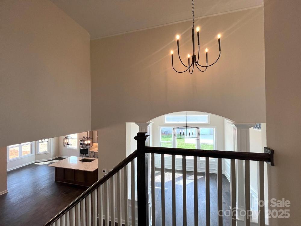 Striking design & architectural features, including a statement Dining rm w/ arched entry w/ columns & 12' clg. 2-story foyer, 1st fl guest bed, full bath w/ walk-in shower, mudrm w/ drop zone. Family has gas fpl w/ white Italian marble surround, 2 cabs w/ shelves. Kitchen w/ 42" cabs, quartz counters, mosaic tile backsplash, LED under-cabinet lights, soft-close doors/drawers, double trash pullout, & GE Profile SS app w/ 36" gas cooktop & extraction hood vented outside & large SS undermount sink. Main floor Premier Suite features tray clg, bay window sitting area, WIC, & bathroom w/ white cabinets, quartz counters, soaking tub, tiled shower w/ shampoo niche & semi-frameless glass, tiled floor. Upstairs is a loft w/ room for desks, & large Rec Rm. 1 bedroom has private bath. All secondary baths have raised height vanities, matte black hardware, quartz counters, tiled floors. Main living areas have 6.5" Hickory hardwoods, oak treads on stairs. .51 acre lot & rear covered porch.