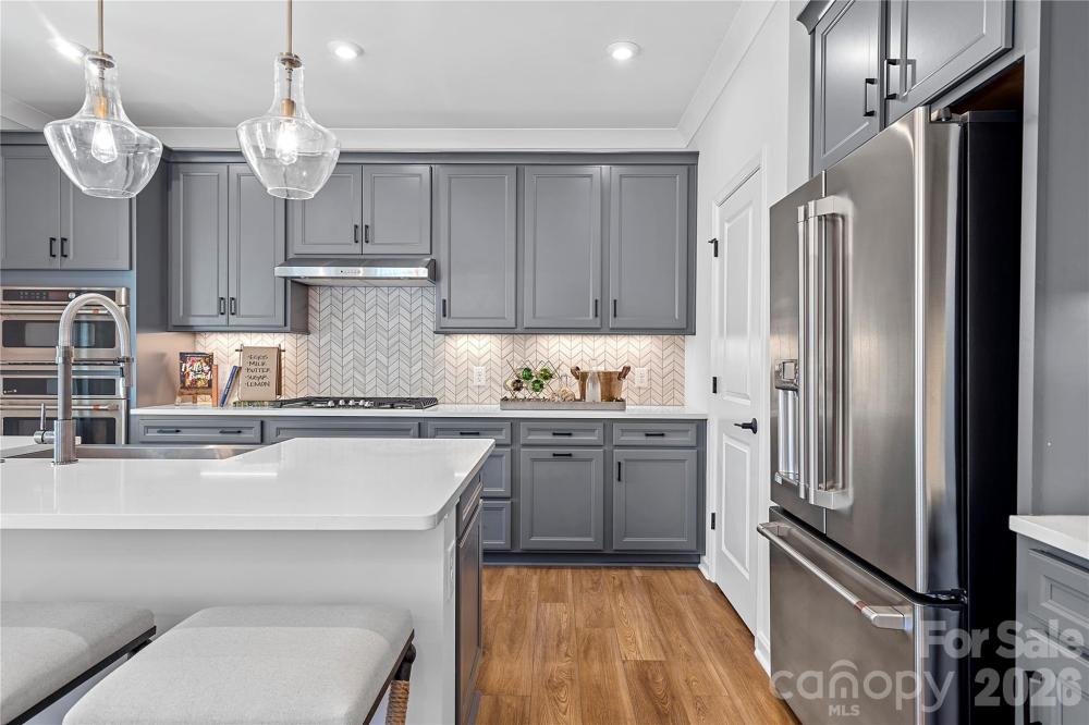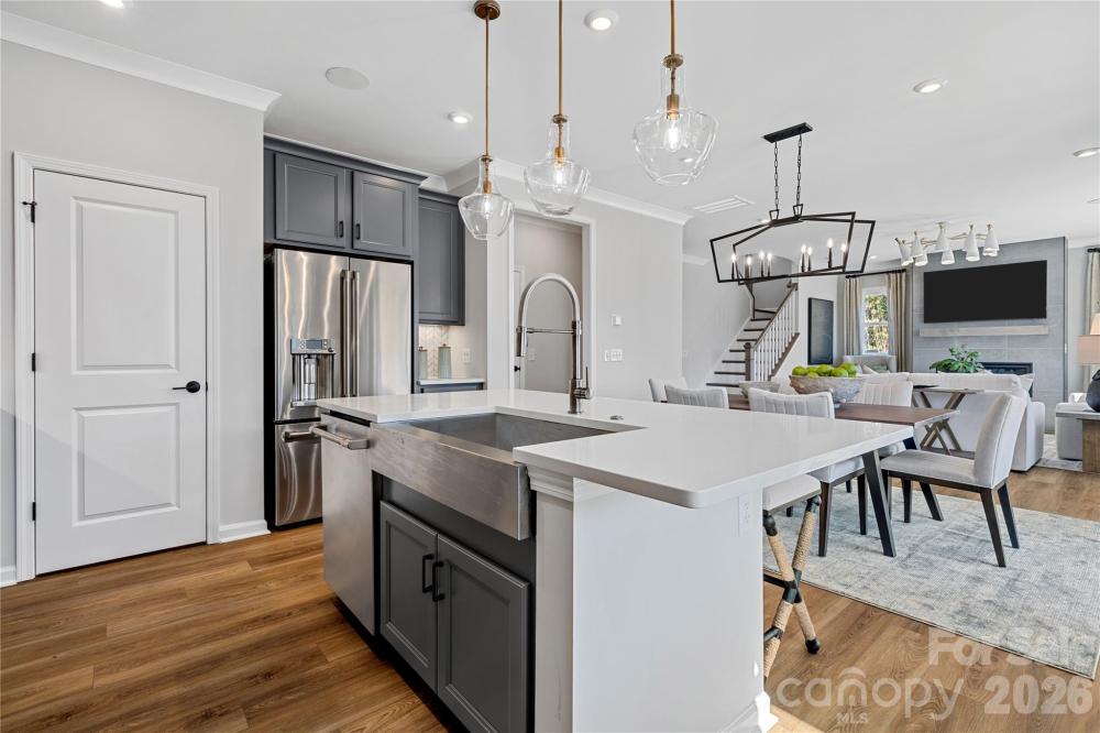 Say goodbye to decision fatigue and hello to strong value and a designer-curated lifestyle. The Woodwright is outfitted with 4 bedrooms, 2.5 baths, a first floor office, and dual outdoor living spaces. All furniture and appliances included! Gourmet Kitchen layout with modern rich gray cabinetry, crisp white quartz countertops, matte black hardware, upgraded hardwood pantry shelving, designer chevron lay backsplash, and more! Primary Suite outfitted with a grand tray ceiling, additional windows, modern wood-toned cabinetry, crisp quartz countertops, and designer selected tile. Gas fireplace with built in mantel and tiled surround at great room. French doors opening to first floor office or flex space. Extended covered outdoor living space at the rear of the home and covered front porch.