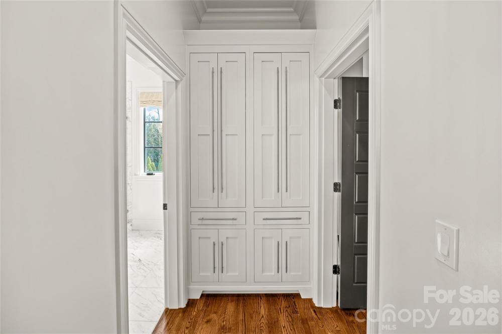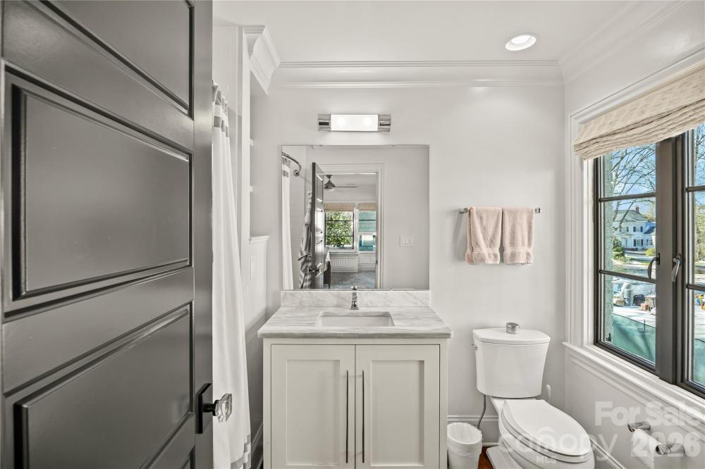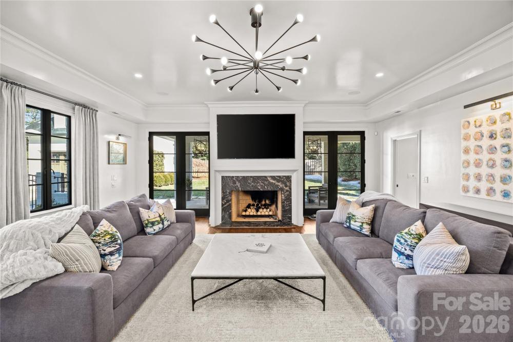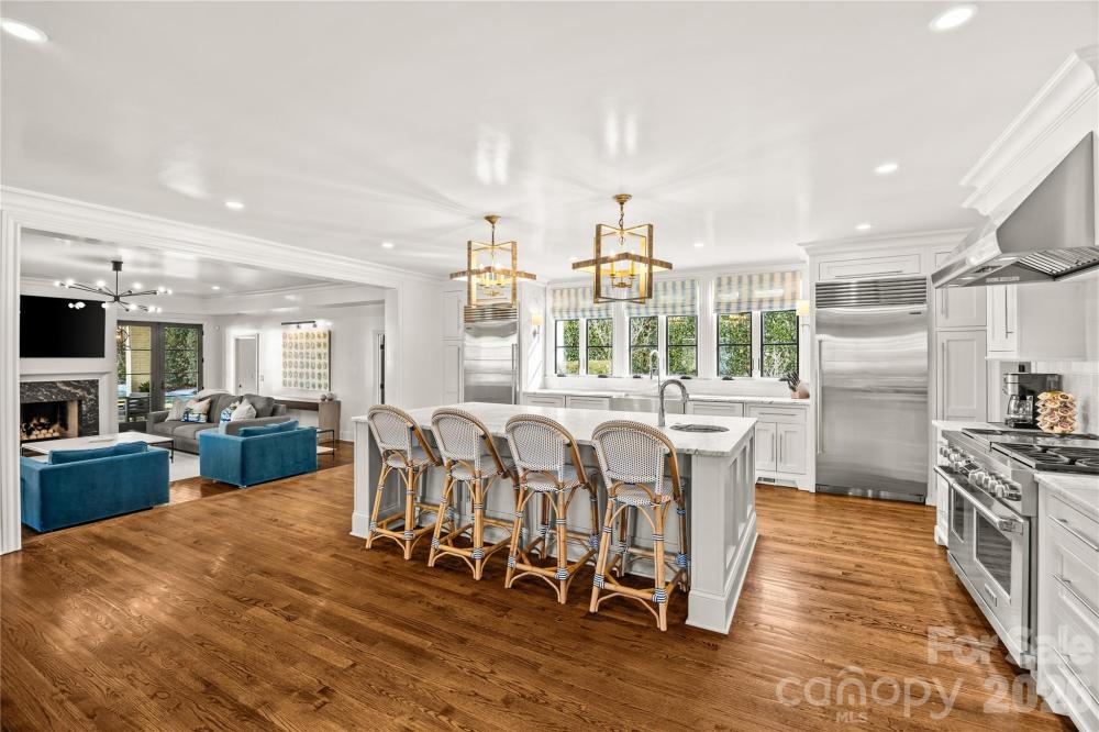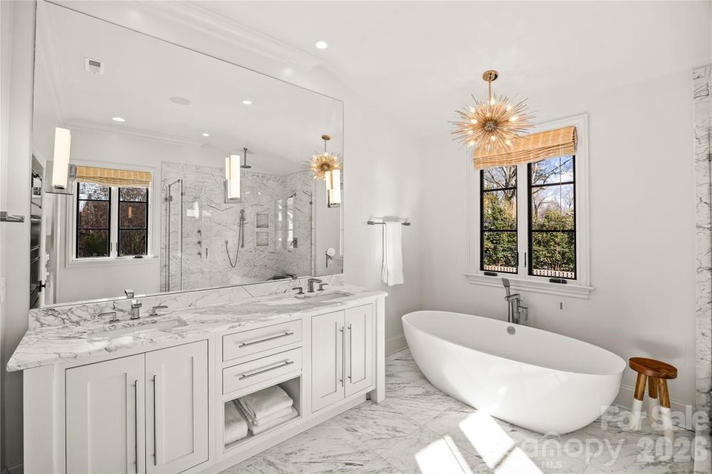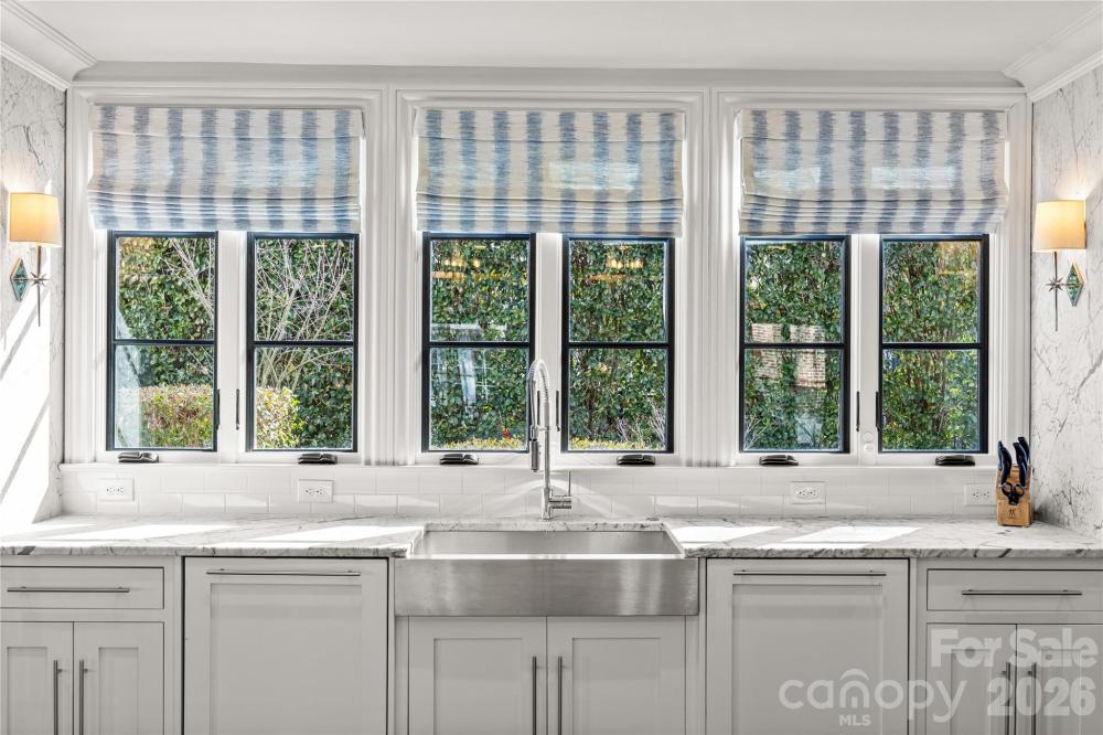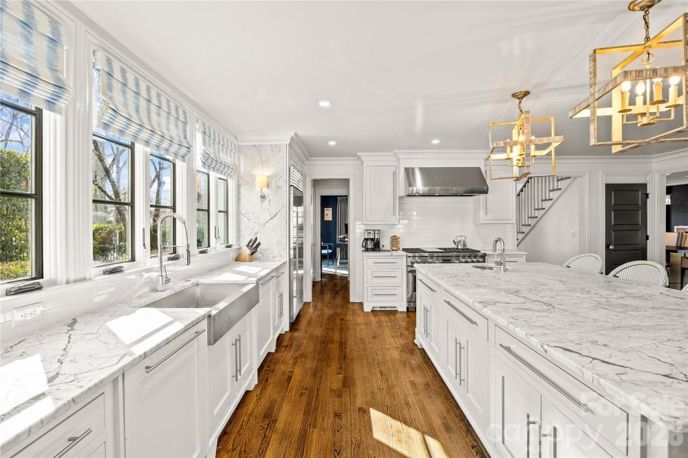 There are few addresses in Charlotte that carry the weight of Queens Road West, and fewer still that have been elevated to this standard. This stately Myers Park residence represents a ground-up transformation, where classic architecture meets modern precision on one of the city's most prestigious streets. Beyond the brick façade lies a home rebuilt for the way discerning buyers live today. The kitchen anchors the main level with marble surfaces stretching across a generous island, professional-caliber appliances including a six-burner gas range with dual ovens, paired dishwashers, and separate refrigeration and freezer columns. A farm sink and secondary prep sink with filtered water handle the demands of serious cooking, while the adjacent butler's pantry—outfitted with wine storage and an ice maker—ensures seamless entertaining. The main level flows with intention: a gracious living room, formal dining, office, great room, and breakfast area all connect while maintaining distinct purpose. Upstairs, five bedrooms include a primary suite designed as a true retreat with generous proportions, abundant natural light, a fireplace for cooler evenings, and a spa-caliber bath featuring a freestanding tub, marble shower with triple shower heads, double vanity, and private washroom. Five fireplaces punctuate the home, including one on the covered bluestone terrace where outdoor living extends well into the evening hours. A metal pergola overhead, landscape lighting throughout, and a fully fenced yard create an entertainer's backdrop rarely found at this scale. Practical considerations have been addressed with equal care: a whole-home generator provides peace of mind, laundry facilities serve both floors, and a walk-up attic offers future flexibility. Above the detached two-car garage, a complete guest suite with bedroom, full bath, and living space provides options for visitors, staff, or home office needs. The grounds span nearly half an acre with mature trees, in-ground irrigation, and infrastructure in place should a future pool be desired. Located within an easy walk of Myers Park Country Club, Freedom Park, and the boutiques and dining along Selwyn Avenue, this is a rare opportunity to own one of Charlotte's truly significant properties—reimagined for the next generation.