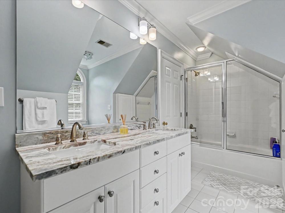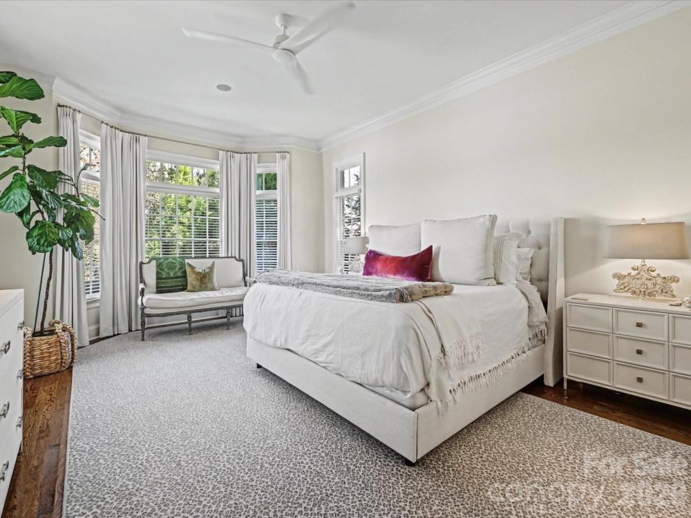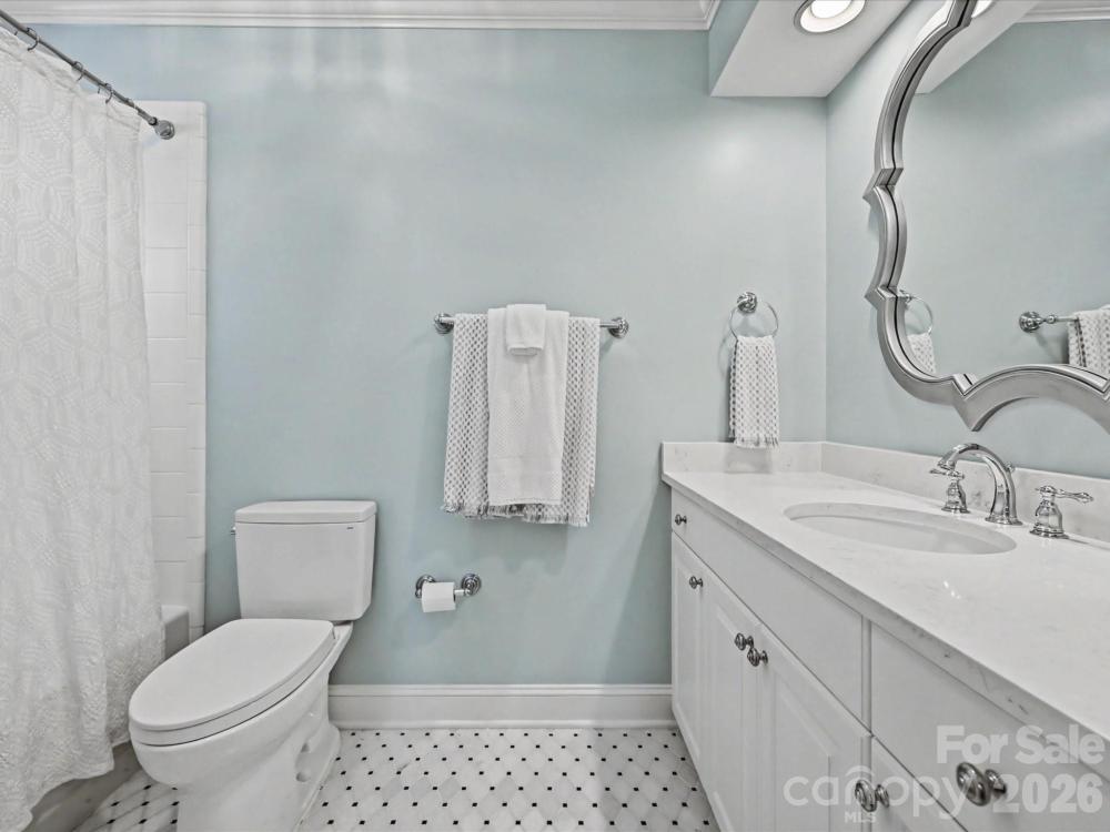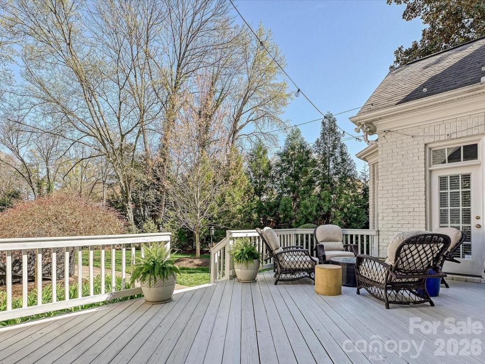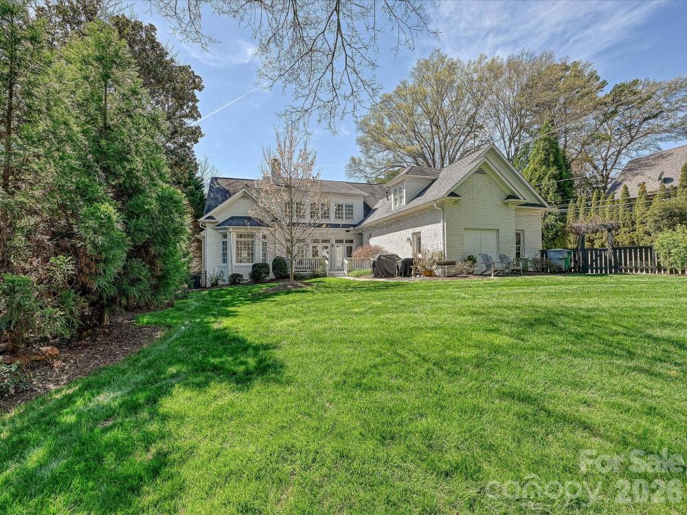 Beautiful white painted brick 1.5-story home on a flat, manicured lot with timeless curb appeal and an ideal layout. A welcoming foyer opens to the living and dining rooms with 10 foot ceilings. The great room features built-ins flanking the fireplace and a full wall of glass doors overlooking the back porch, filling the home with natural light. A wide arched openings lead to the lovely updated kitchen with white cabinetry, marble countertops, bar seating, and a sunny breakfast nook. The serene primary suite is located on the main level with a large ensuite bath, and walk-in closet. Front and rear staircases lead upstairs to 3 secondary bedrooms, 2 full baths plus a large bonus room. A fifth bedroom and full bathroom is also tucked upstairs privately at the back of the home—ideal for guests, a nanny suite, in-law suite, or flex space. Hard to find rear attached 2-car garage adds everyday ease. Welcome home!