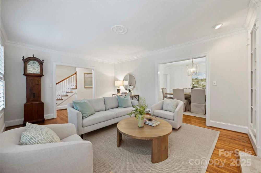 Beautiful two-story traditional home in one of Myers Park’s most coveted locations. Freshly painted in neutral tones with hardwood flooring throughout, this home features elegant formal living and dining rooms ideal for entertaining. The spacious kitchen, breakfast area, and family room are filled with natural light, and close by is a versatile playroom or office. Upstairs, the generous primary suite includes a large closet and bath, along with three additional bedrooms and two full baths. Enjoy a spectacular screened porch overlooking the landscaped, flat 0.4-acre yard. Recent updates include new light fixtures, ceiling fans, and carpet (October 2025). Walk to MPCC, Selwyn, AG, MPHS, and the shops and restaurants at Selwyn Corners - an unbeatable location!
