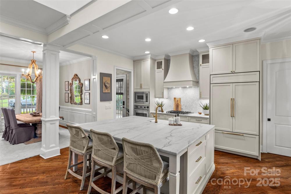 Nestled in the prestigious heart of Myers Park, this stunning, custom-built craftsman-style home offers a harmonious blend of elegance and modern convenience. As you step inside, you'll be captivated by the newly renovated kitchen, a culinary enthusiast's dream, featuring exquisite quartzite countertops and an oversized island, perfectly paired with a chic herringbone marble backsplash. The state-of-the-art appliances include a SubZero and panel-ready fridge/freezer combo, Viking gas cooktop, and Viking oven, ensuring every meal is a delight to prepare and serve. The expansive primary suite is a dream, with soaring 10-foot ceilings and elegant French doors that seamlessly connect the serene bedroom to the charming back porch. The newly renovated primary bath is a sanctuary in itself, boasting double sinks, a free-standing soaking tub, an oversized shower with dual shower heads, and generous storage. The home offers versatile living space with an additional bedroom or flex room on the main floor, while the upper level presents two large bedrooms, each with its own ensuite bath. Wine aficionados will appreciate the large temperature-controlled wine cellar in the basement, perfect for storing and showcasing collections. Outdoor living is equally impressive, featuring a wood-burning fireplace and a fully equipped outdoor kitchen, ideal for entertaining year-round. This exceptional property is perfectly situated by the greenway and is just moments away from the vibrant Freedom Park, offering a perfect blend of lifestyle and location. Discover the ultimate in luxury living in this remarkable Myers Park residence. Payhouse conveys