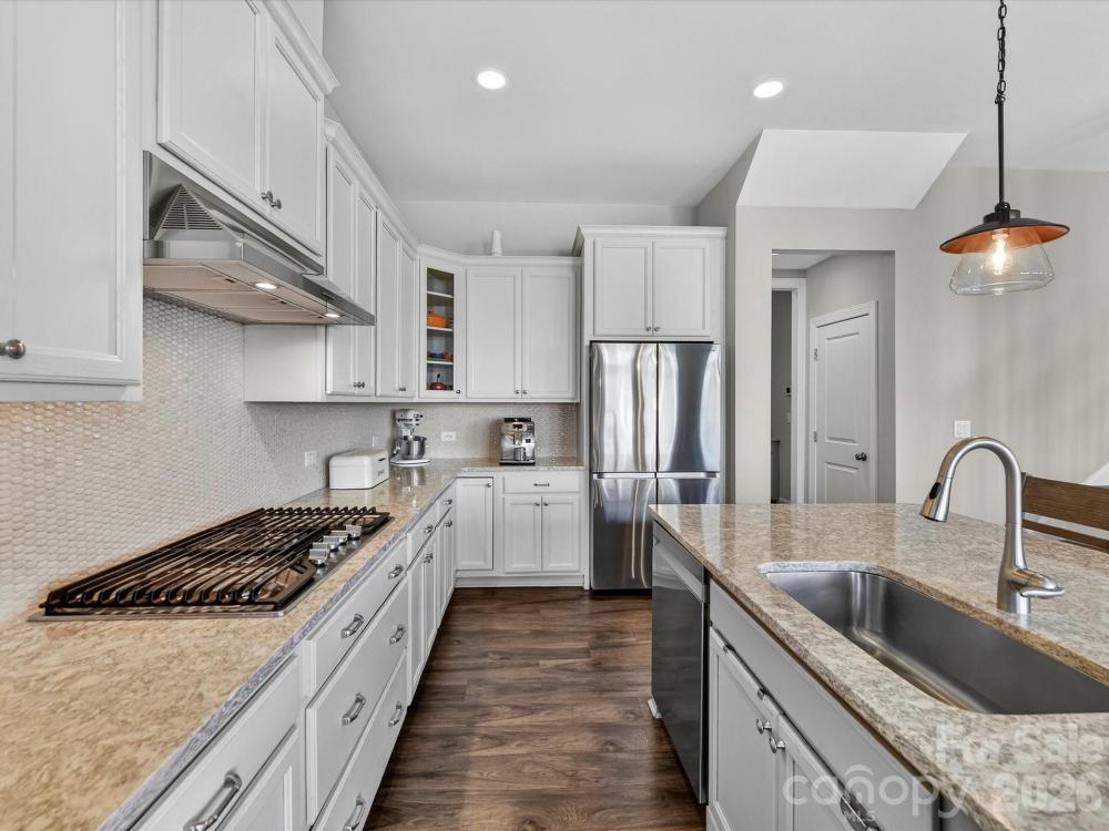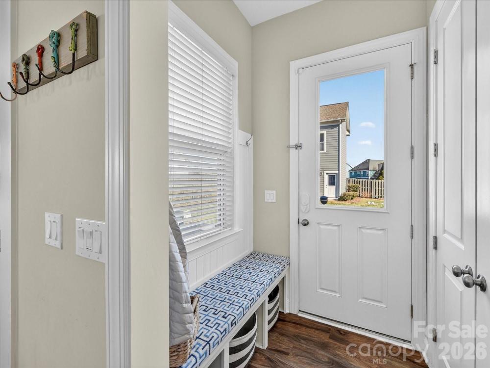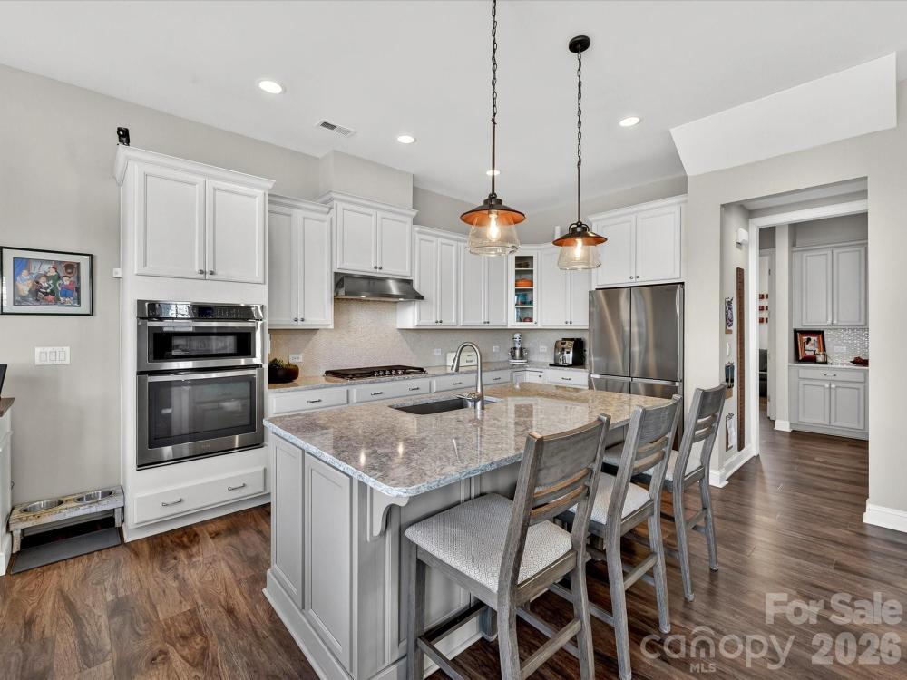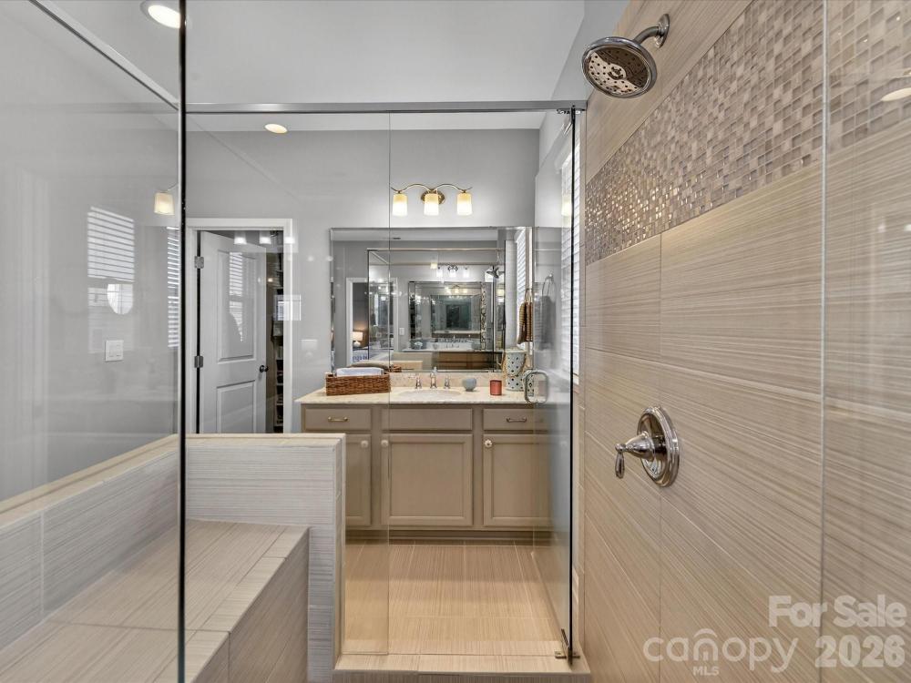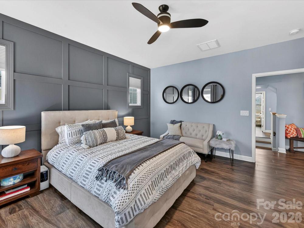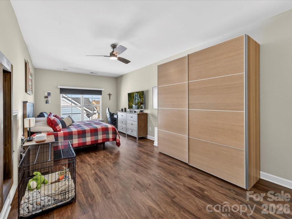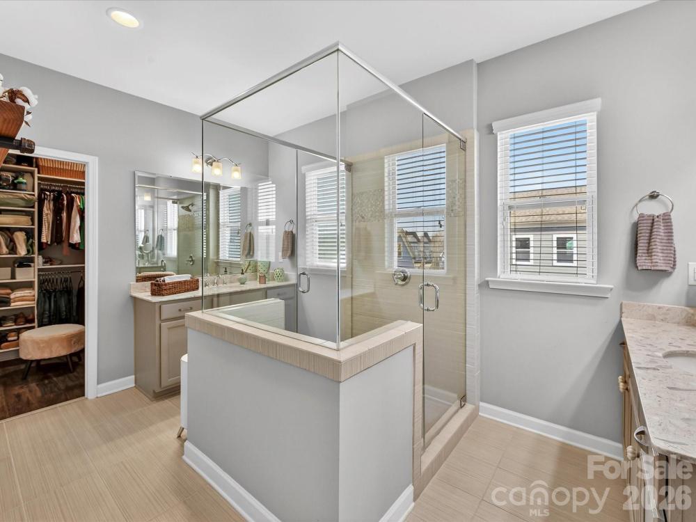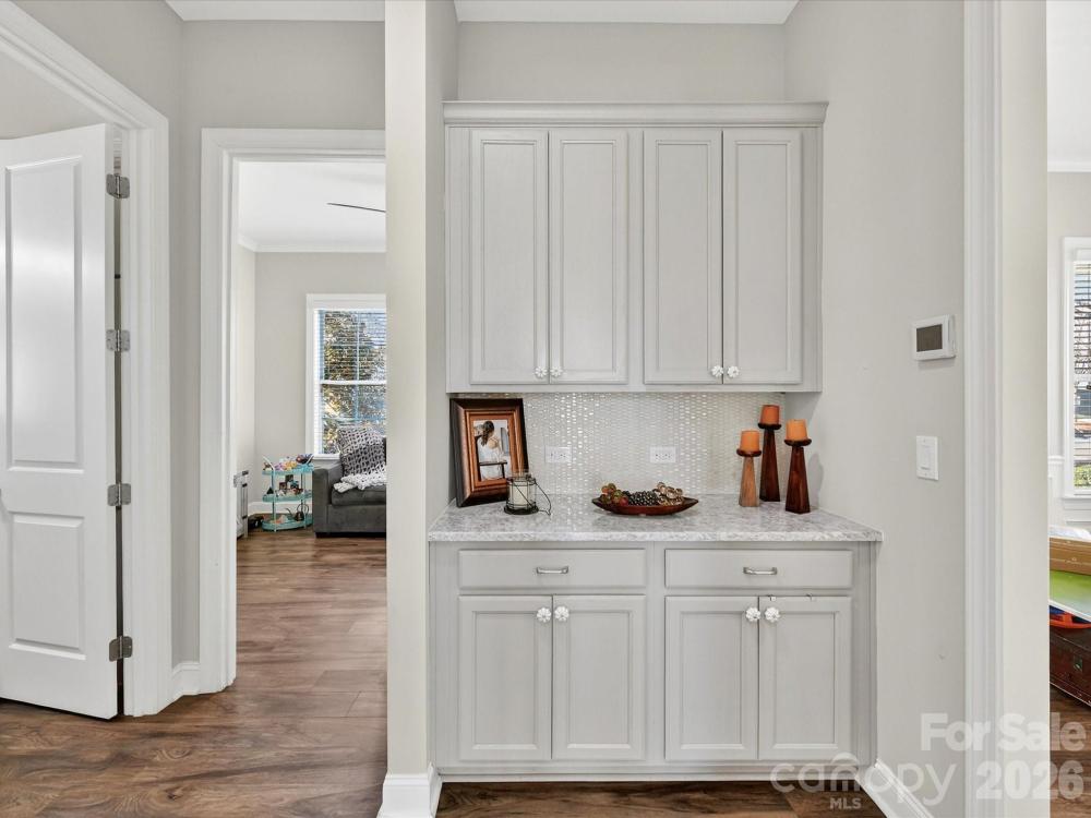 This charming 3-level Charleston-style home welcomes you with character at every turn. The inviting wraparound porch leads into a flexible floor plan featuring 6 bedrooms and 5 full bathrooms. Main level highlights include soaring 10’ ceilings and transom windows that evoke historic architectural elements. The open layout provides a spacious great room, complete with built-in bookcases flanking a gas fireplace. Low maintenance and durable LVP flooring throughout all living areas. At the center of the kitchen is a large island that serves double duty as a breakfast bar and prep area, adorned with quartz countertops and pendant lighting. Stainless steel appliances—gas cooktop, wall oven/microwave, and dishwasher—will please any chef. A butler’s pantry conveniently connects the kitchen to the formal dining room, which is currently set up as a playroom. On the main floor, a guest room adjoins a full bath with a step-in shower, making it ideal for guests, in-laws, or as a private office. At the back door, a drop station opens to a generous, flat fenced yard—perfect for pets and play—with lush landscaping that blooms throughout the warmer months and a spacious patio designed for outdoor entertaining. The detached oversized 2-car garage (21’ x 25’) is an exceptional bonus, offering a full walk-up attic with approximately 462 sq ft for storage or potential future finished space. The primary bedroom suite features a geometric accent wall, and a luxurious bathroom with a see-through shower and two walk-in closets. The third floor offers a second bedroom ensuite or versatile bonus room. Residents enjoy outstanding community amenities including tennis and pickleball courts, two resort-style pools, a clubhouse, playgrounds, and a dog park. The location is convenient to historic downtown Pineville, Ballantyne, and I-485. Make this home your very own!