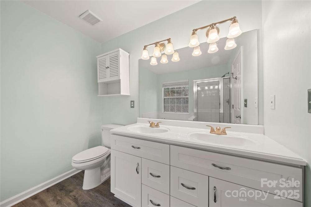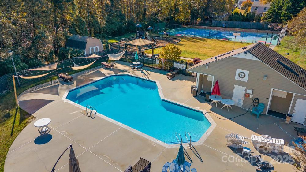 Welcome to 12635 Diamond Dr! Step inside to find an open concept layout featuring a two-story great room that flows into the dining area—perfect for everyday living and entertaining. New LVP and carpet were installed in 2019, adding a fresh, updated feel throughout the home. The kitchen, a true standout, was updated in 2019 to include quartzite countertops, soft-close cabinetry, a farmhouse-style sink, stainless steel appliances, and a charming breakfast nook. It opens directly to the family room, where a gas fireplace creates an inviting gathering space. A half bath completes the main level. Upstairs, you’ll find the primary suite featuring a tray ceiling and walk-in closet. The ensuite bath includes a double vanity, walk-in shower, and a soaking tub. Three additional bedrooms, a full bath, and a conveniently located laundry room complete the upper level. Stone composite flooring was installed in the upstairs bathrooms and laundry room in 2019. Outside, enjoy a fenced backyard with a fire pit, plus a shed for extra storage—a great space for play, pets, or peaceful evenings outdoors. The expansive back deck, freshly repainted in 2025, ideal for grilling, relaxing, or hosting friends. The home also includes a termite bond which has been in place since 2020 through Aruza Pest Control for added peace of mind. Residents enjoy outstanding community amenities including a pool, playground, sport court, pond, and walking trails. Plus, you’re just three miles from The Bowl at Ballantyne, offering shopping, dining, and The Amp—an exciting destination for live music and entertainment!