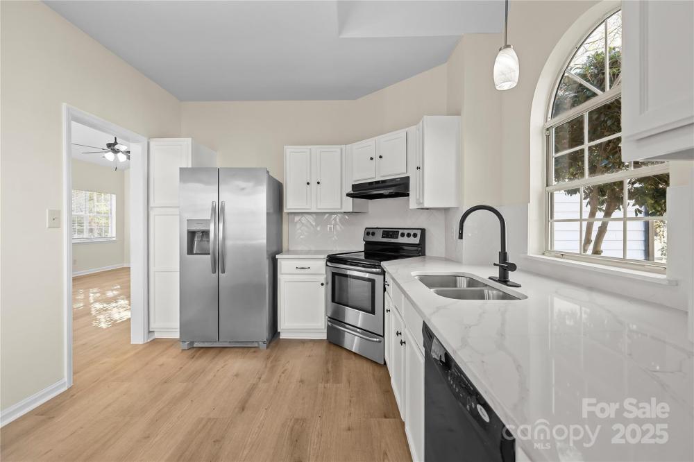 Welcome to “Move-In Ready” 13309 Baker Mills Road. Beautiful & totally renovated 3 BR / 2 BA Ranch located in the sought after Danby Community – a quiet & convenient area of Pineville + super close to Ballantyne and the New Ballantyne Bowl. This attractive home sits on a flat, usable lot (perfect for that in-ground pool you have been wanting) with No HOA, offering comfort, privacy, and flexibility. Step inside to discover a fresh, modern interior featuring brand-new LVP flooring, updated modern paint throughout, and modernized quartz countertops in both the kitchen and primary bath. The bright, open layout makes everyday living effortless, while the single-level design provides easy accessibility for all. Outside, the large level backyard offers plenty of room for outdoor living, gardening, pets, or future projects. With No HOA restrictions, you have the freedom to truly make this property your own. This home delivers the perfect blend of style, space, and convenience while the neighborhood’s prime location provides easy access to nearby Ballantyne shopping, dining, parks, and quick connectivity to I-485, Ballantyne, Blakeney, and all of South Charlotte. Do Not Miss The Opportunity To Own This Exceptional Home In A Prime Location. Do NOT Wait On This One – Bring Your Offer Today! Priced Right For Quick Sale.