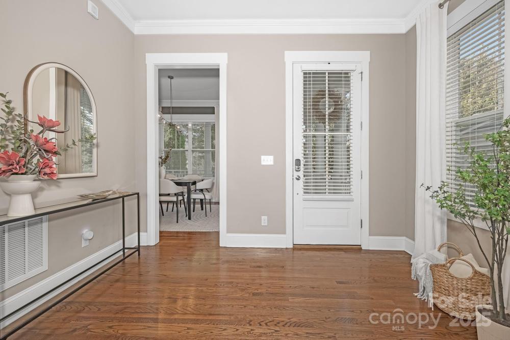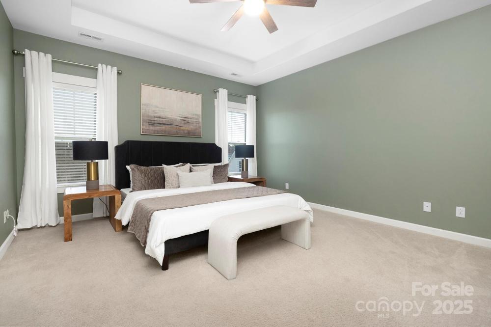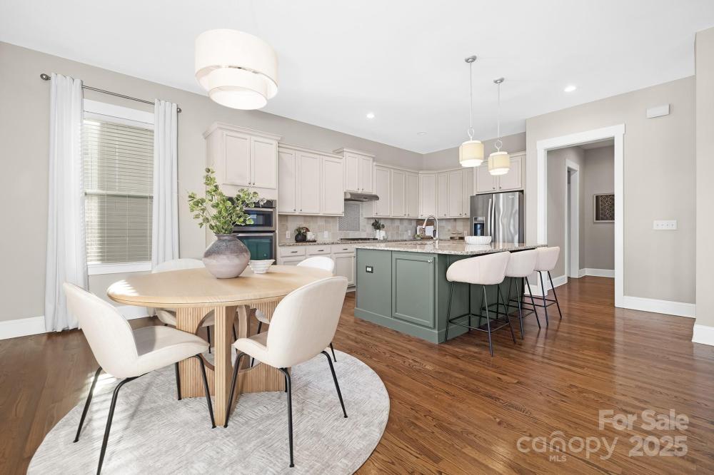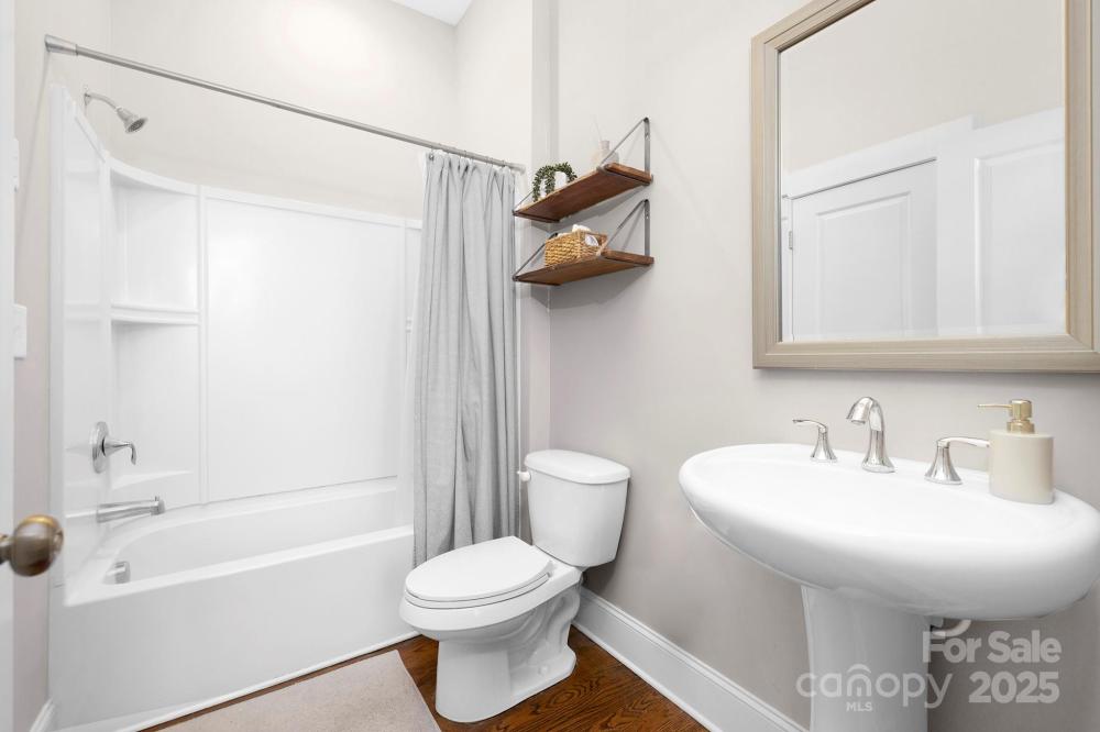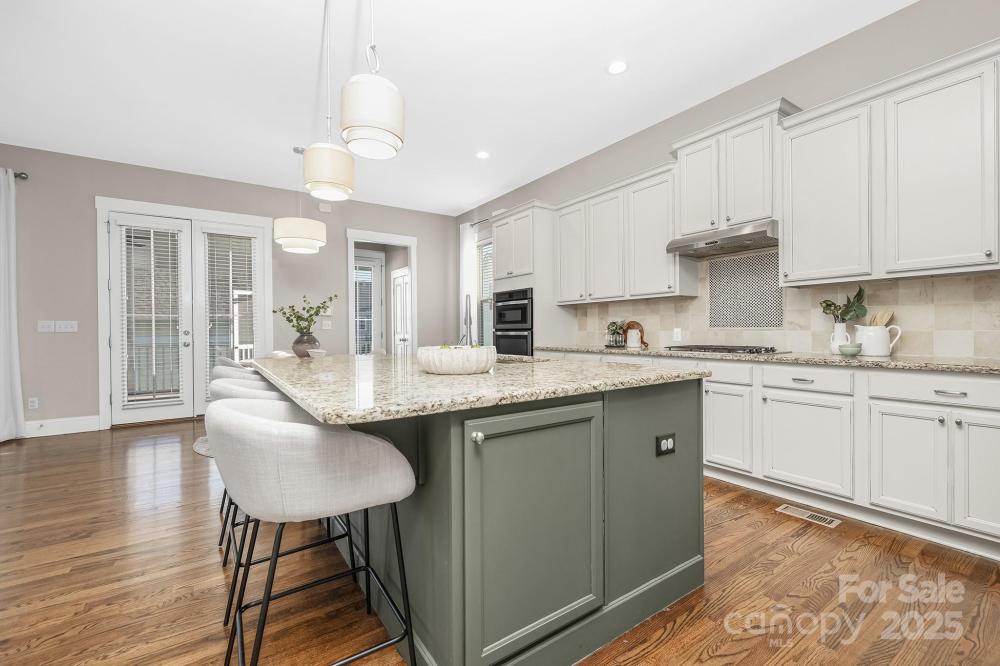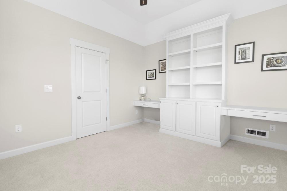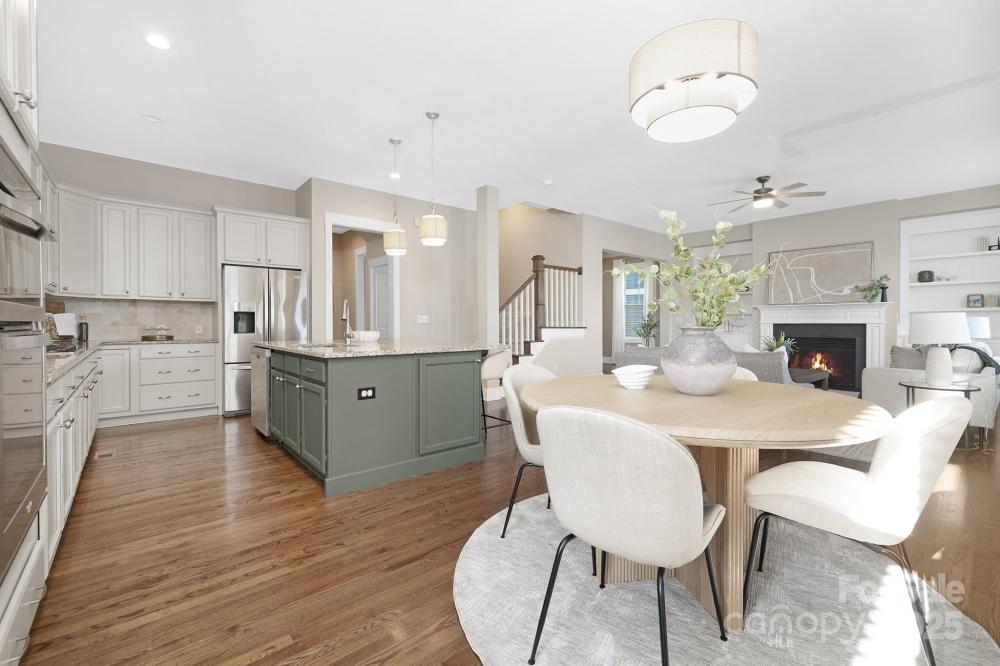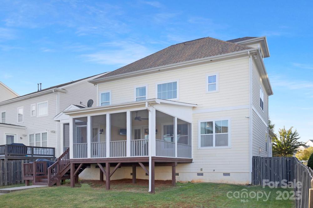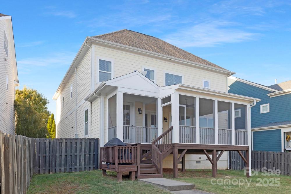 Welcome to McCullough — where tree-lined streets, timeless architecture, and resort-style amenities create an inviting lifestyle. This 3-story Charleston-inspired home by John Weiland blends elegance and functionality with striking curb appeal and a light-filled interior designed for both everyday living and entertaining. The main level features soaring ceilings, detailed moldings, and an open flow from the formal dining room to the spacious living area with a gas fireplace. The gourmet kitchen offers warm white cabinetry, granite countertops, double ovens, a gas range, and a breakfast nook. A main-level guest suite with a full bath adds flexibility. Upstairs, the private primary suite includes two walk-in closets and a large bath with dual vanities, a garden tub, and a separate shower. Two additional bedrooms and a versatile loft complete the second floor. The third level provides even more space with a guest suite, full bath, and office with built-in desks and custom bookcases. Enjoy the fenced backyard with a screened porch—perfect for morning coffee or evening gatherings. A detached 2-car garage with upper storage and the green space across the street add both function and charm. Residents enjoy McCullough’s resort-style pool, tennis courts, playgrounds, walking trails, and community green spaces—all minutes from historic downtown Pineville, Ballantyne, and I-485.