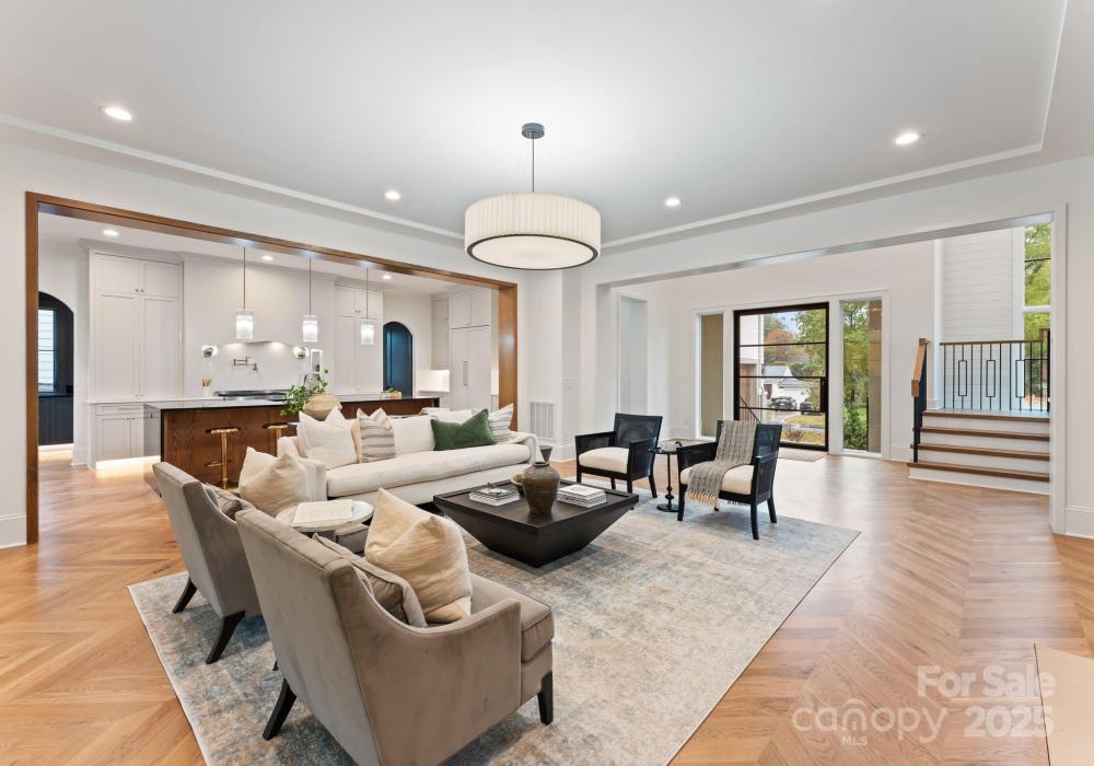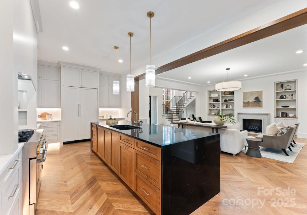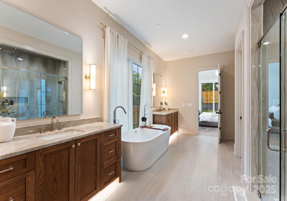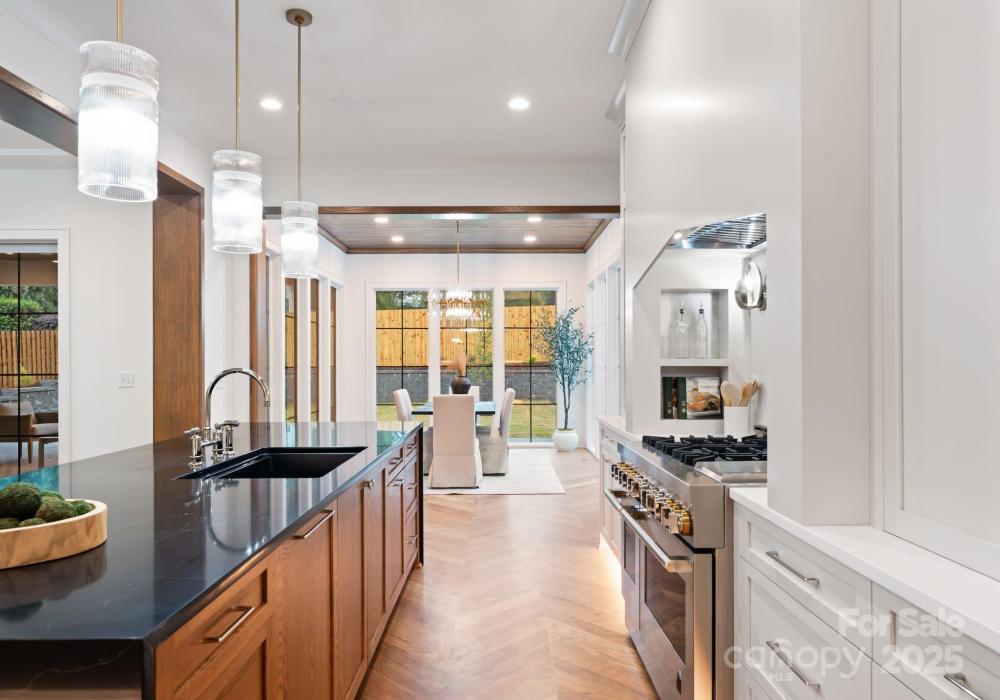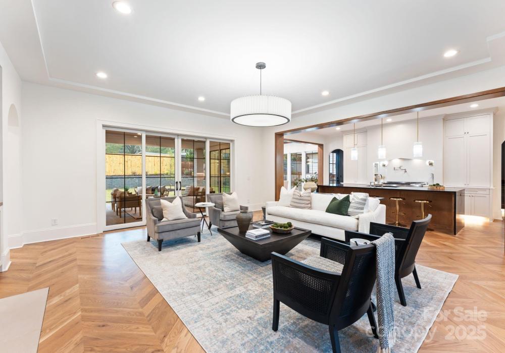 Welcome to Keen Building Company’s 5,036 square-foot luxury new build in the sought after Sedgefield neighborhood. The front elevation of this home features full masonry construction, an oversized modern steel-frame pivot door, a custom wood garage door, a landscaped courtyard driveway and a dramatic glass tower of windows showcasing the floating staircase and oversized chandelier. The outdoor living area includes a spacious covered porch with a fireplace and an uncovered porch with a built-in grilling station. Inside, the impressive two-story foyer with its floating staircase creates a grand entrance filled with natural light and an open, airy feel. This home offers five bedrooms including two primary suites (one on the main level and one upstairs) and five and a half bathrooms. The kitchen features a high end paneled appliance package, a large island, and a walk through scullery with an expansive secondary appliance setup, functioning as a secondary kitchen. Additional highlights include a large flex/game room with a TV entertainment area, dining space, and wet bar. The home also includes an advanced tech package with a built-in Sonos premium speaker system, Eero Pro access points, and a Ubiquiti G5 camera system. Habersham Drive is a quiet, prestigious street and the only one in Sedgefield with a tree-lined median. This is your opportunity to live on one of the neighborhood’s most desirable streets in a thoughtfully designed luxury home featuring exceptional craftsmanship and elevated finishes throughout.