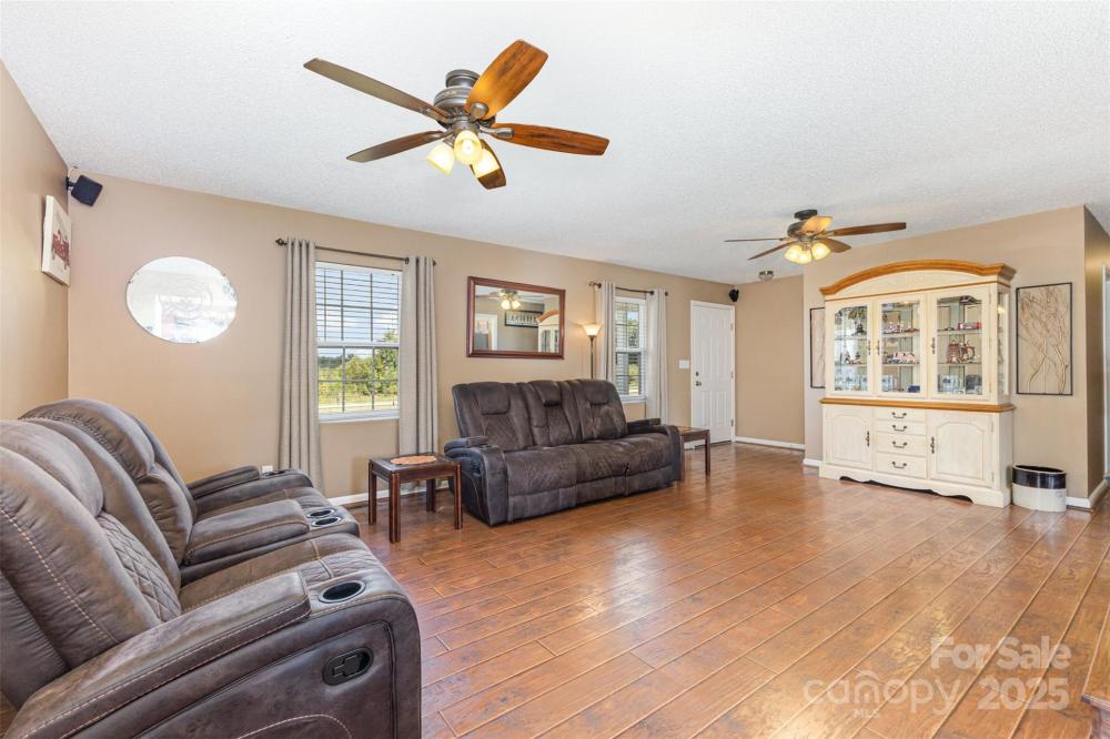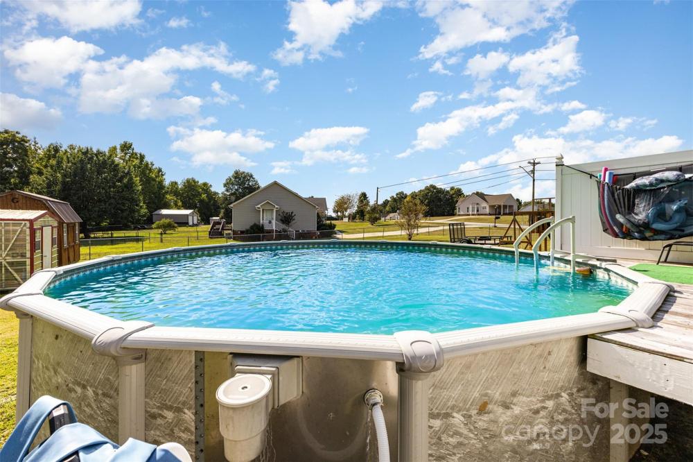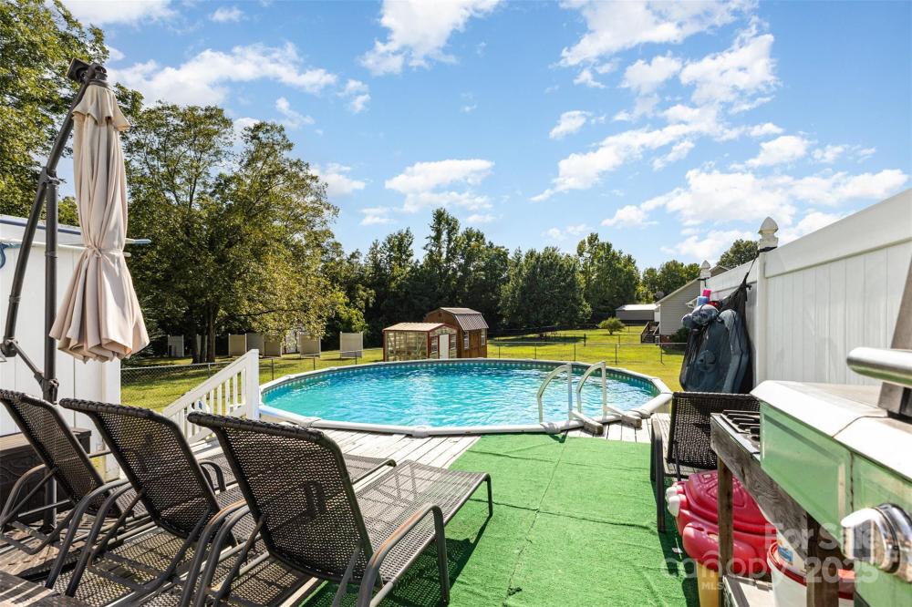 Welcome to your own peaceful paradise! Soak up the quiet privacy of this ranch style home that is located on a half acre corner lot with above ground backyard pool and enough space to build the outdoor oasis of your dreams. Inside the home has a bright and open flow. Enter into the living room with rich wooden floors, dual ceiling fans, and a focal gas fireplace creating a cozy hosting atmosphere. 2 extra wide doorways lead to formal dining room & spacious kitchen. Option to have a breakfast nook in the kitchen or space for a side island to add more storage. Primary bedroom has attached full bath. There are 2 extra bedrooms perfect for family, guests, or a home office area and a full hall bath. Out back, your relaxation awaits with a tiered deck system leading to the above-ground pool, perfect for summer memories. Back yard is fully fenced in for a safe area to play. Covered carport parking w/ storage room + backyard storage buildings are great for outdoor equipment and tools. If you're searching for peace and privacy while still being just 10 minutes to the local shops & restaurants in Lancaster, look no further! Assumable loan available!