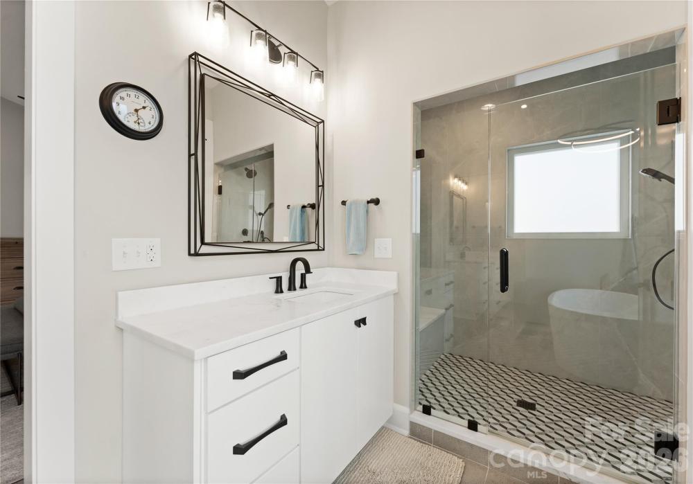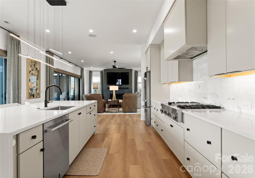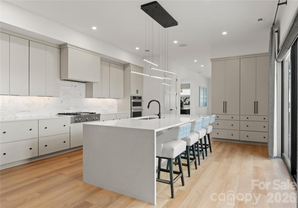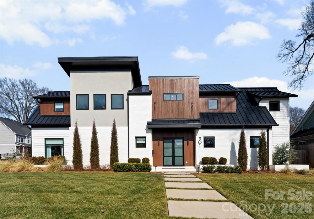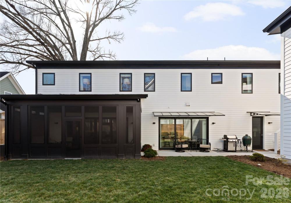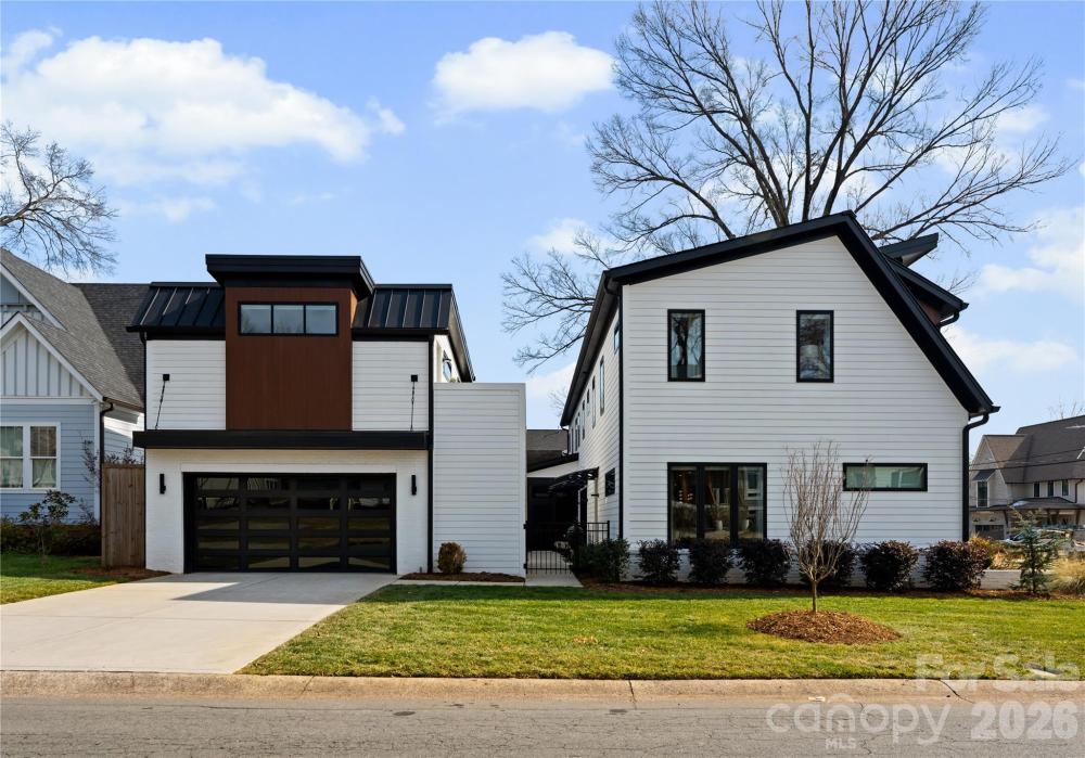 One-of-a-kind contemporary home in the heart of Sedgefield, offering a rare opportunity to own a truly distinctive property just steps from the Rail Trail, South End, and only minutes to Uptown. Perfectly positioned on a large corner lot, this home combines privacy and convenience with a fully fenced yard and exceptional outdoor living, including a spacious screened porch ideal for year-round enjoyment. Designed with a wide, expansive footprint and modern open-concept living in mind, the main level is both functional and impressive. The luxury kitchen features a massive island, custom cabinetry, and top-of-the-line appliances, seamlessly flowing into the oversized living room. A sleek linear fireplace and stylish built-in bar create the ultimate entertaining space, while large doors open directly to the screened porch for effortless indoor-outdoor living. The main floor also offers a separate dining room and a dedicated office, perfect for working from home. Upstairs, the gorgeous primary suite serves as a private retreat with a generous walk-in closet, spa-inspired bath, and convenient full-size laundry room. Three additional bedrooms and two full bathrooms provide ample space for family and guests. A detached two-car garage includes a 500+ square foot apartment with a full bath and living area, with room to add a kitchenette—ideal for guests, rental income, or a studio. This truly unique home offers a layout and features rarely found in the area, and opportunities like this do not come on the market often.