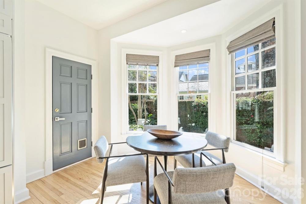 Welcome to 1244 Dilworth Crescent Row — where timeless neighborhood charm meets a beautifully reimagined interior in the heart of Dilworth. Built in 1993 and extensively renovated in 2020, this sophisticated townhome offers a bright, open floor plan with nearly 10-foot ceilings and refined finishes throughout. The main level was thoughtfully redesigned to create seamless flow between living, dining, and kitchen spaces — ideal for both everyday living and entertaining. The gourmet kitchen is a true showpiece, featuring a chef’s dual-fuel range, expansive quartz countertops, a statement island with seating for five, built-in counter-depth refrigerator, custom cabinetry with extra-depth uppers, and abundant storage. A stylish bar area with black walnut butcher block, wine fridge, tile backsplash, and dedicated bottle storage adds warmth and character to the dining space. A charming bay window overlooking the private courtyard provides the perfect nook for casual dining or a home workspace. Upstairs, hardwood floors continue through the hallway and spacious primary suite, which offers two walk-in closets and a fully renovated spa-inspired bath with soaking tub, oversized marble shower, dual vanities, and heated floors. Two additional bedrooms feature new carpet and skyline views, complemented by a beautifully updated secondary bath. The versatile lower level has been newly carpeted and refreshed — perfect for a home office, fitness studio, media room, or guest retreat. Outdoor living is equally inviting with a private courtyard patio complete with fountain and lush greenery — ideal for grilling, dining al fresco, or relaxing with your favorite beverage. One of the few homes in the community offering two garages, this property also includes driveway parking and eligibility for City of Charlotte F-permit street parking. Unbeatable location just blocks from Atrium Health, Levine Cancer Institute, Wake Forest University School of Medicine, Dowd YMCA, and The Pearl District. Enjoy walkable access to East Boulevard dining and shopping, Uptown, South End, the Arts District, and Carolina Panthers games. A rare opportunity to own a meticulously updated home in one of Charlotte’s most desirable and connected neighborhoods. SHOWINGS START 2/26/26 at 3:00