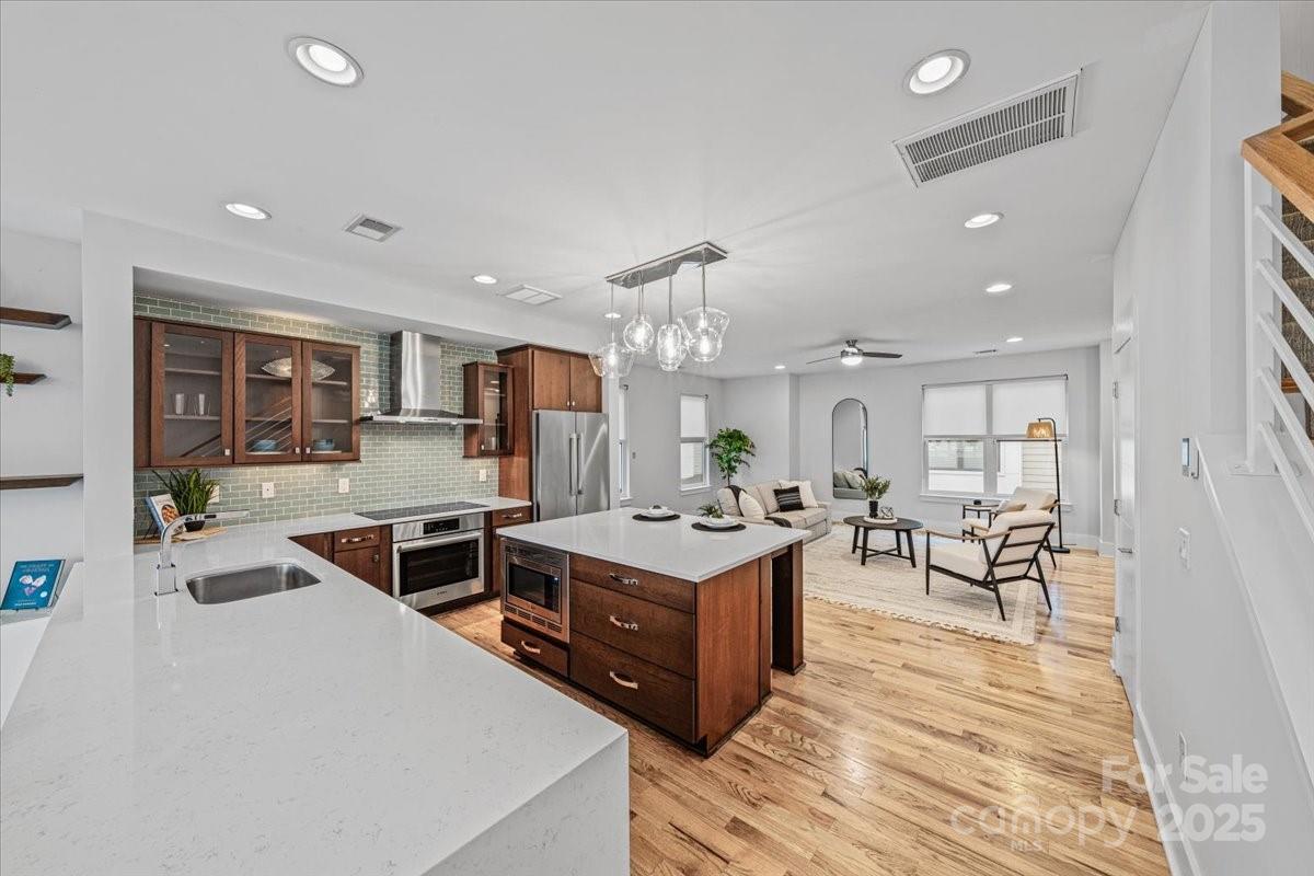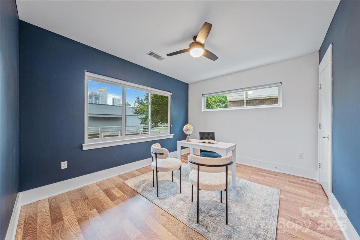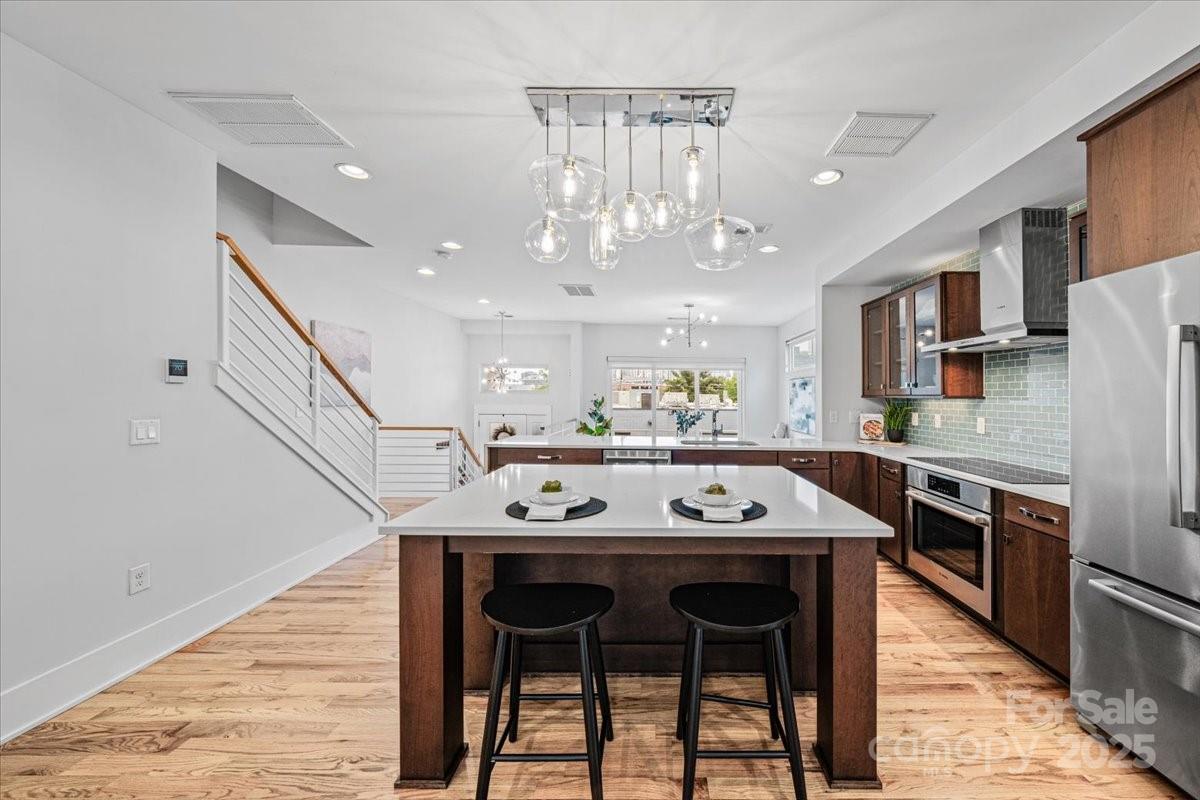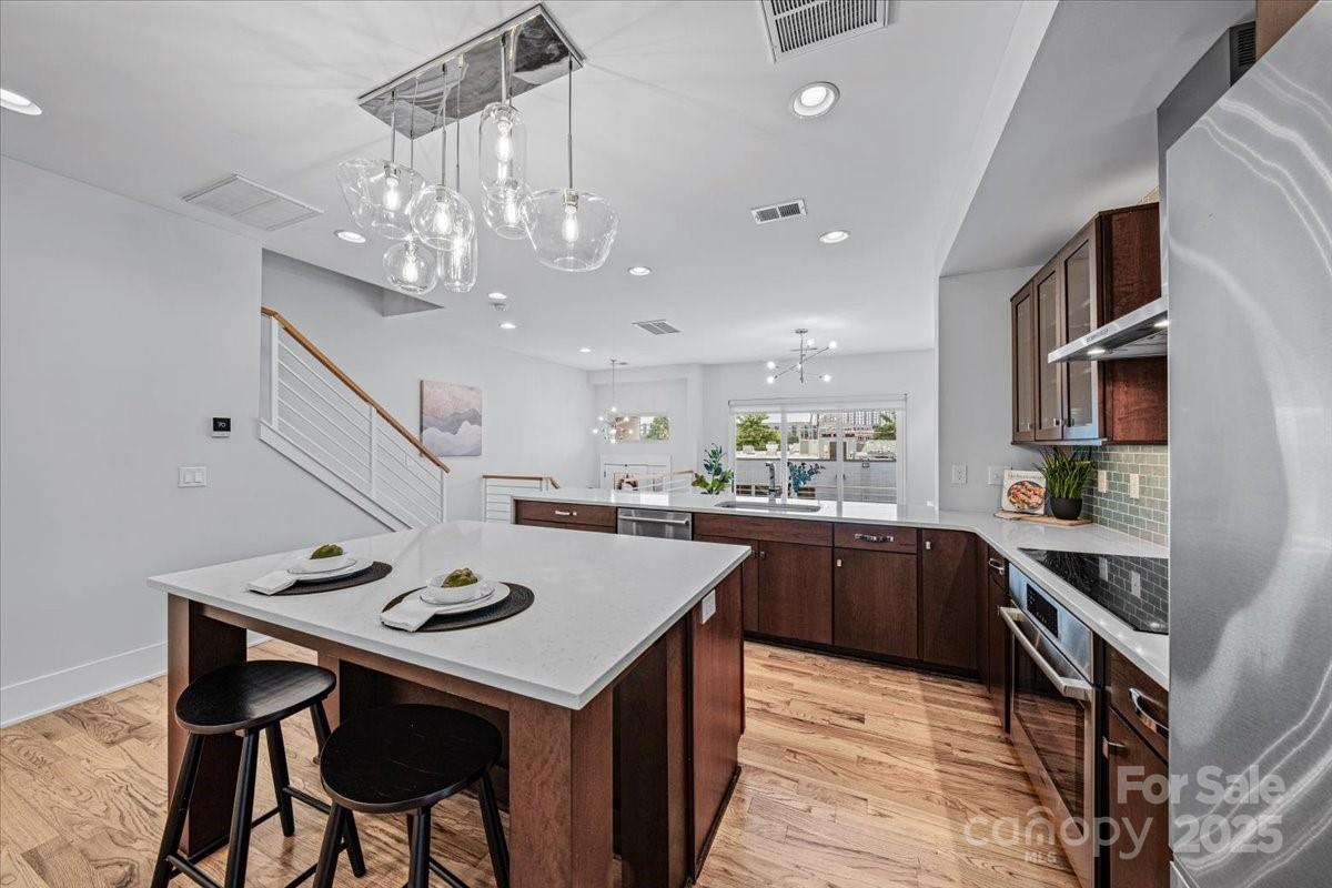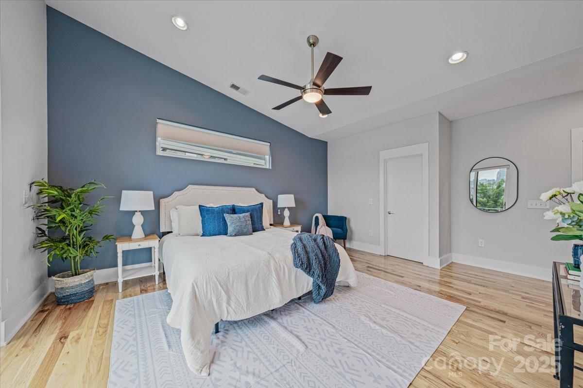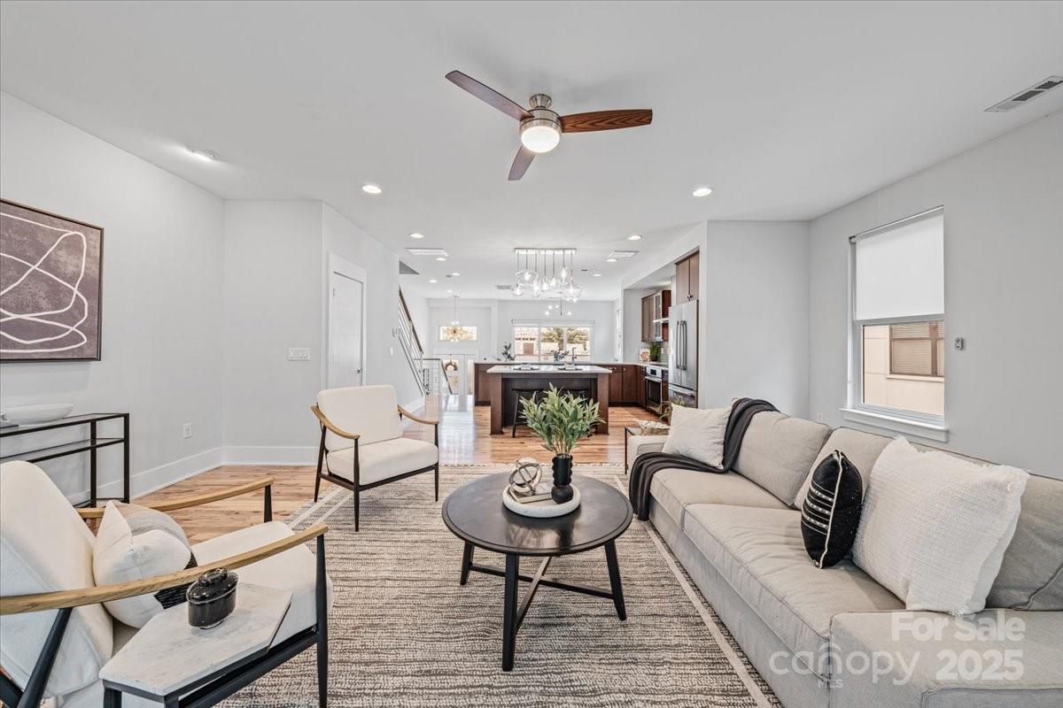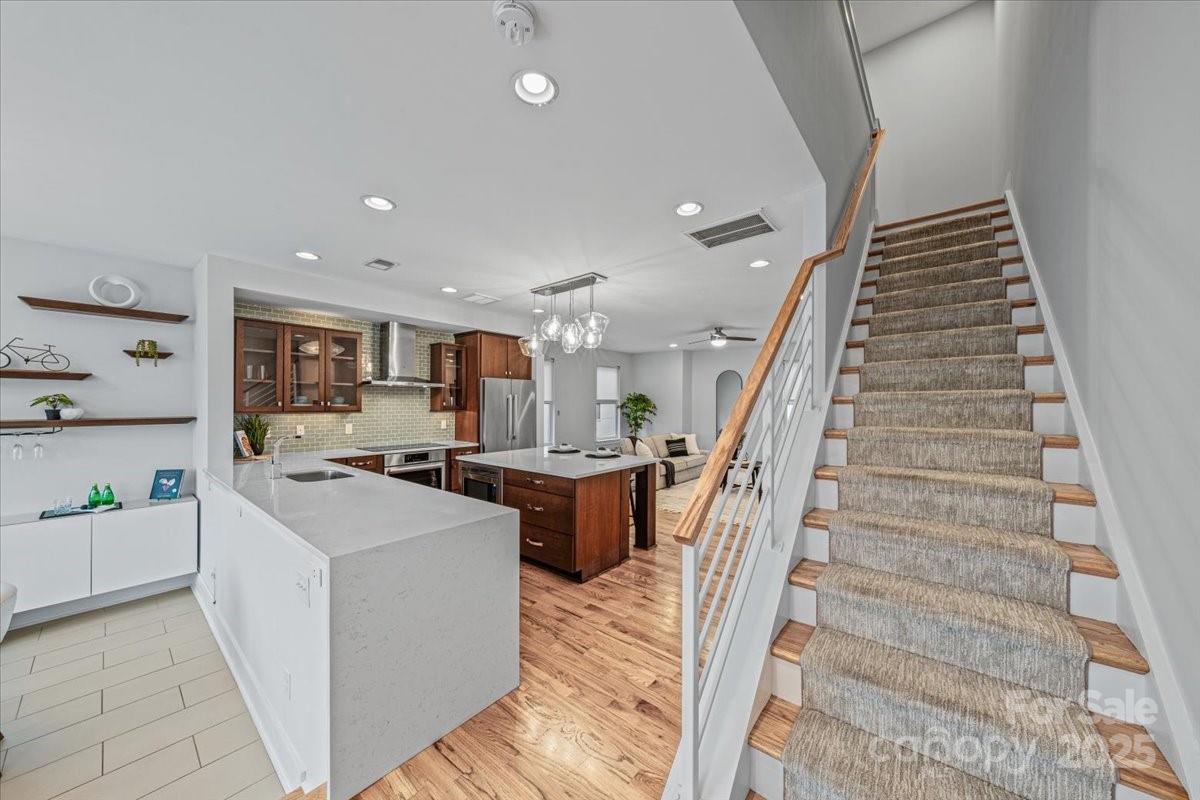 Rare end-unit in South End’s coveted Lumina community, steps from dining, shops, breweries, and light rail. This 3-bed, 3-bath, 3-story townhome with 2-car rear-load garage blends luxury finishes with smart, energy-efficient upgrades. Bright open floor plan features site-finished hardwoods, gourmet kitchen with Bosch appliances, wine fridge, quartz counters, and upgraded cabinetry. Extra windows—exclusive to end-units—fill the home with natural light. Each bedroom offers its own en-suite; the primary boasts a walk-in closet, Juliet balcony, and unobstructed Uptown skyline views. Recent upgrades include new HVAC (2025) with 3 smart thermostats, built-in air purification (2023), and CPI security. Enjoy a fenced courtyard, private balcony, and low-maintenance living with HOA covering exterior, landscaping, water, sewer & trash.