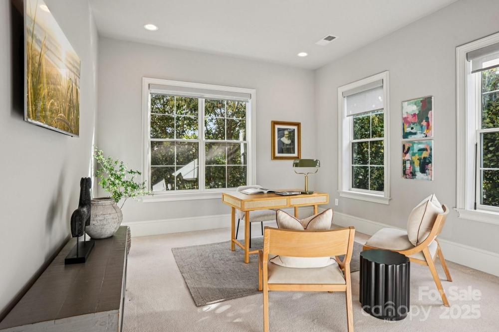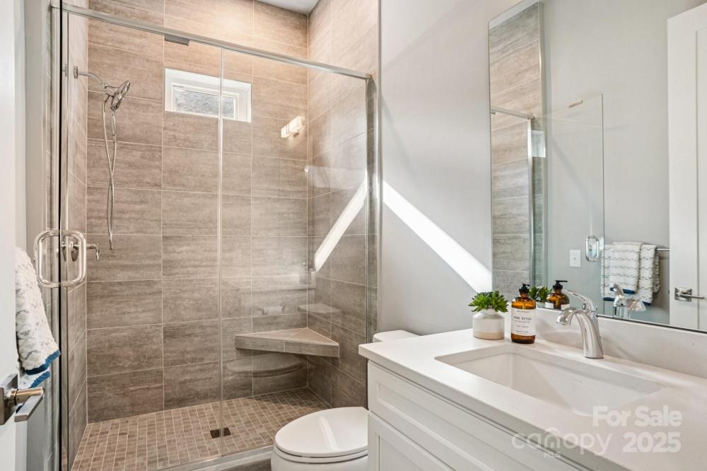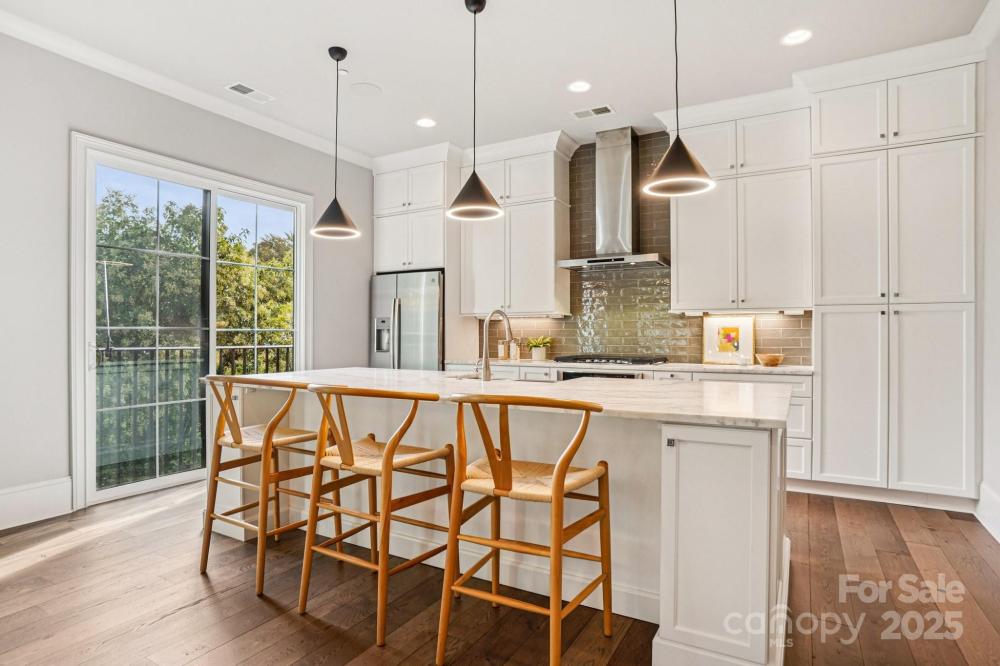 Stunning property in the heart of Dilworth, offering the rare blend of style, comfort, and unbeatable walkability. Built by Simonini, this end-unit condo showcases timeless quality with a sleek, modern open layout designed for today’s lifestyle. Light-filled interiors feature hardwood floors, custom built-ins with wine fridge, a modern mantel, and a chef’s kitchen with upgraded hood, marble countertops, and high-end appliances. Opposing doors with retractable screens connect the living area and terrace, welcoming in the breeze on beautiful Charlotte days and creating a seamless indoor-outdoor flow. The three-level layout is thoughtfully designed, featuring a private first-floor guest suite with a full bath that also works perfectly as a private home office. Upstairs, the luxurious primary suite offers a spa-like bath with a rainhead shower and custom California Closets. Built-in storage is thoughtfully integrated throughout the home, combining function with style. A rare HOA adds even more convenience by covering insurance inside the home, making this a true turnkey Charlotte lifestyle. With a side-by-side two-car garage, enhanced privacy, and an unbeatable location just steps from East Blvd dining, Freedom Park, South End, and Uptown, this home has everything you need for modern city living.