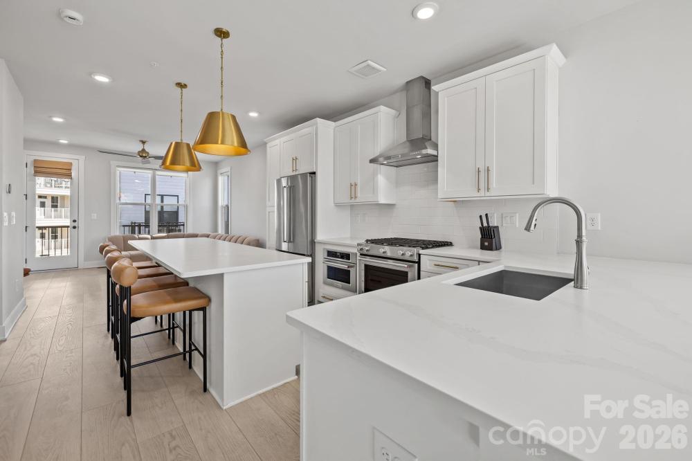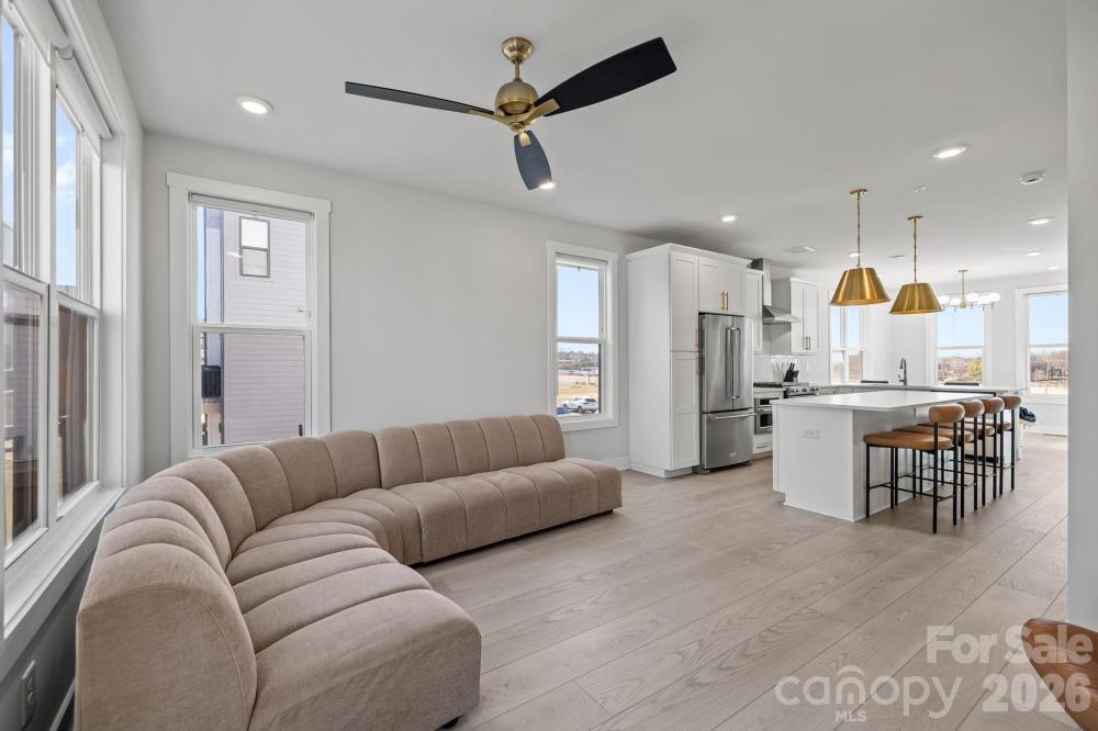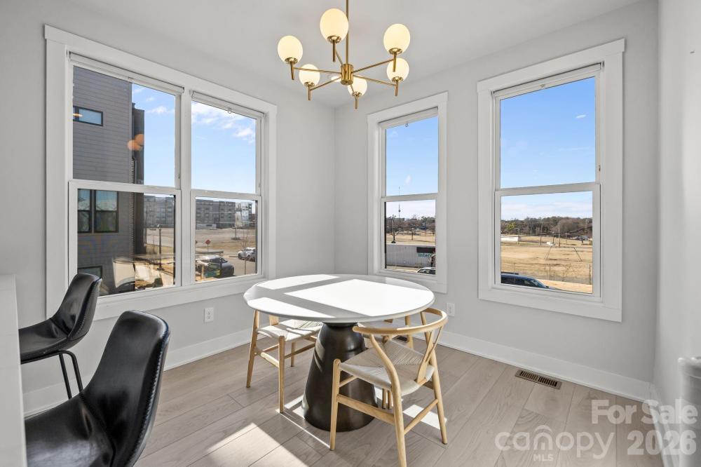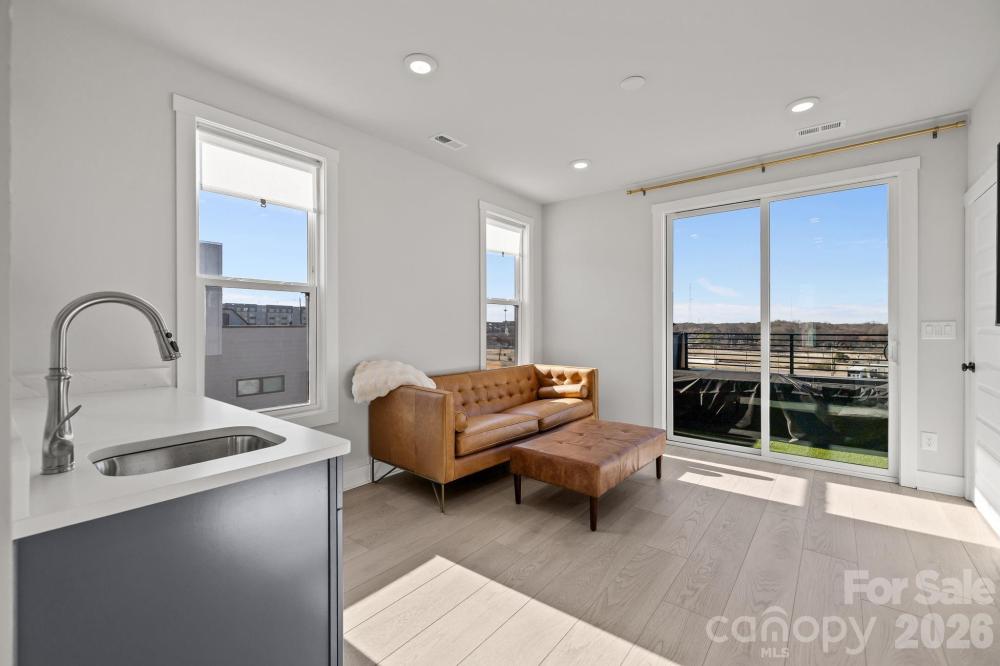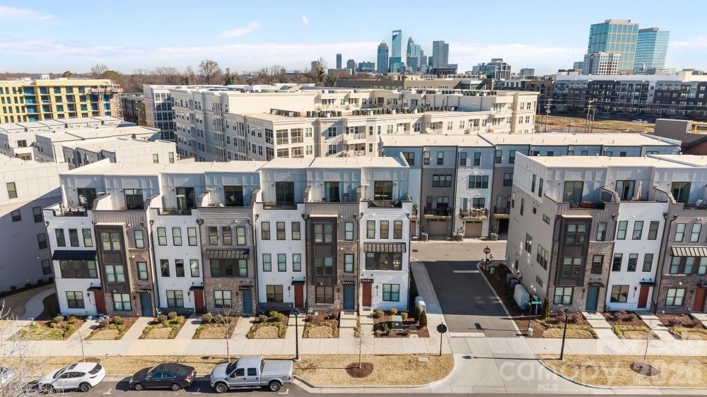 Experience elevated South End living in this exceptional 2023-built end-unit townhome, offering 3 bedrooms, 3.5 bathrooms, plus a versatile fourth-level retreat. Flooded with natural light, this residence showcases high-end finishes throughout, including a designer kitchen with a statement island, gas range with vented hood, built-in microwave, and dedicated eat-in area. The primary suite features a custom closet system and a spa-inspired bath with designer tile selections. Upstairs, the fourth level provides a private full bedroom and bath, loft-style lounge, wet bar with beverage cooler, and access to a stunning sky terrace—perfect for entertaining or relaxing above the city. Additional highlights include updated window treatments, an oversized tandem 2-car garage, and a premier South End location just steps to the light rail, shopping, dining, and entertainment. Ideal as a luxury residence or investment opportunity.