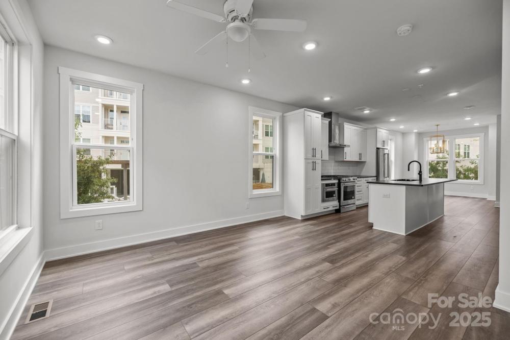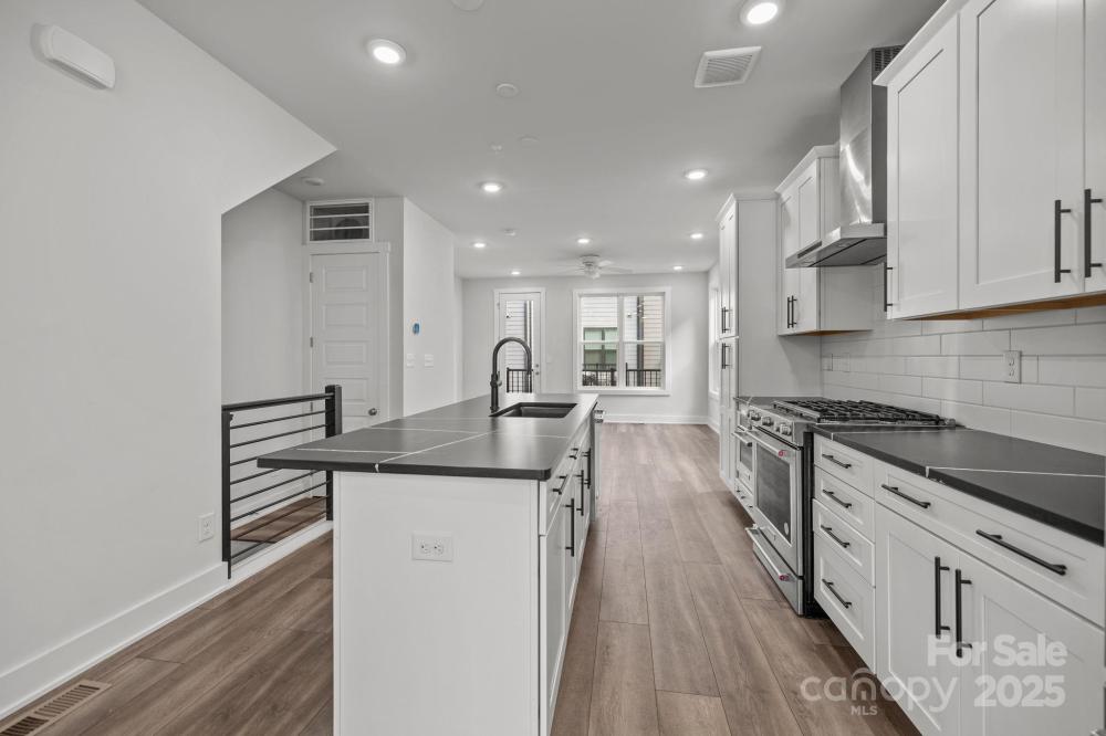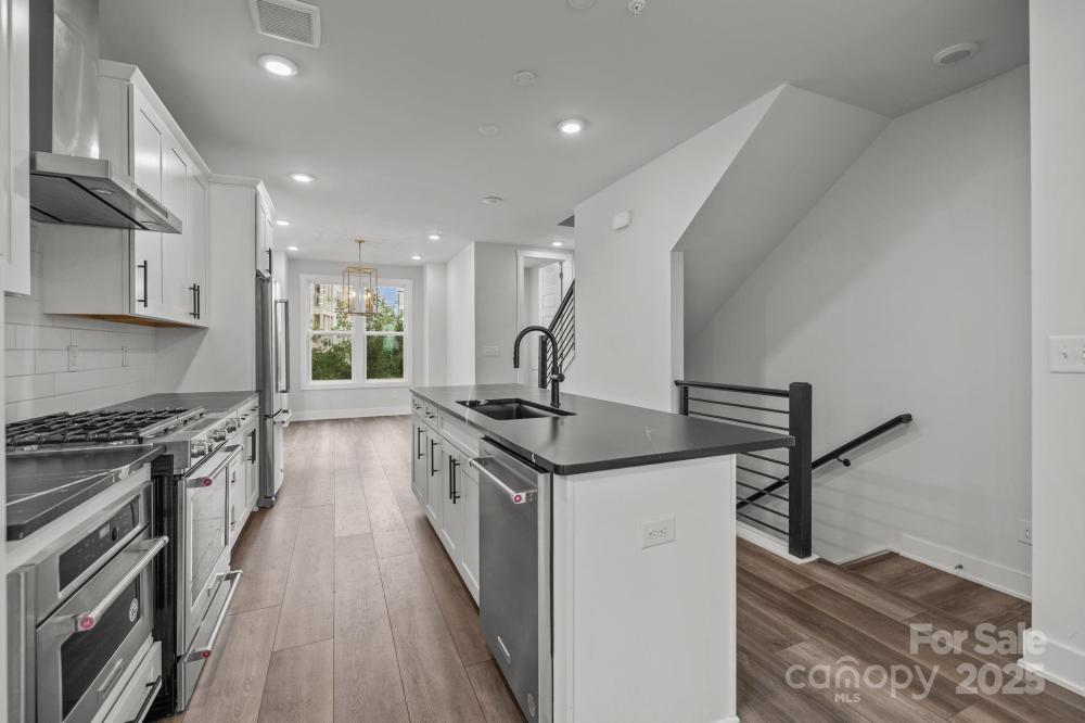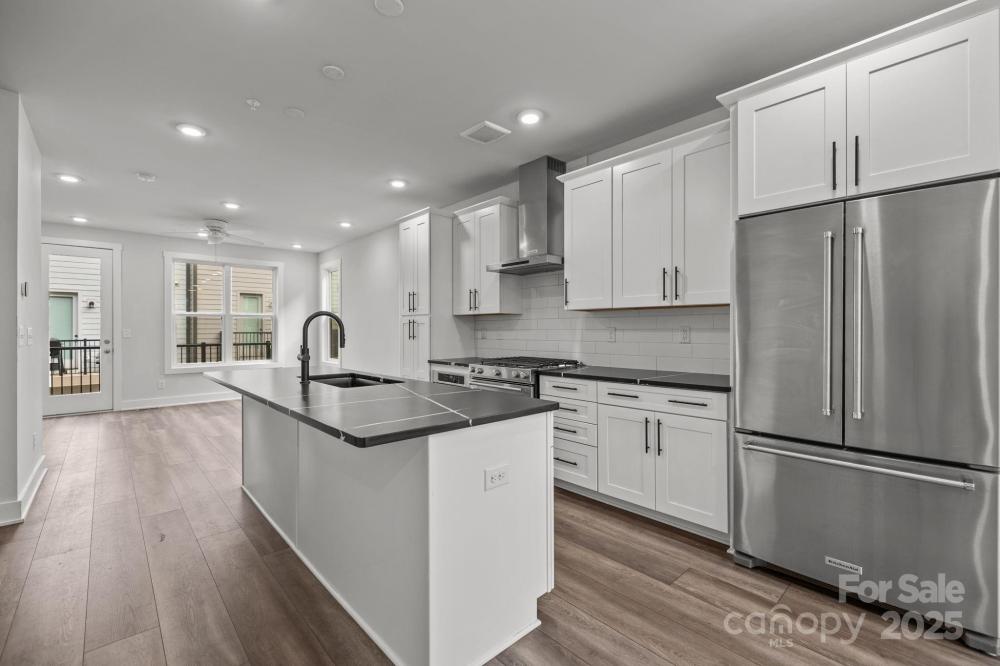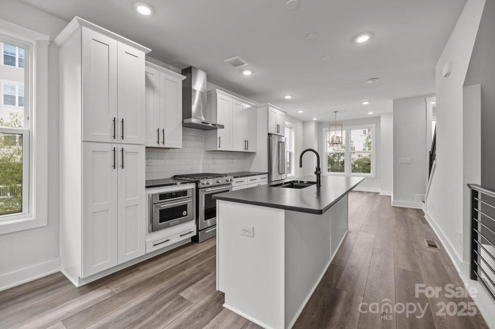 Modern three-bedroom townhome with rooftop terrace in one of Charlotte’s most desirable areas near Uptown and South End. This like-new home features an open floor plan with abundant natural light, durable LVP flooring, and a gourmet kitchen with large island, stainless steel refrigerator, gas range, and tile backsplash. Each bedroom has its own bath, including a primary suite with dual vanity and walk-in tile shower. The top-level loft with wet bar, wine fridge, and floating shelves opens to a private rooftop terrace, perfect for entertaining. A two-car tandem garage with epoxy flooring adds convenience. Immaculately maintained and surrounded by new development, this property offers stylish, low-maintenance living with quick access to restaurants, retail, entertainment, and the light rail.