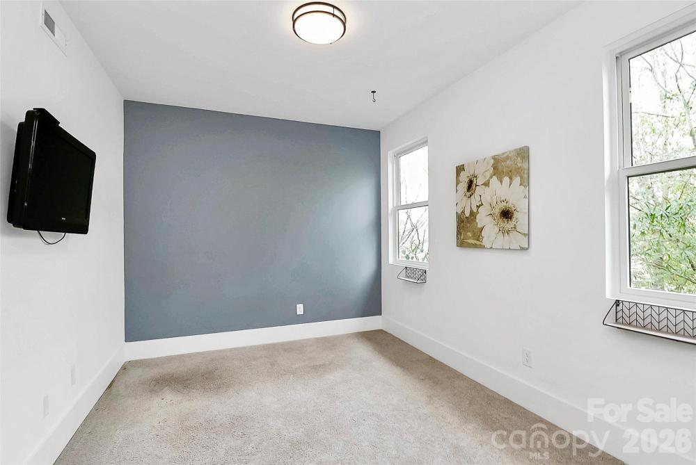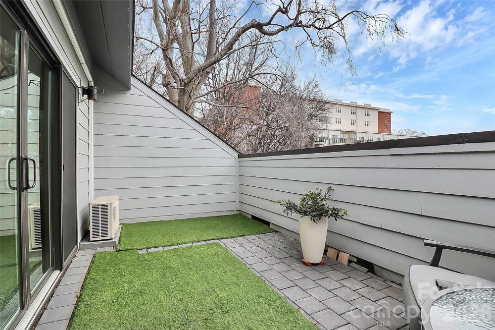 READY FOR VIBRANT UPTOWN LIVING? This modern luxury condo is perfectly situated in Charlotte’s historic Third Ward, offering an exceptional blend of style, space, and walkability. With 3 bedrooms, 3.5 bathrooms, a private rooftop terrace showcasing city views, and a 2-car garage, this beautiful residence delivers effortless urban living at its finest. Light-filled and inviting, the home features abundant windows, 10-foot ceilings on the main, recessed lighting, freshly painted interiors, and beautiful vinyl plank flooring throughout the main living areas, hallways, and third-level bedroom. New high-end window treatments for light-filtering or privacy enhance both the living area and primary suite. The open and spacious main level is ideal for entertaining, highlighted by modern lighting and a sleek kitchen with quartz countertops, a large island, stainless steel appliances, smart range, built-in microwave and pantry. A bright and roomy half bath is also a thoughtful feature on this level. The upper level hosts the serene primary suite with a large walk-in closet and spa-inspired ensuite bath featuring quartz countertop vanity, custom tile and a frameless glass walk-in shower. A second bedroom with ample closet space enjoys easy access to a full hall bath with a lovely custom-tiled tub/shower combination. Conveniently located on this level is a generous laundry closet with washer and dryer included. A true standout awaits on the third level—a versatile bedroom or flex space complete with a custom-built Murphy bed, walk-in closet, additional storage closet, and a full bath with a custom-tiled walk-in shower. Sliding and screened doors open to the rooftop terrace with pavers, creating the perfect retreat for morning coffee, relaxing evenings, or entertaining with city views. Enjoy an easy stroll to Frazier Park, Frazier Place dog park, greenway trails, and the energy of Uptown—just moments from Bank of America Stadium, Truist Field, Johnson & Wales Culinary School, museums, dining, and more completes this exceptional offering. Be the first to see and experience what makes this Third Ward residence truly special!