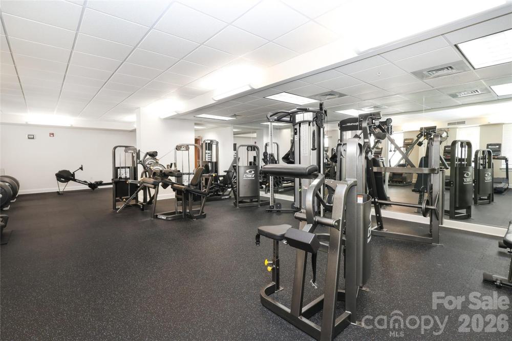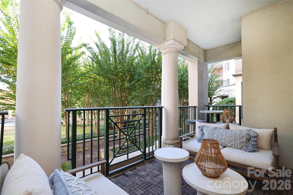 Welcome to this truly unique, spacious 3-bedroom, 3-bath condo in the elegant Fifth & Poplar building in the heart of Fourth Ward. Thoughtfully upgraded with hardwood floors, updated kitchen cabinetry, stylish shiplap accents in the kitchen and bathroom, and custom closets, custom curtains and upgraded light fixtures. This home blends modern design with everyday functionality. Enjoy seamless indoor-outdoor living with two expansive covered patios overlooking the beautifully landscaped courtyard, complete with a putting green, pool, and tranquil fountain. The unit includes two parking spaces conveniently located near the elevator on P1. Fifth & Poplar offers resort-style amenities including 24-hour concierge service, a fitness center, club room and more. All just steps from dining, entertainment, and everything vibrant Uptown Charlotte has to offer.