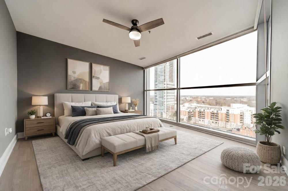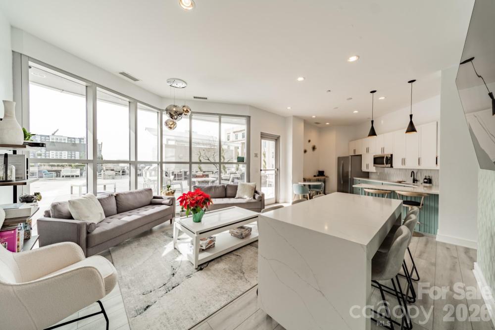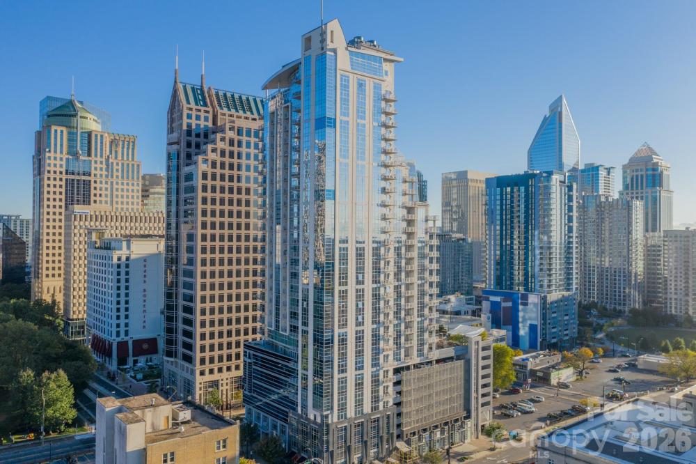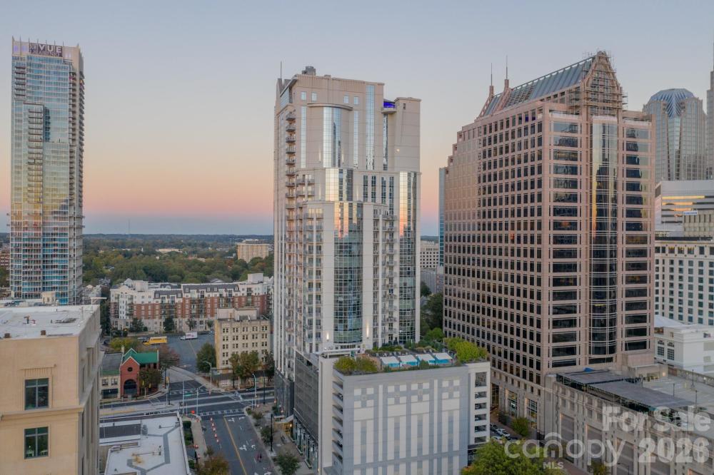 Experience elevated Uptown living in this beautifully renovated 2-bedroom, 2-bath residence Corner Unit at Charlotte’s iconic Trademark building. This move-in-ready condo blends modern updates with the vibrant energy of city living, offering a bright, open layout framed by expansive windows and stunning urban views. The interior features a renovated kitchen and updated bathrooms, including a refreshed primary bath and a fully updated guest bathroom, paired with brand-new HVAC and water heater for added comfort and peace of mind. Motorized blinds in the kitchen and dining area add a sleek, contemporary touch while enhancing convenience and privacy. The open-concept living, dining, and kitchen spaces flow seamlessly—ideal for entertaining or unwinding after a day in Uptown. The split-bedroom floor plan provides excellent privacy, with a spacious primary suite and a well-appointed secondary bedroom perfect for guests, a home office, or flexible living. Natural light fills the unit throughout the day, highlighting the clean lines, modern finishes, and warm flooring showcased in every room. Trademark is renowned for its resort-style amenities, including a rooftop pool and sundeck with skyline views, fitness center, club room, outdoor grills, and secure access with gated parking. Located just steps from Truist Field, Romare Bearden Park, Bank of America Stadium, the light rail, and Uptown’s best dining, entertainment, and cultural destinations, this home delivers unmatched walkability and lifestyle convenience. Whether you’re searching for a primary residence, city retreat, or smart Uptown investment, this fully updated 2-bedroom condo offers the perfect combination of location, renovations, and modern urban sophistication in one of Charlotte’s most desirable high-rise communities.