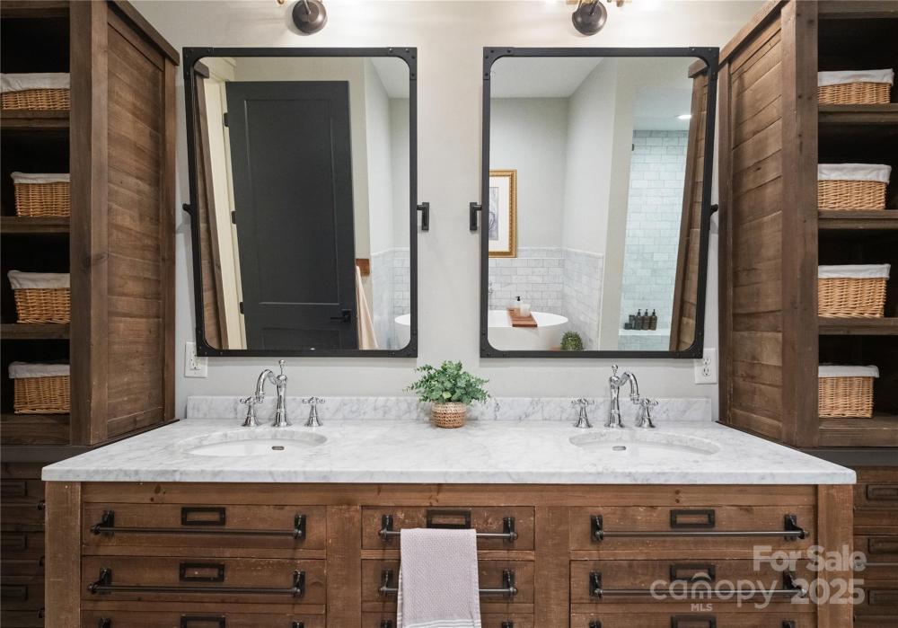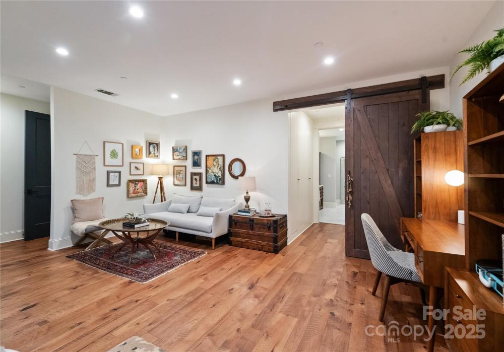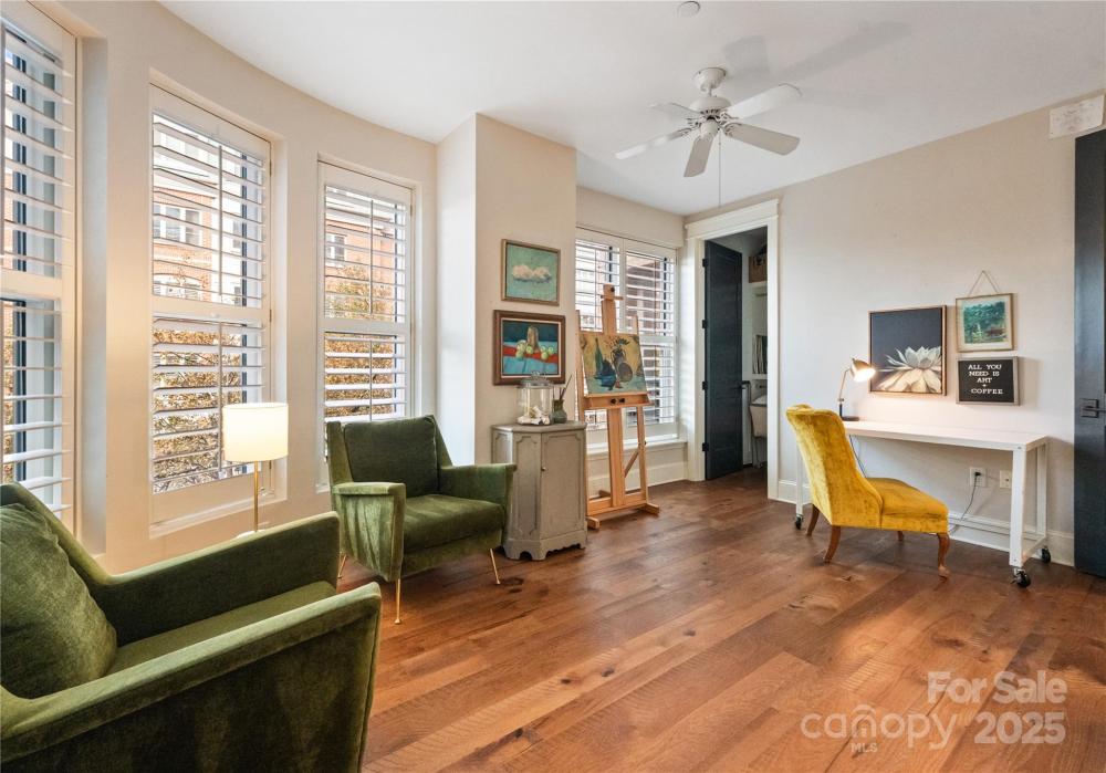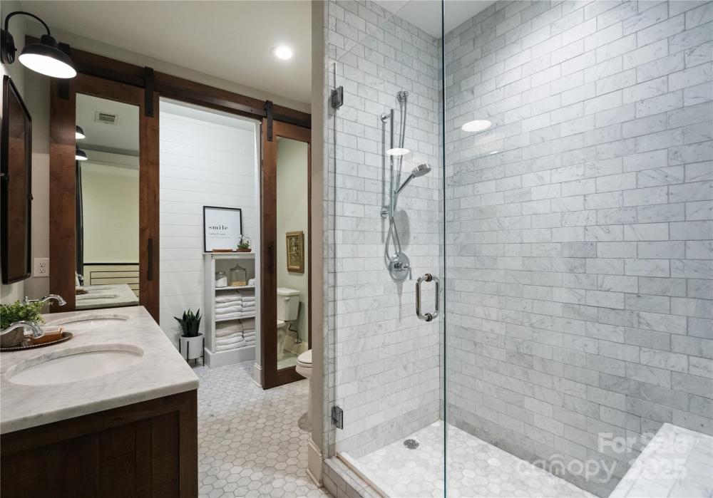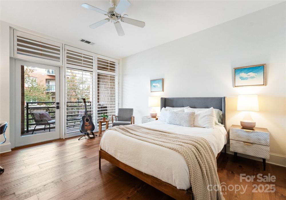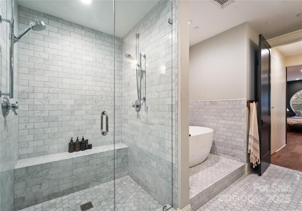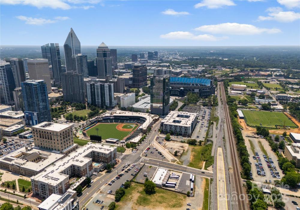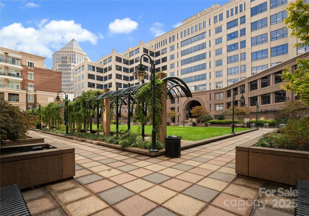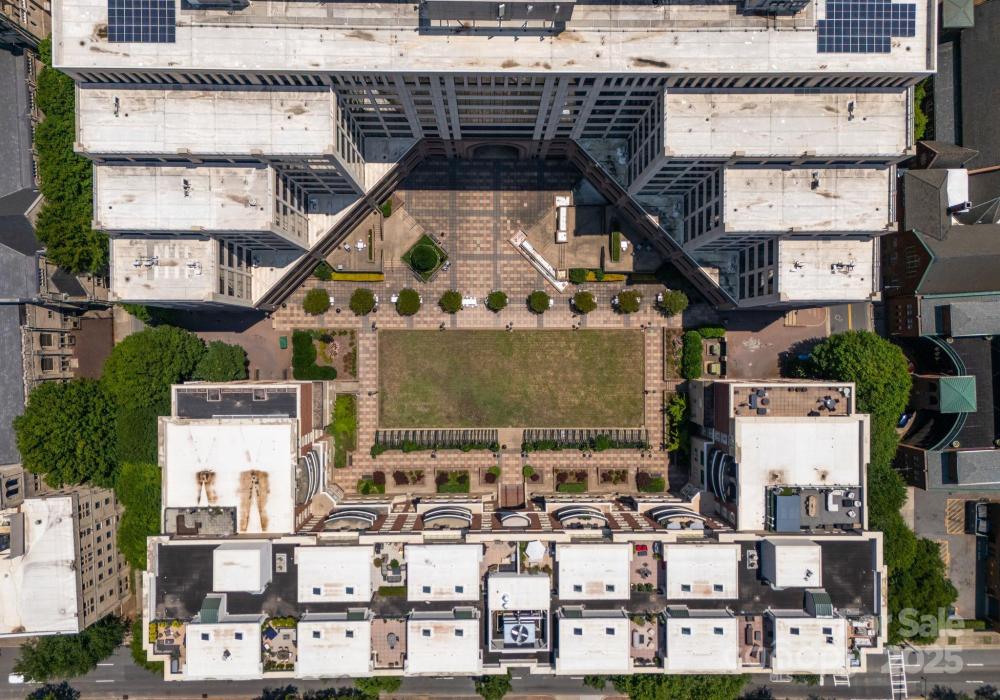 Experience refined urban living in this masterfully renovated 3 bedroom/2.5 bath end unit with a private walk up entrance, perfectly positioned within the coveted 400 North Church community — just blocks from the vibrant heart of Uptown Charlotte! Every inch of this residence has been thoughtfully reimagined with luxury and craftsmanship in mind. Rich hand scraped hickory hardwood flooring, designer light fixtures and Italian Carrera marble countertops set a tone of timeless sophistication, while custom built metal stair bannisters, closets and built-ins elevate both form and function. The open-concept main level was designed for effortless entertaining, featuring a show-stopping kitchen with top-of-the-line Thermador built-in appliances, floating shelves, a spacious island and an extended peninsula for casual dining. Flowing seamlessly into the dining and living areas, this light-filled space is perfect for hosting gatherings or quiet evenings at home. Upstairs, the tranquil primary suite offers a true retreat — complete with dual closets, a cozy sitting area and a spa-inspired en-suite showcasing a convenient double shower, stunning soaking tub and premium finishes. Outside, you'll find a private covered terrace, the perfect setting for morning coffee or evening cocktails. Two additional bedrooms feature custom closet systems and share a beautifully updated full bath with convenient laundry access through barn doors, with one bedroom featuring another private covered terrace with impeccable skyline views. Set within a secure, gated community surrounded by tree-lined streets and historic charm, this residence captures the best of Uptown living — style and sophistication nestled in an unbeatable location. Welcome home to 400 North Church!