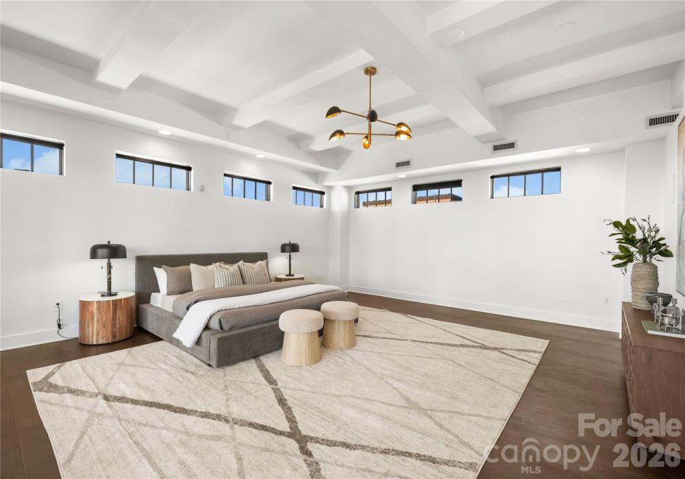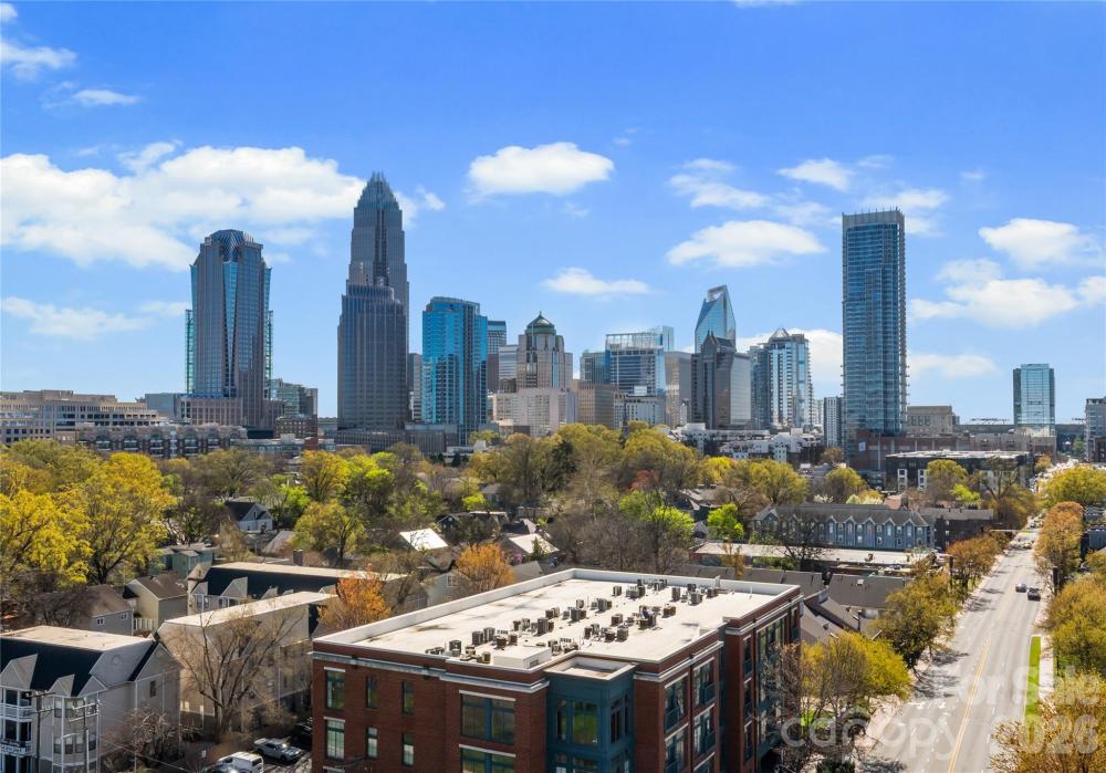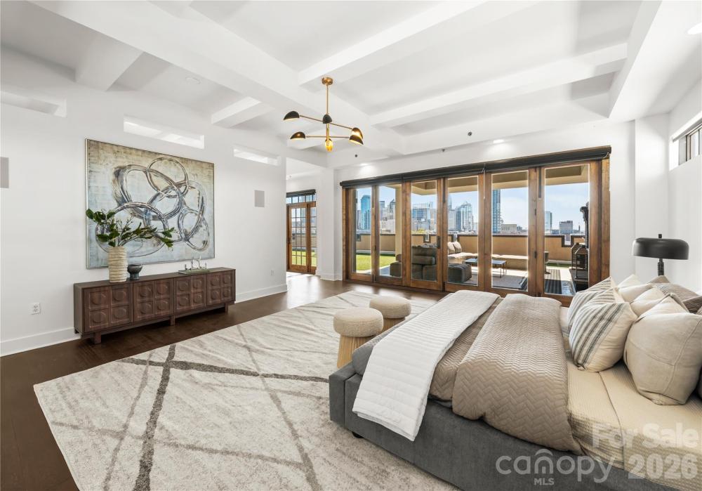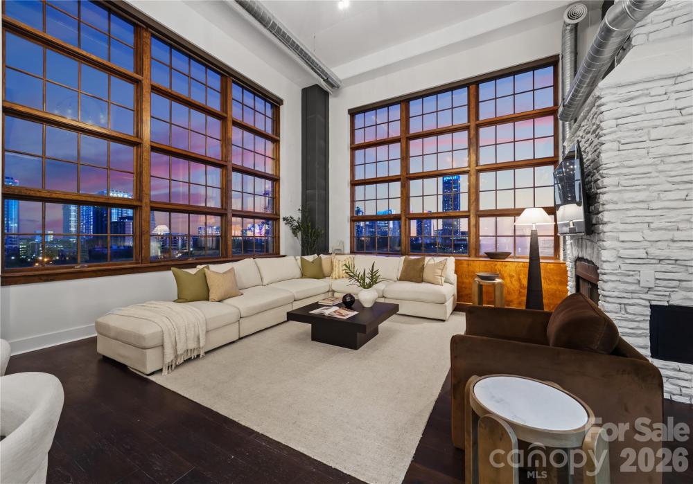 Welcome to The Penthouse at The Garrison at Graham—one of Uptown Charlotte’s most distinctive and architecturally striking residences. Occupying the prime top-floor corner of the building, this remarkable three-story penthouse spans approximately 2,750 square feet of sophisticated loft-style living and is framed by two dramatic walls of 12-foot floor-to-ceiling windows that flood the home with natural light while showcasing breathtaking panoramic views of the Uptown Charlotte skyline. With the touch of a button, motorized shades reveal sweeping city vistas that transform throughout the day—from morning light pouring into the living spaces to dramatic sunset and twilight skyline views. The main living level offers a truly impressive sense of scale with soaring two-story ceilings, expansive window walls, and rich wood flooring that flow throughout the open-concept living and dining areas. A gas fireplace anchors the living space, creating warmth and ambiance while maintaining a sleek modern aesthetic. The layout is thoughtfully designed for both everyday living and elevated entertaining. The chef’s kitchen serves as the heart of the home and features a massive center island with granite countertops, stainless steel appliances including gas range, oven, microwave, beverage refrigerator, dishwasher, and exhaust hood, along with abundant cabinetry and prep space ideal for hosting gatherings. The open floor plan seamlessly connects the kitchen to the living and dining areas, allowing guests to gather comfortably while enjoying the skyline views beyond the windows. The second level features two spacious guest suites or flexible office spaces, each with its own full en-suite bathroom, offering privacy and versatility for guests, work-from-home needs, or additional living space. A private sauna adds a spa-inspired element rarely found in Uptown residences. A mid-level flex space with an additional full bathroom offers even more versatility—perfect as a media lounge, secondary office, fitness room, or guest bedroom depending on your lifestyle needs. The top floor is dedicated entirely to the owner’s retreat, creating a private sanctuary above the city. This level features a generous primary suite, spa-like bathroom, and expansive walk-in closet, offering a quiet escape while still enjoying the dramatic skyline backdrop. The crown jewel of this penthouse is the extraordinary private rooftop terrace—your own “backyard in the sky.” Designed for elevated outdoor living, this expansive terrace includes a covered outdoor living room with gas fireplace, built-in stainless outdoor kitchen, and an artificial turf lounge area that creates a rare and inviting urban outdoor experience. Whether hosting sunset gatherings or enjoying quiet evenings overlooking the skyline, the terrace offers a truly unforgettable setting.Additional highlights include four assigned parking spaces in the secured garage (two primary spaces equipped with vehicle lifts), along with secure building access and gated entry, providing both convenience and peace of mind. The Garrison at Graham is a boutique luxury condominium building located in Uptown Charlotte’s historic Fourth Ward, known for its blend of modern loft-style architecture and neighborhood charm. Residents enjoy access to a shared rooftop social terrace featuring outdoor lounge areas, grilling stations, fireplaces, and sweeping city views, located conveniently on the same floor as the penthouse. Positioned along N Graham Street, the building offers exceptional walkability to Uptown’s vibrant lifestyle—including the NC Music Factory, professional sports venues, cultural attractions, restaurants, and nightlife—placing the very best of Charlotte’s urban energy just moments from your front door.