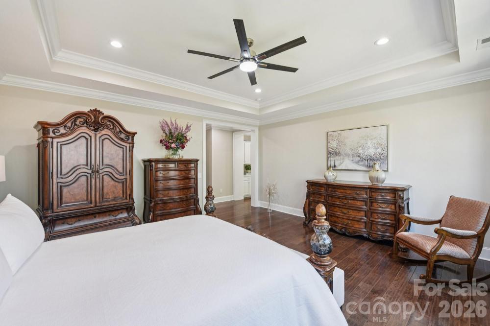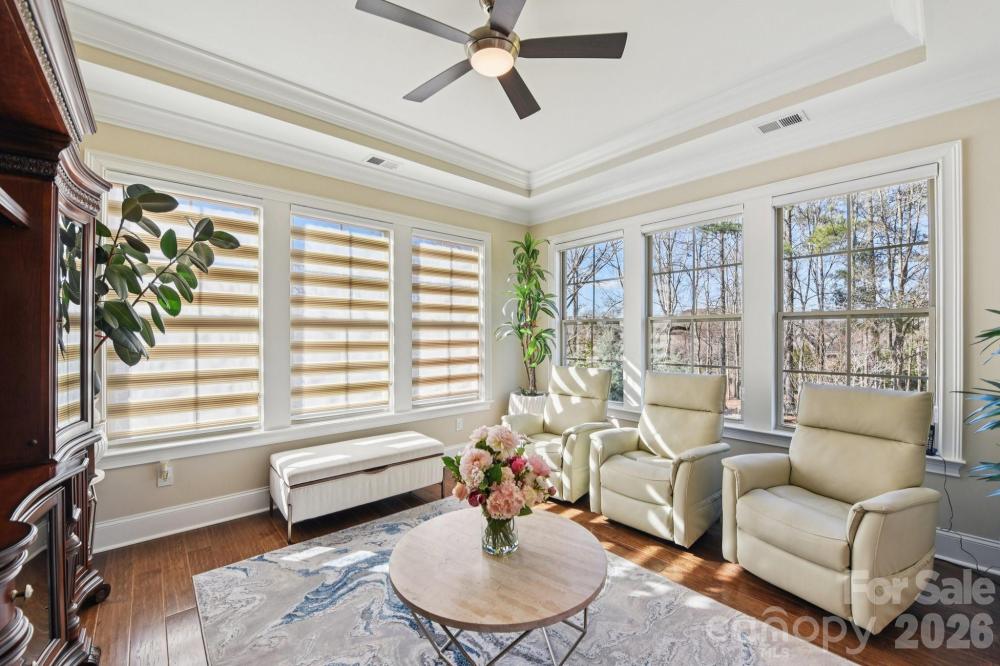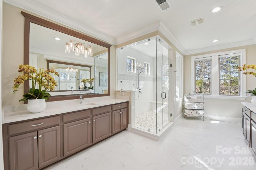 Stunning European-inspired estate in the premier gated Ladera community, offering unparalleled craftsmanship, architectural elegance, and refined luxury throughout. Featuring a full brick and stone exterior, this meticulously renovated residence showcases high-end designer finishes and exceptional attention to detail at every turn. A dramatic two-story foyer with an elegant curved staircase sets the tone for the sophisticated interiors. The expansive main level boasts a chef’s gourmet kitchen anchored by an oversized quartz island, custom cabinetry, premium appliances, and a scullery with additional sink and generous walk-in pantry. The soaring two-story great room with gas fireplace flows seamlessly into a spacious dining area and sunroom/study, creating an ideal layout for both everyday living and upscale entertaining. A private main-level guest suite with en-suite bath and a stylish powder room complete the first floor. Telescoping sliding glass doors open to a screened-in porch overlooking the extensively landscaped, private backyard retreat featuring a tranquil koi pond and fountain views. The oversized patio provides the perfect setting for outdoor entertaining, peaceful relaxation or that "pool paradise" you have been dreaming about! Upstairs, the luxurious primary suite offers a true spa-inspired bath with dual vanities, a large designer-tiled shower, expansive custom walk-in closet, and private sitting area. Three additional generously sized bedrooms each feature their own en-suite bath. An open loft/flex space provides versatility for a media room, office, or additional living area. Oversized 3 car garage offers additional cabinets, storage and countertop area.Located in highly desirable Union County with top rated Marvin schools, lower Union County taxes, this extraordinary home blends timeless European architecture with modern luxury in one of the area’s most sought-after gated communities.